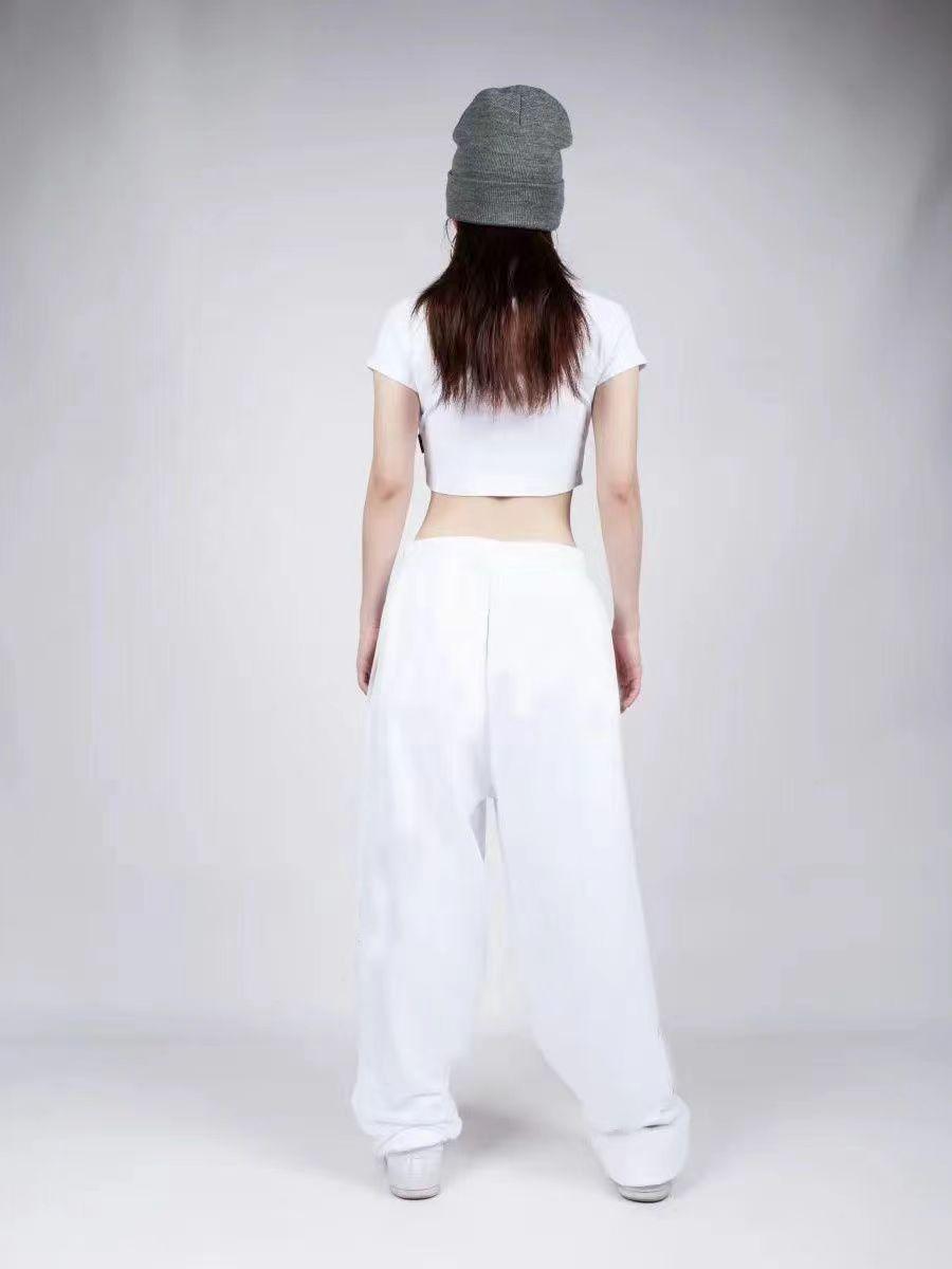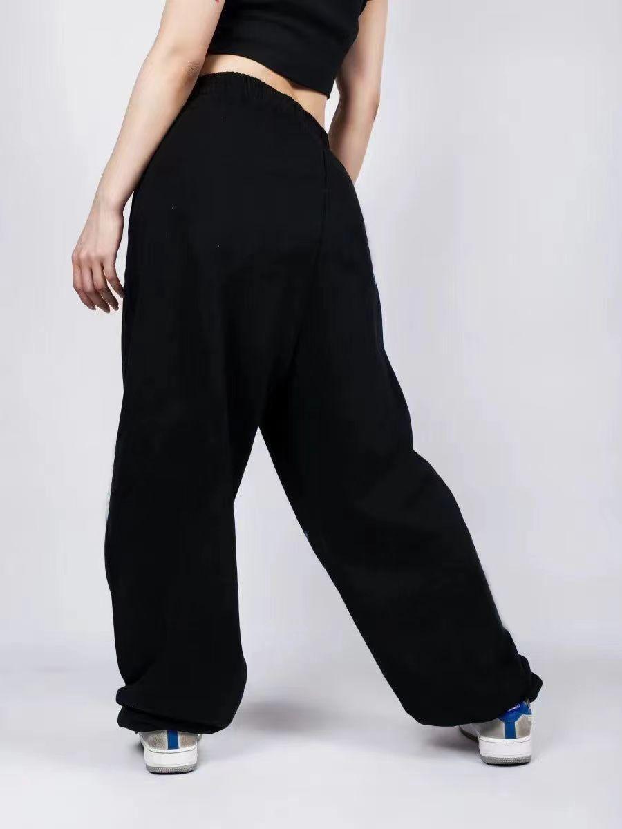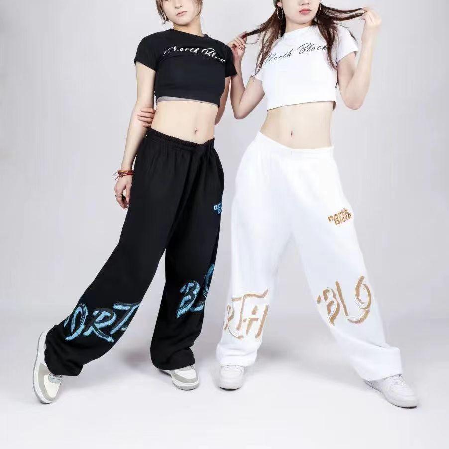 Pantalones de baile rectos de cintura alta holgados con estampado de hip hop y jazz con cordón cruzado, informales, deportivos, anchos y a la moda.