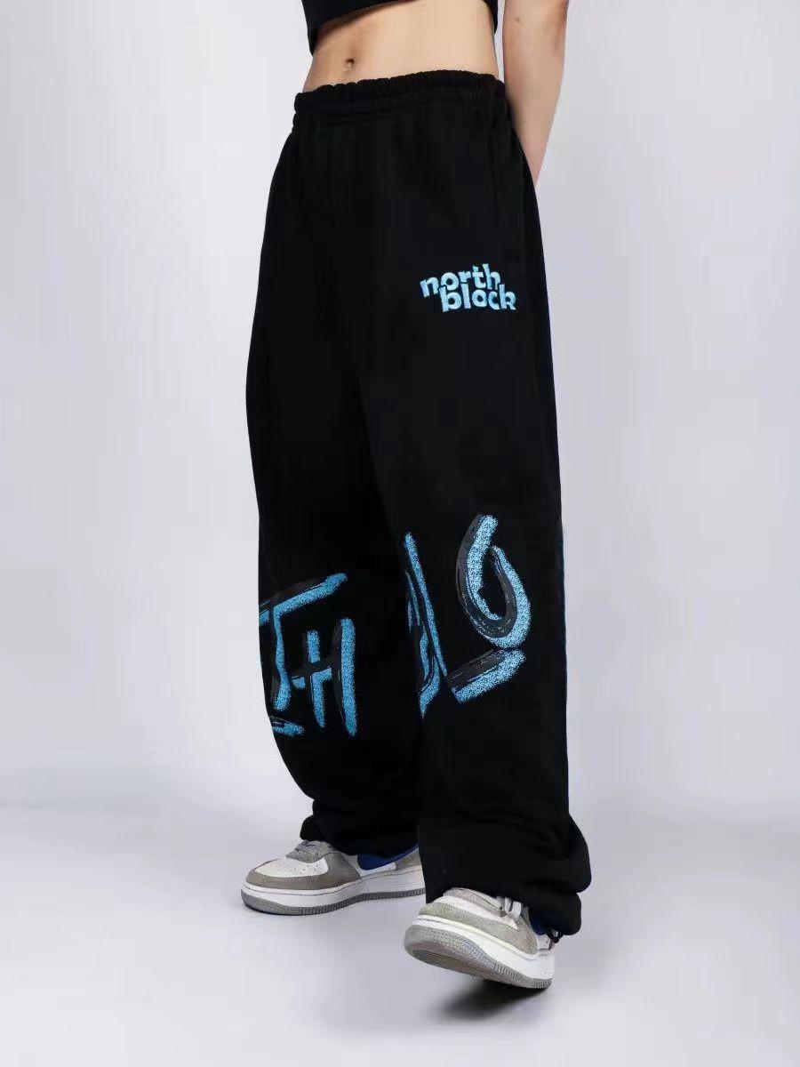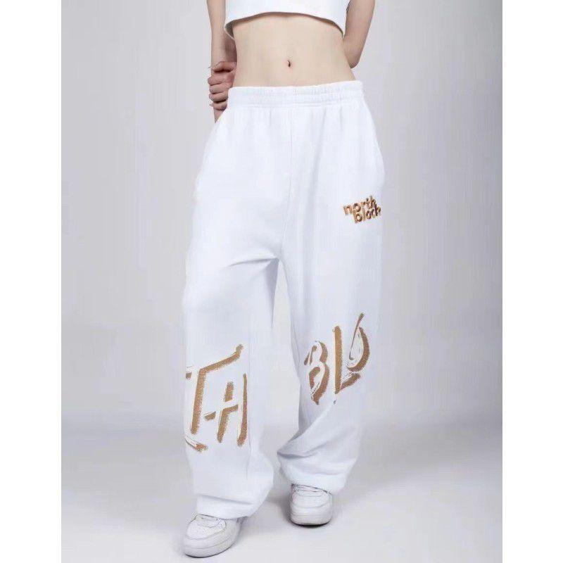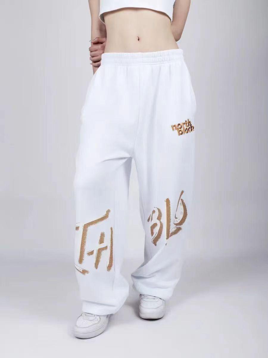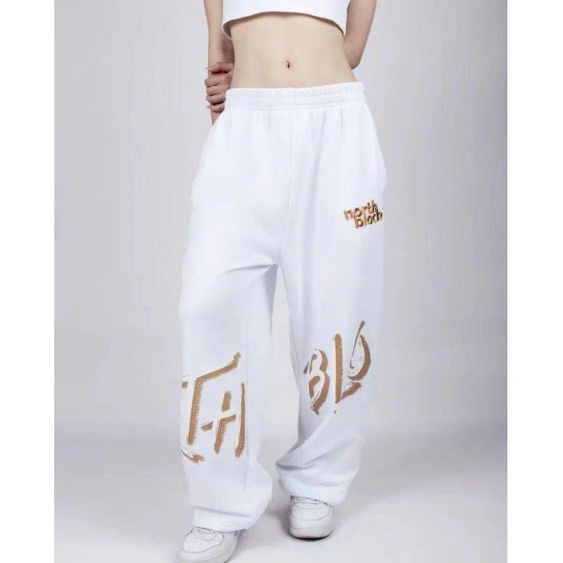 Pantalones de baile rectos de cintura alta holgados con estampado de hip hop y jazz con cordón cruzado, informales, deportivos, anchos y a la moda.
