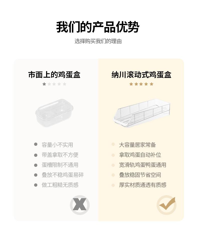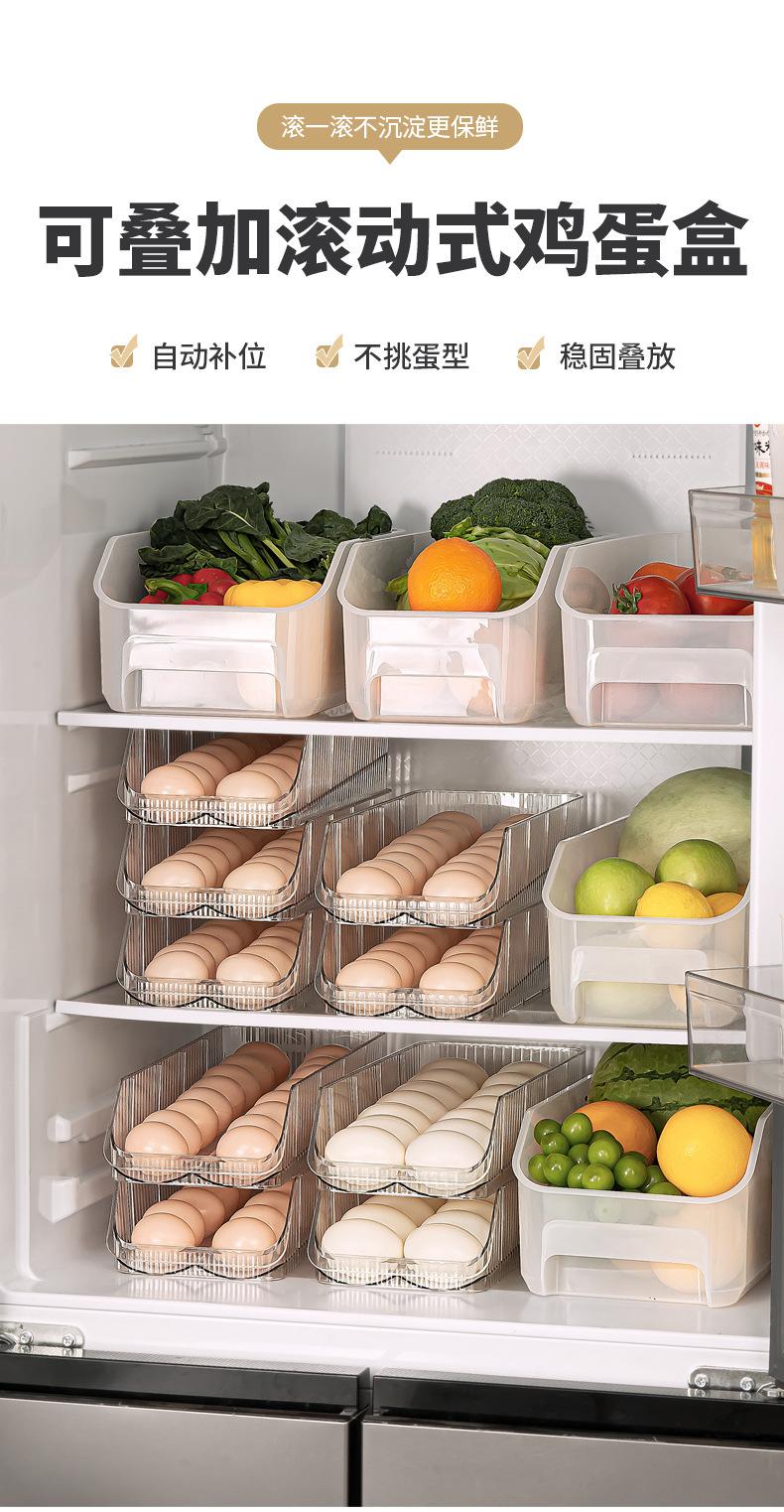 Caja de Almacenamiento de Huevos Rodante Nachuan Soporte para Huevos de Refrigerador Caja de Almacenamiento de Huevos Rodante Transparente Ahorro de Espacio Rectangular