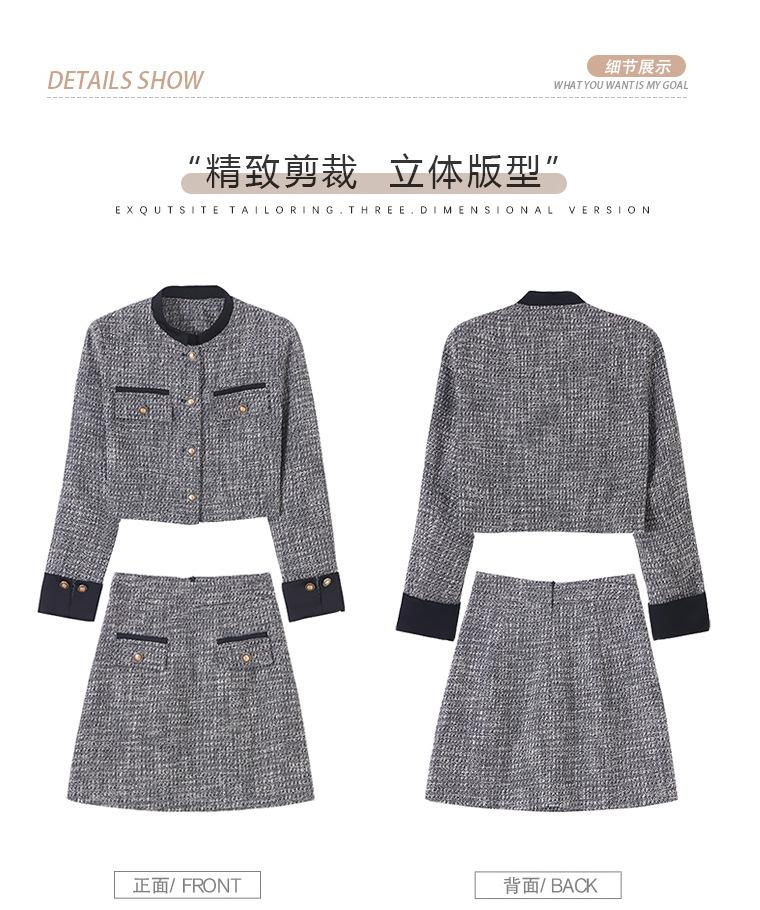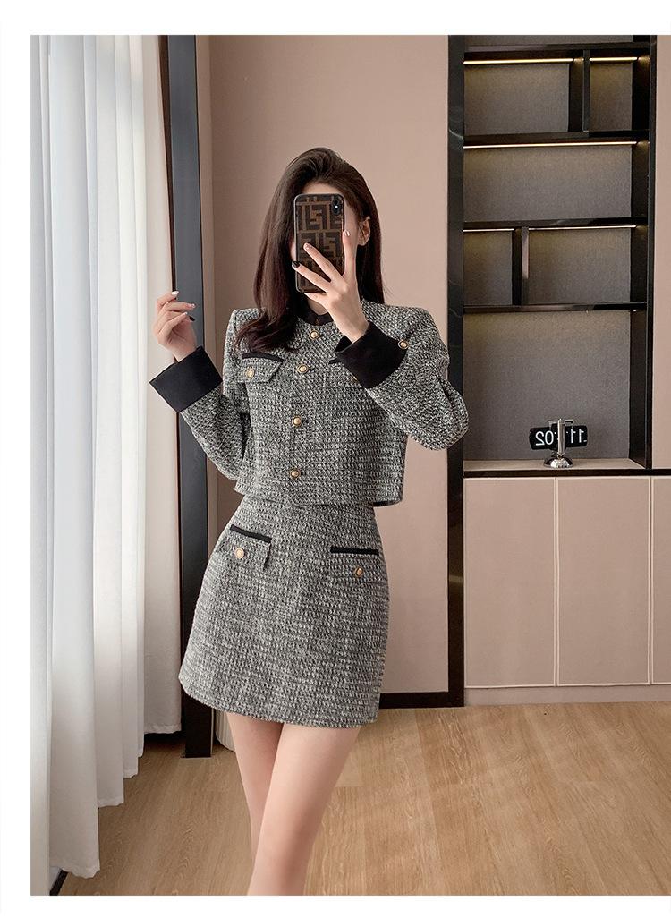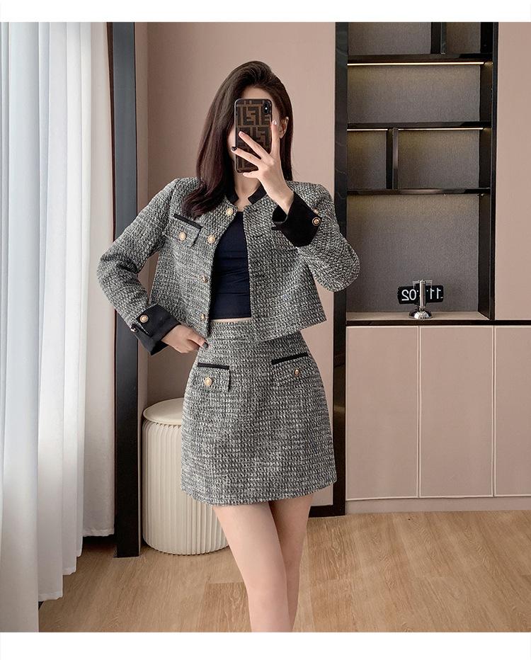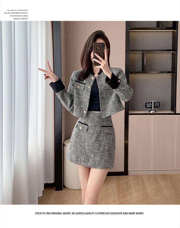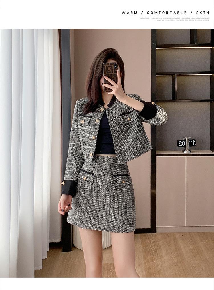 Traje de dos piezas estilo Chanel francés para mujer, elegante traje de alta sociedad de otoño e invierno con abrigo corto y falda de tweed de alta calidad.