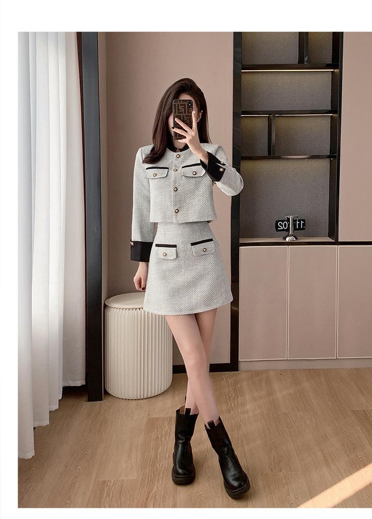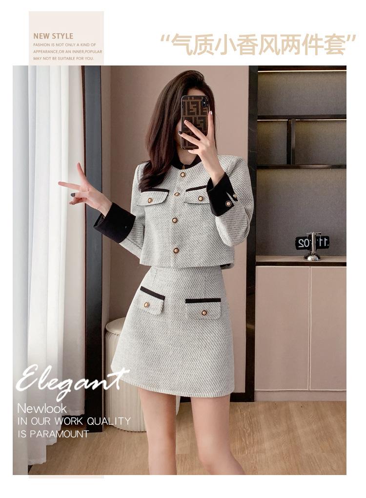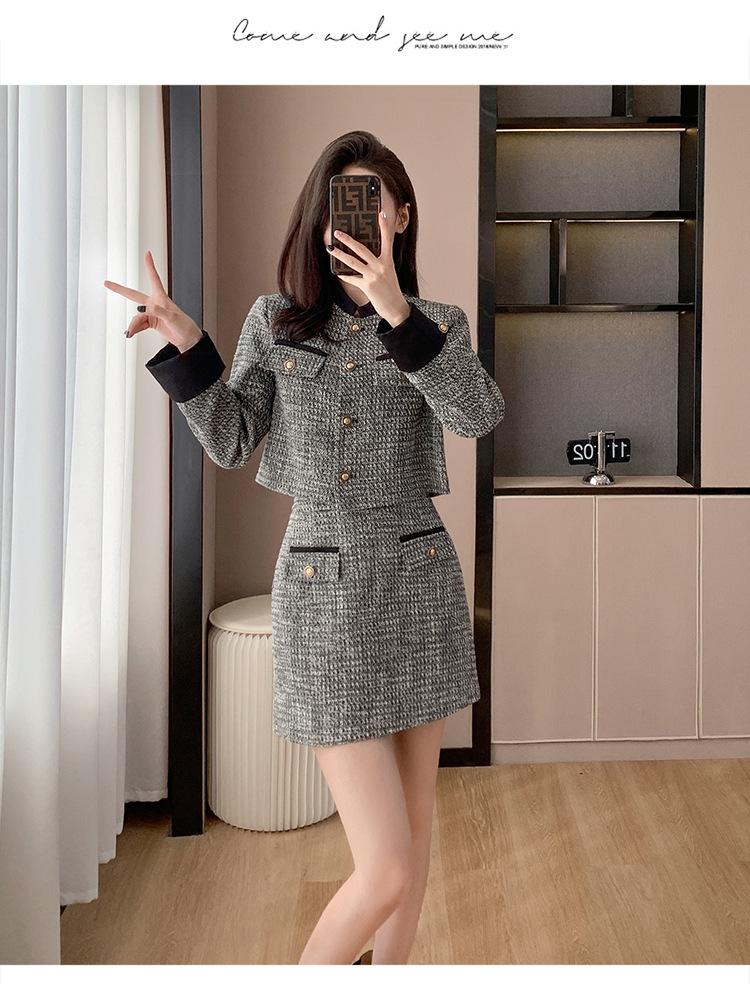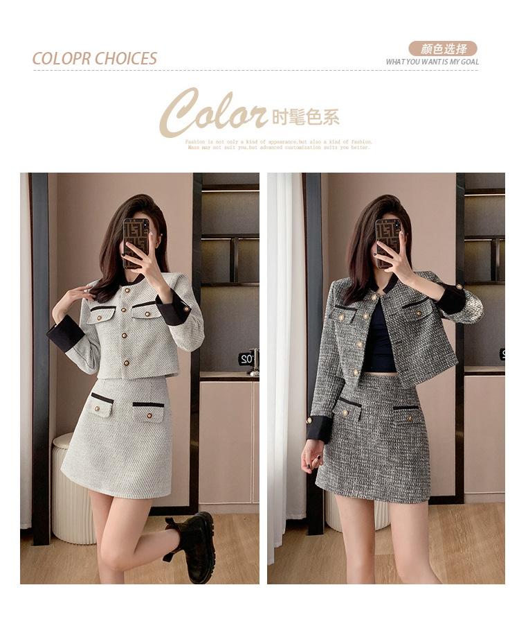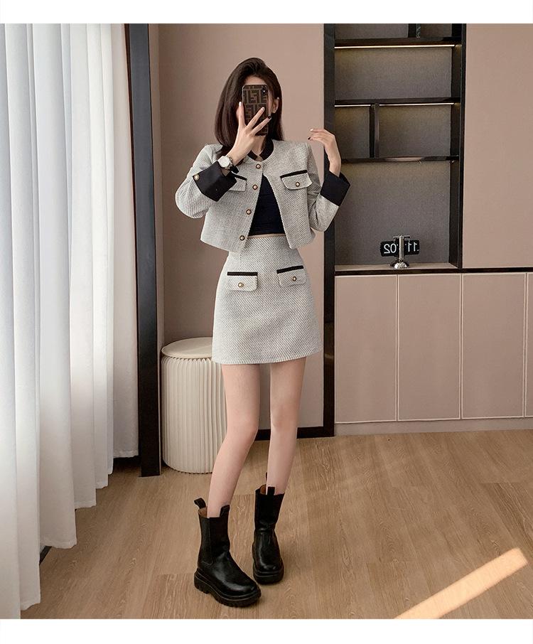 Traje de dos piezas estilo Chanel francés para mujer, elegante traje de alta sociedad de otoño e invierno con abrigo corto y falda de tweed de alta calidad.