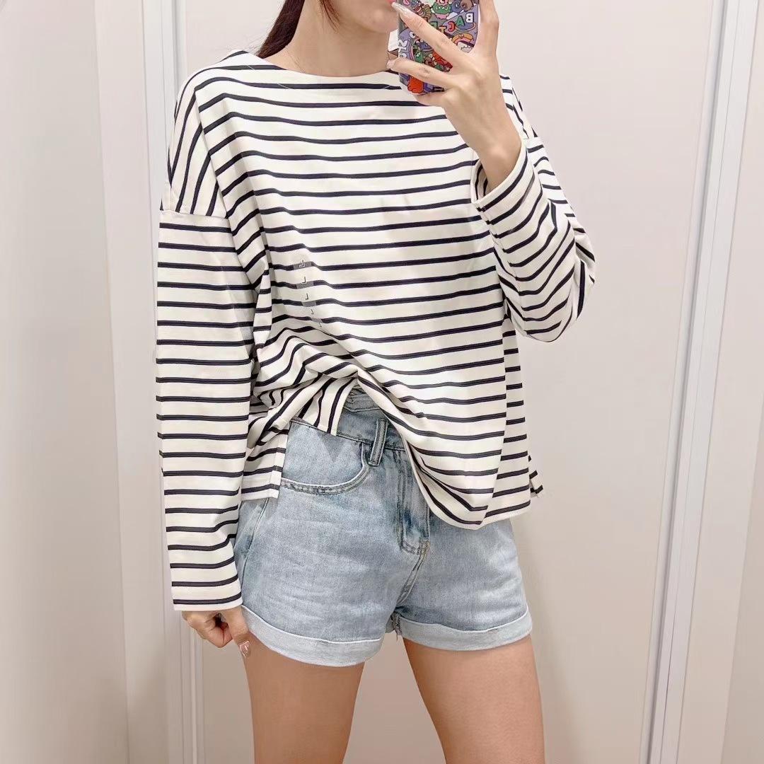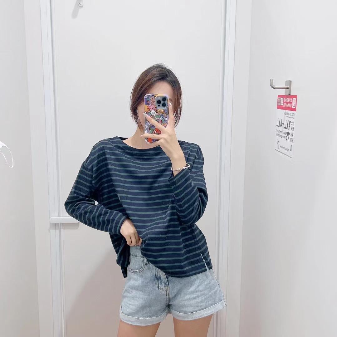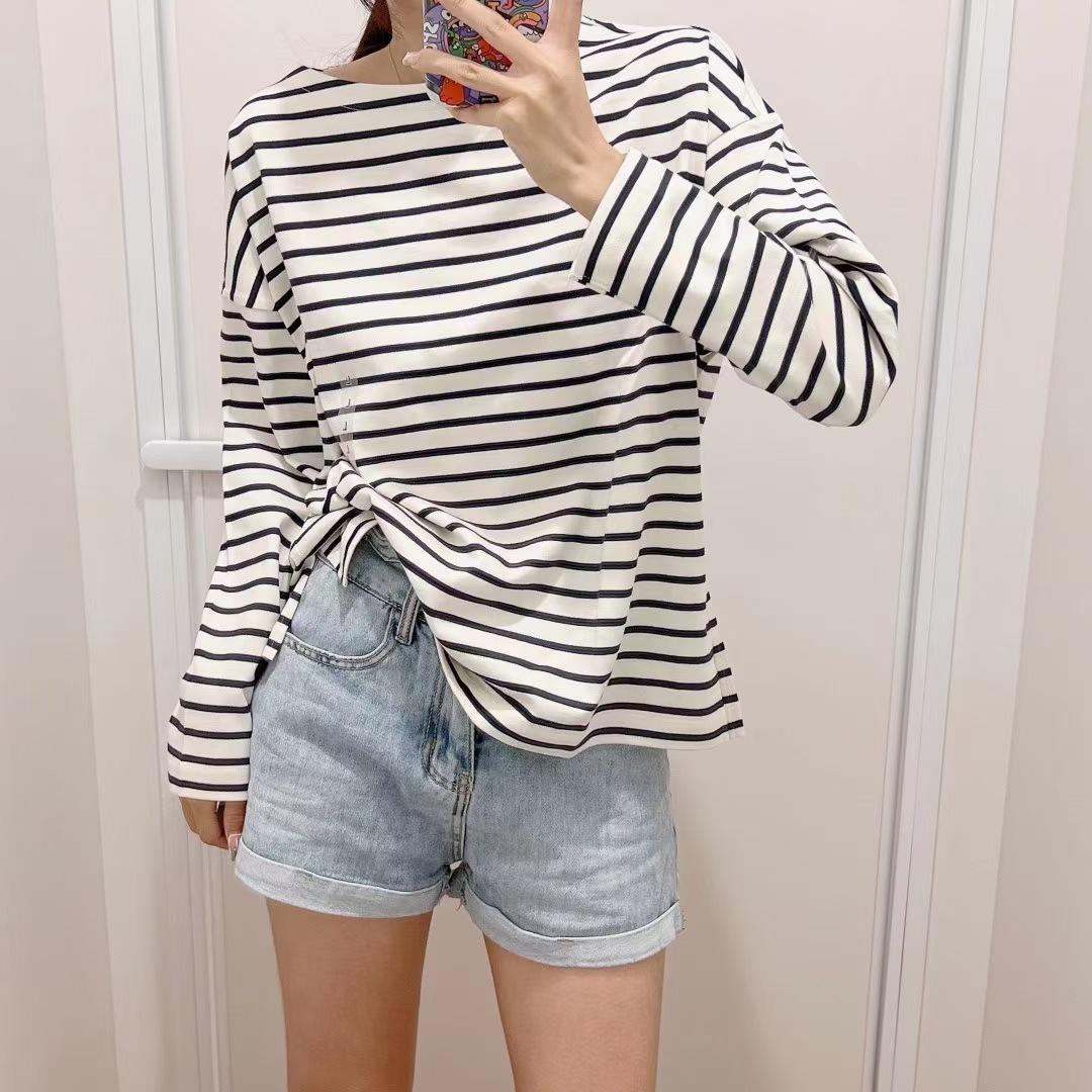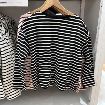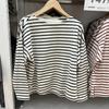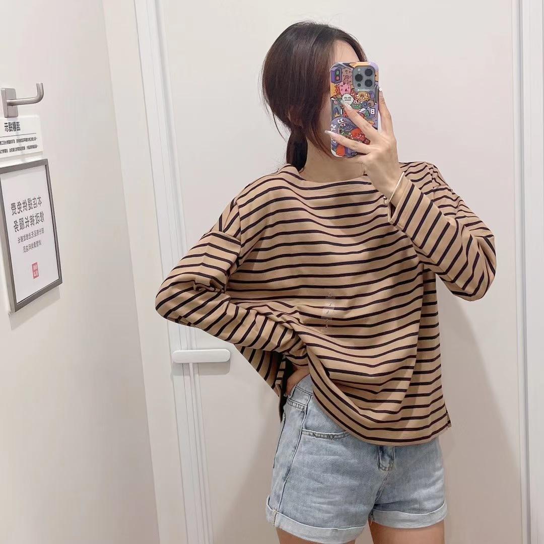 Estilo Japonés Estilo 22 Otoño Nuevo Moda de Mujer Simple Manga Larga Cuello de un Hombro Rayas Camiseta 449874