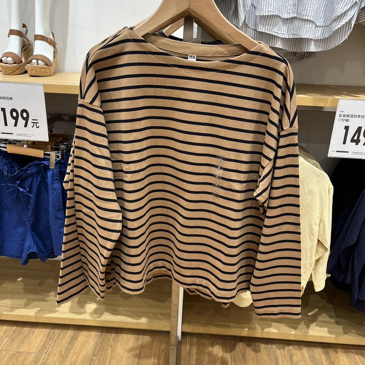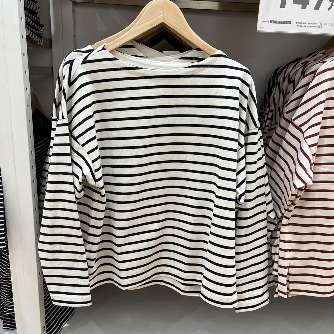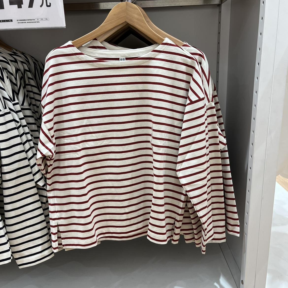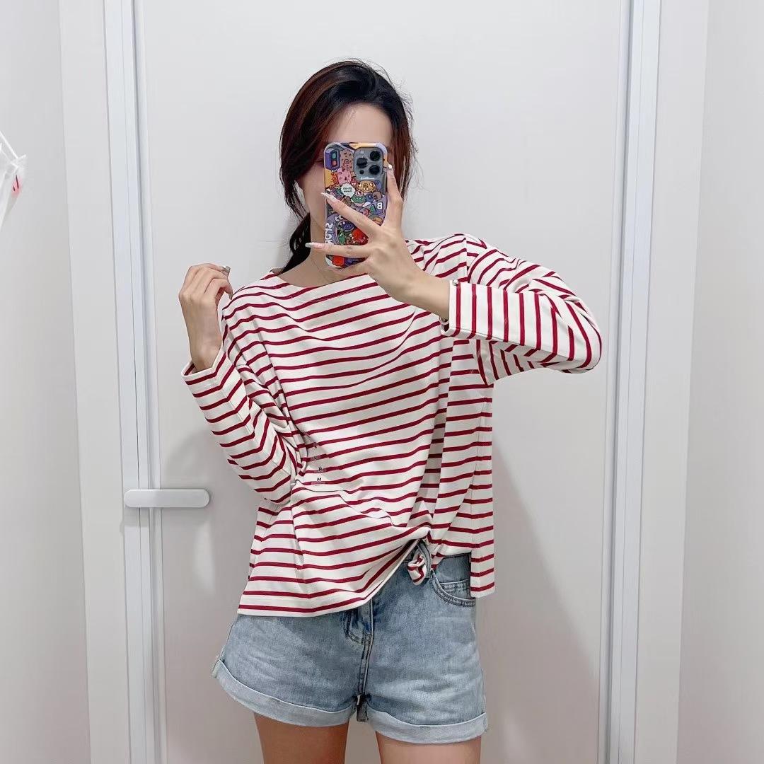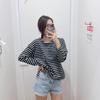 Estilo Japonés Estilo 22 Otoño Nuevo Moda de Mujer Simple Manga Larga Cuello de un Hombro Rayas Camiseta 449874
