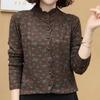 Camisa de otoño 2024 para mujer, de manga larga, elegante, a la moda, con estampado, ajustada, adelgazante, capa base, top para madre que combina con todo.
