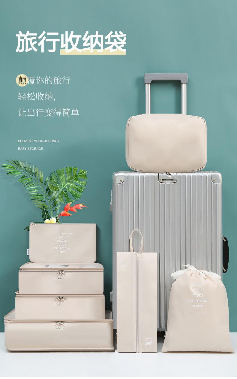 Conjunto de ocho piezas para separar ropa y artículos de viaje, maleta impermeable y plegable.