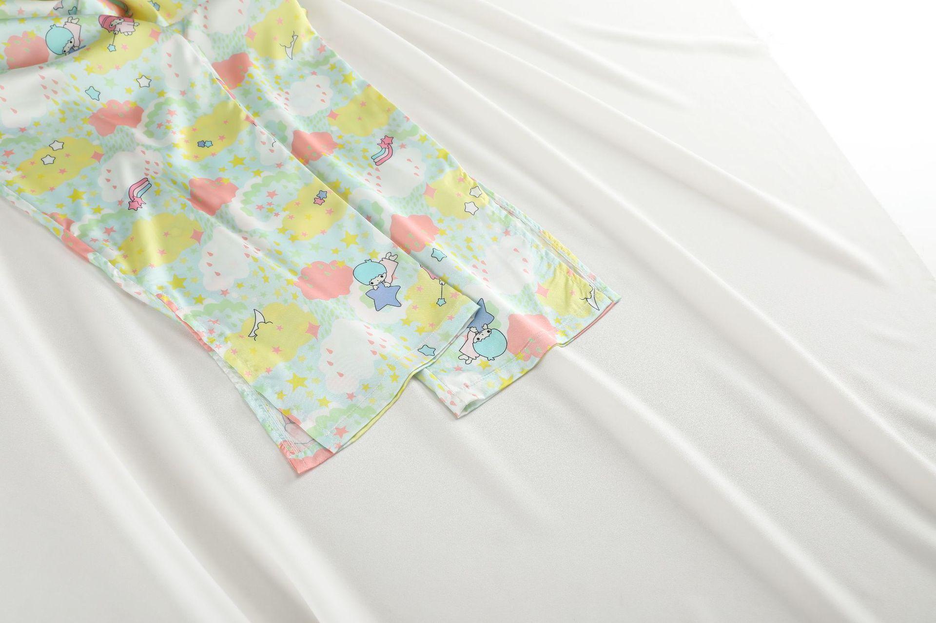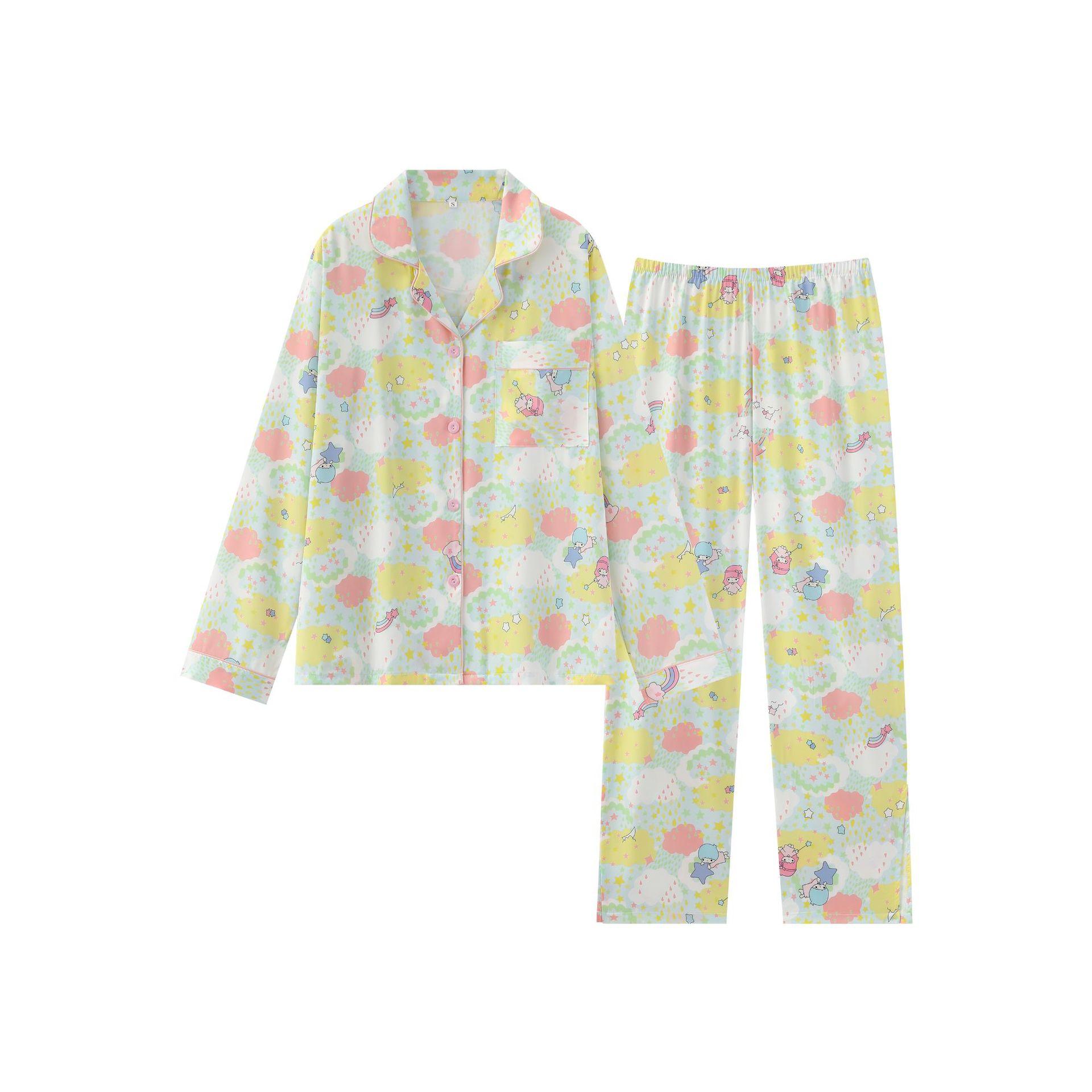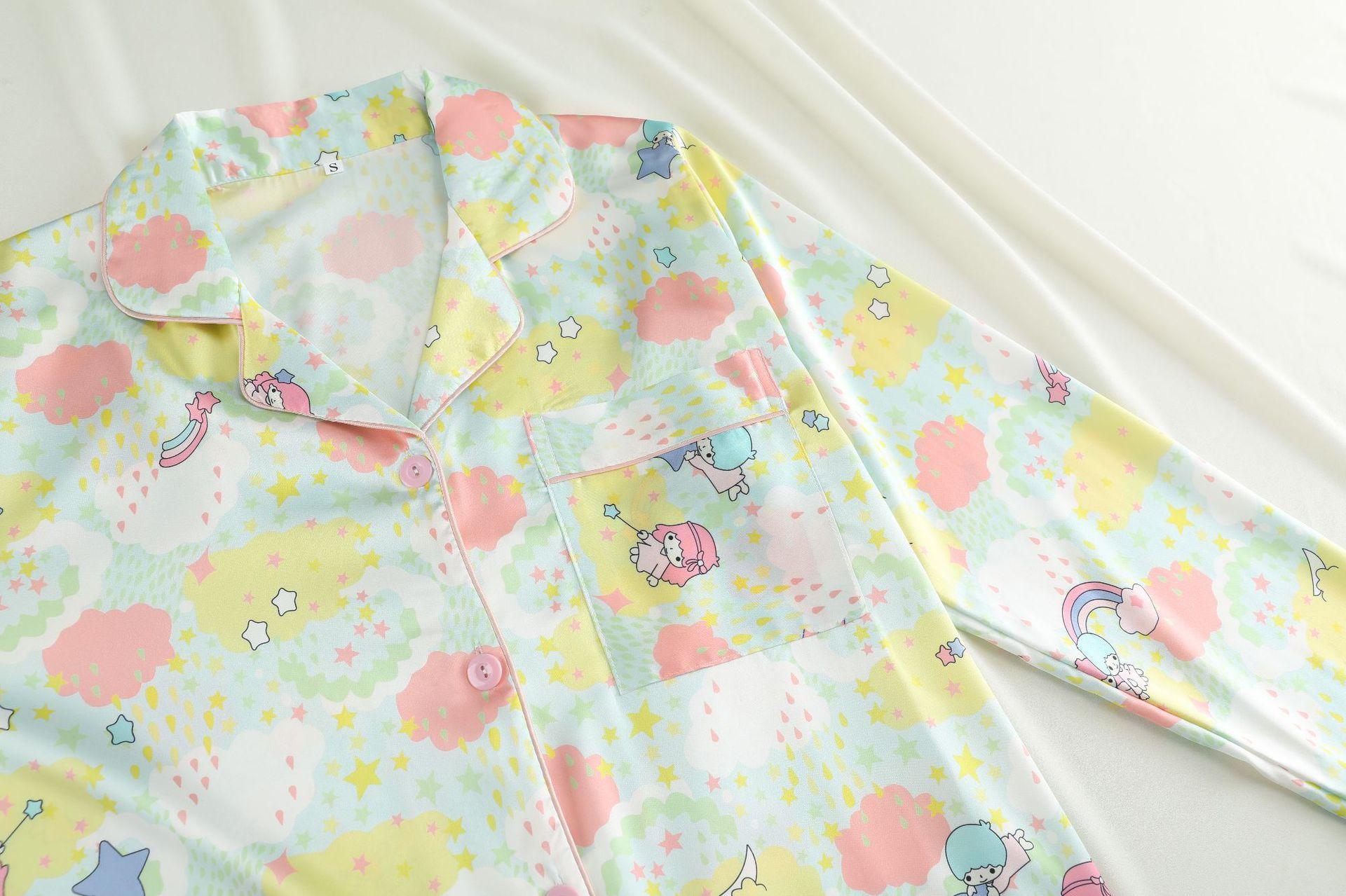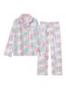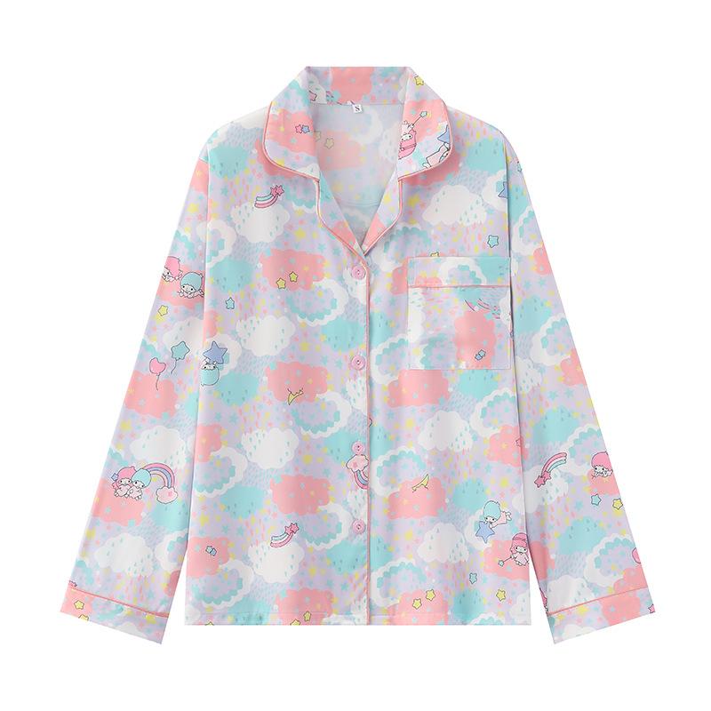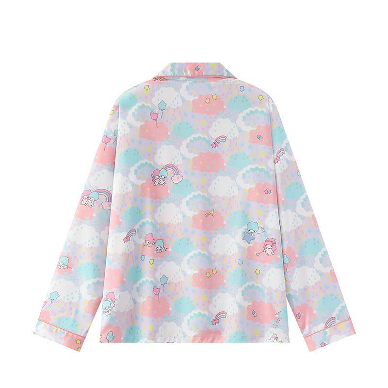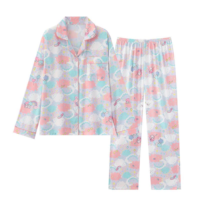 Conjunto de 2 piezas de satén de seda helada Géminis para niña casual de manga larga y pantalón, conjunto de pijama estampado para el hogar, estilo lindo