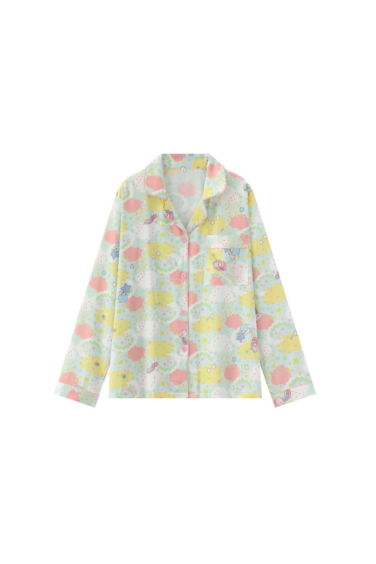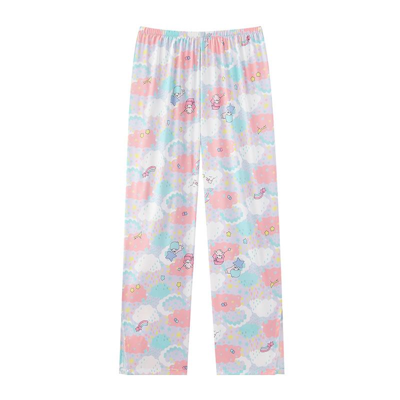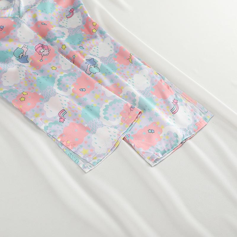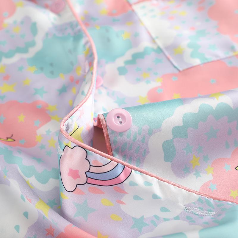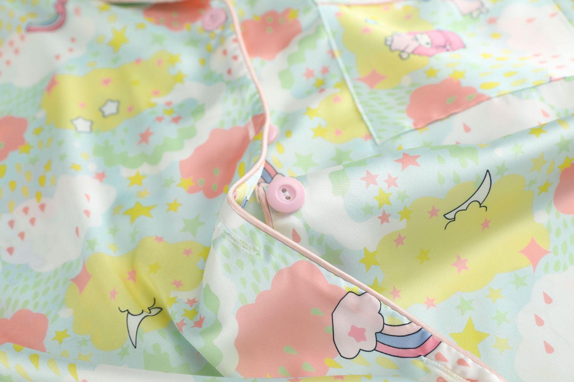 Conjunto de 2 piezas de satén de seda helada Géminis para niña casual de manga larga y pantalón, conjunto de pijama estampado para el hogar, estilo lindo