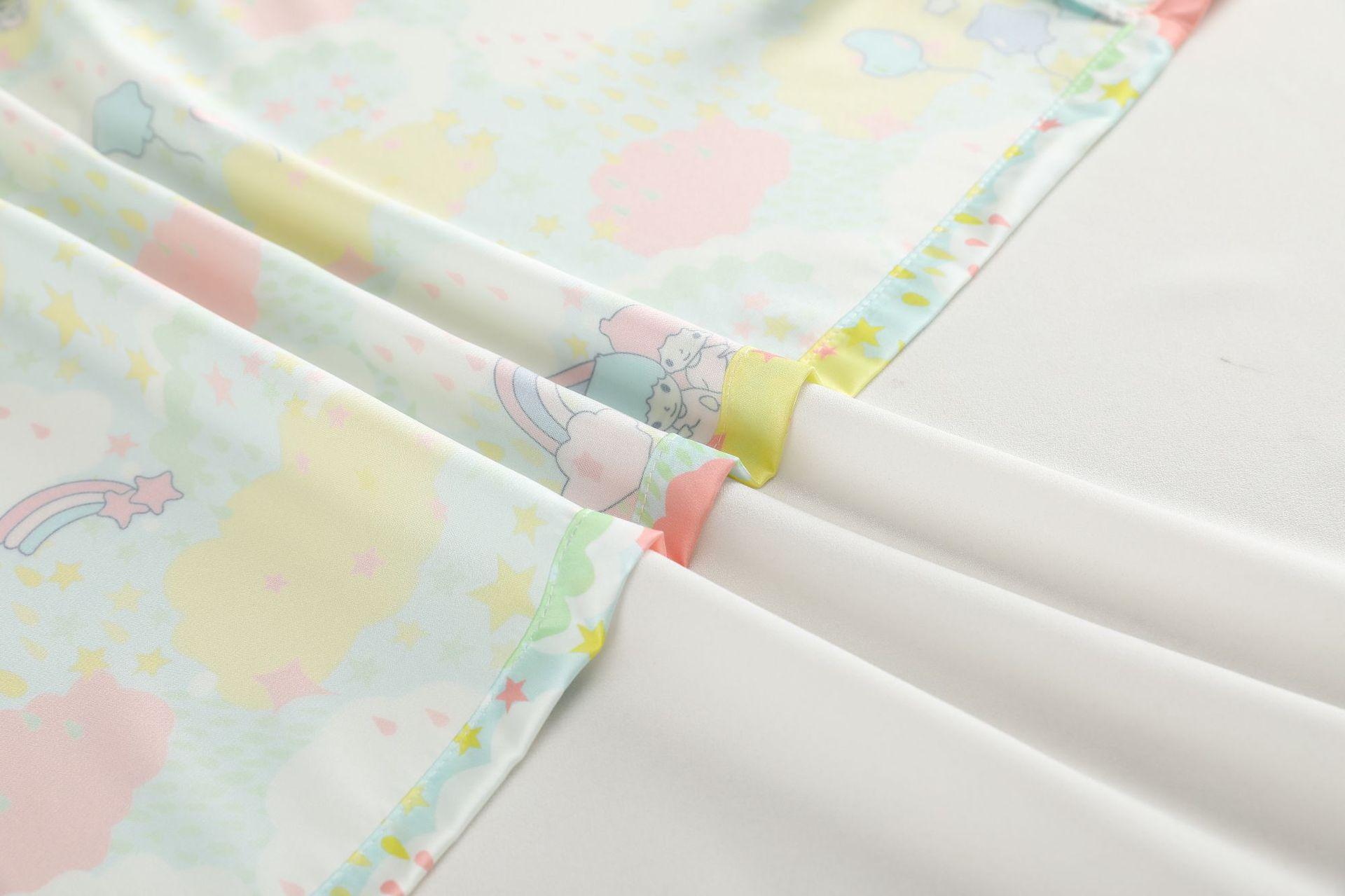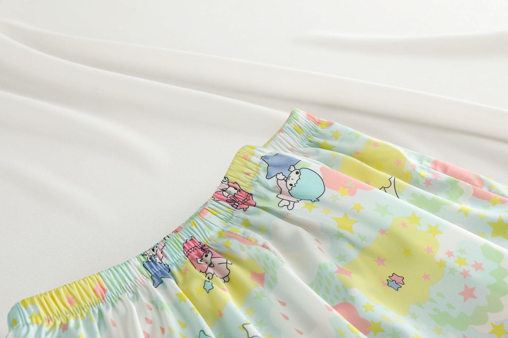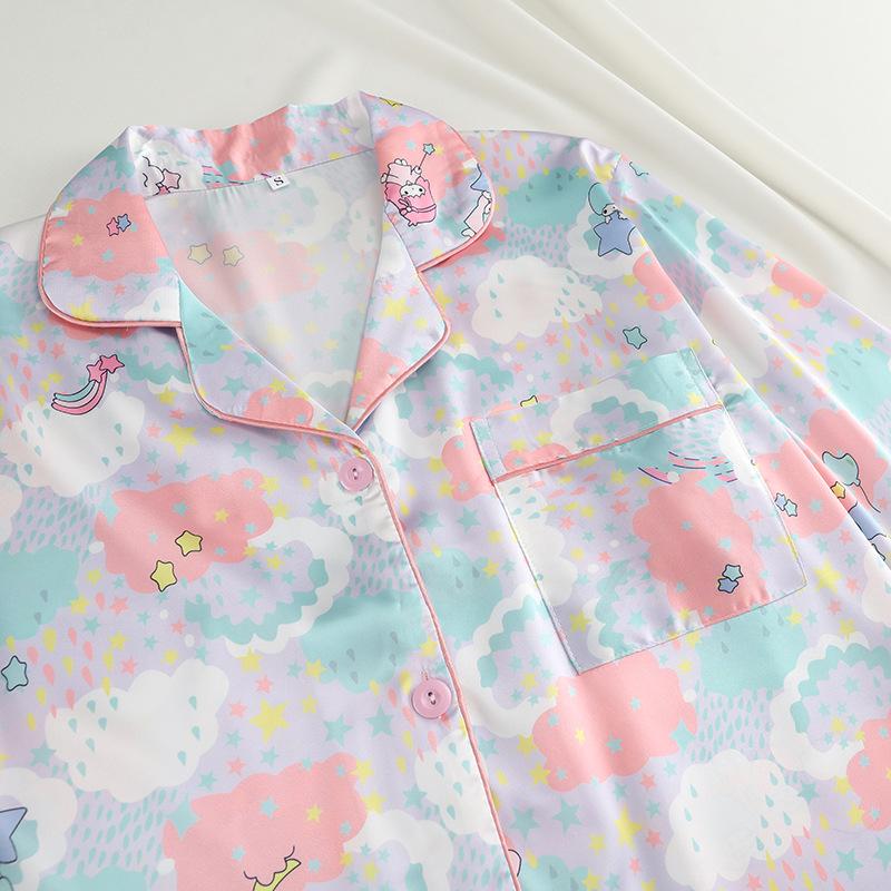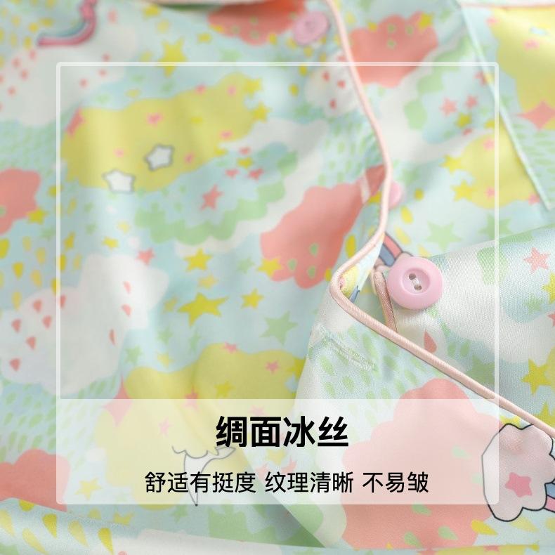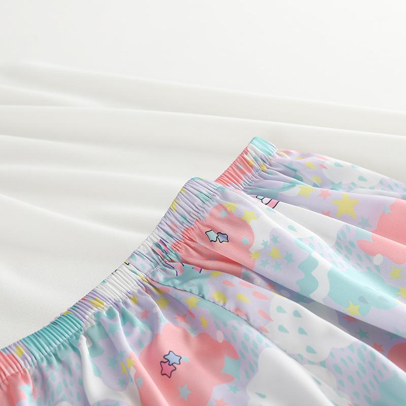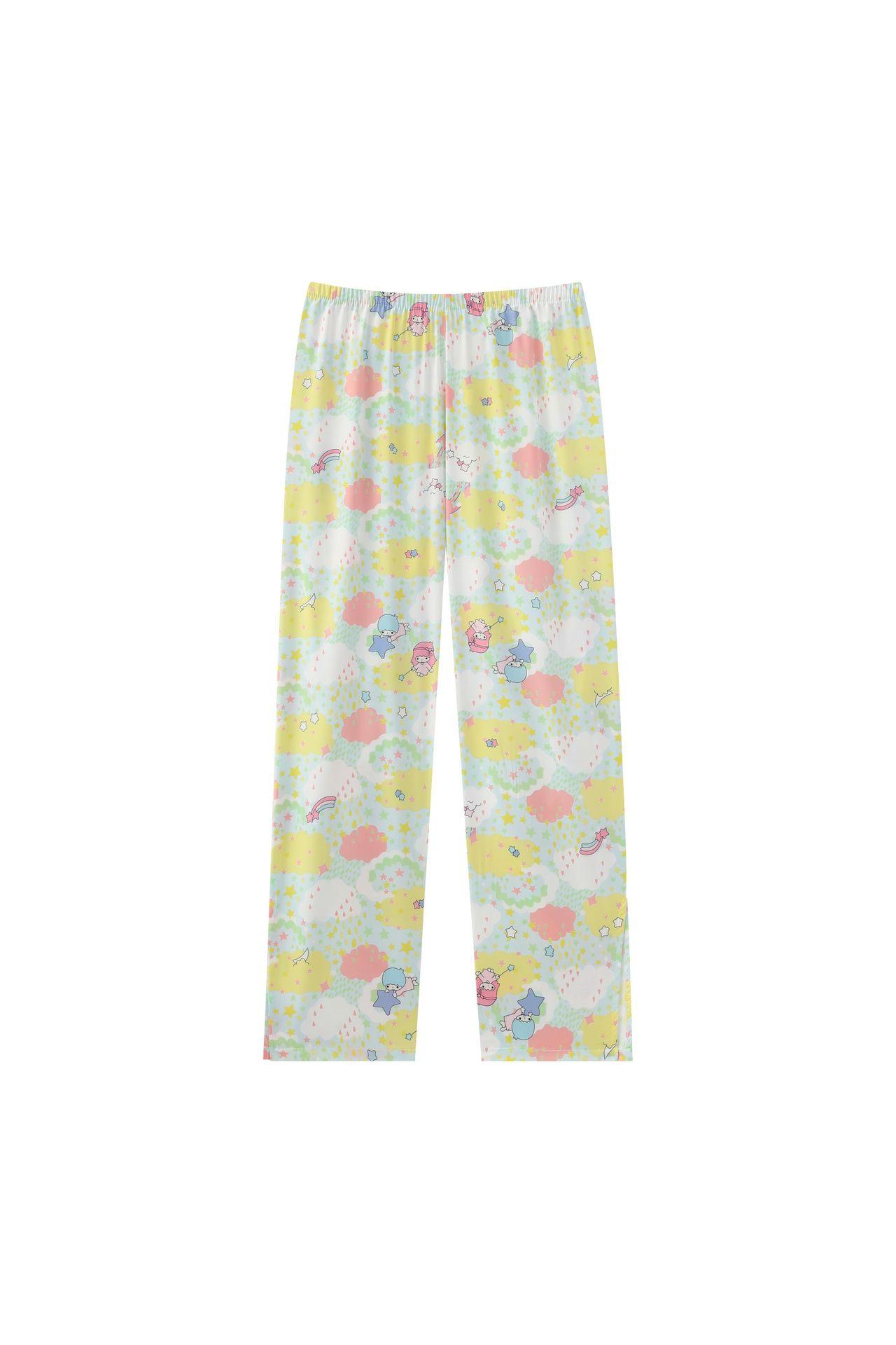 Conjunto de 2 piezas de satén de seda helada Géminis para niña casual de manga larga y pantalón, conjunto de pijama estampado para el hogar, estilo lindo