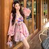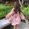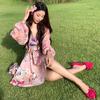 Vestido ceñido con cuello de diamantes de imitación y mangas de malla con flores para dama perezosa