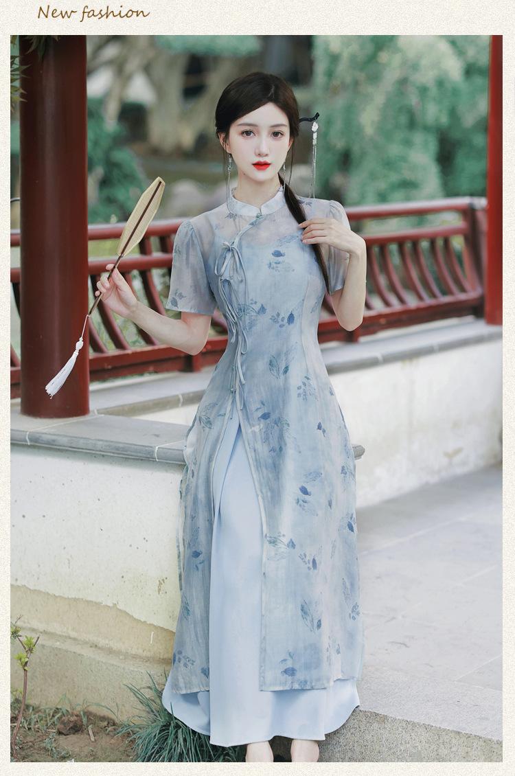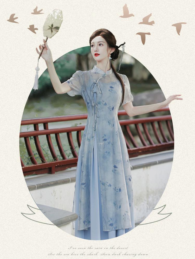 2023 Nuevo Estilo Chino Retro Estilo República de China Niña Cheongsam Joven de Alta Gama Elegante Vestido Mejorado para Verano Diario