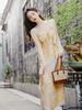 Vestido elegante de estilo francés con escote en V, de alta calidad, con abertura irregular, floral, para vacaciones en la playa de verano, estilo vintage con tirantes florales.