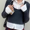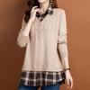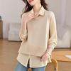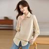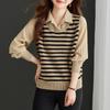 Primavera, Otoño e Invierno 2025 Nueva Camisa Empalmada Falso Tejido de Punto de Dos Piezas Camisa Elegante Suelta para Mujer Top de Tejido de Punto Rayado