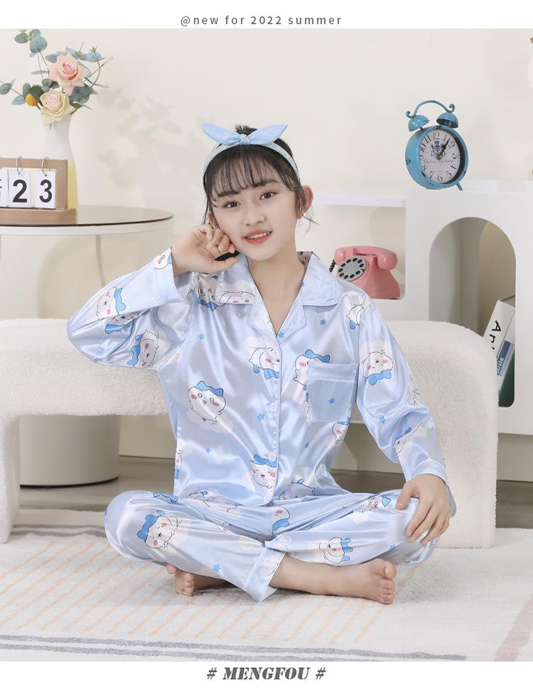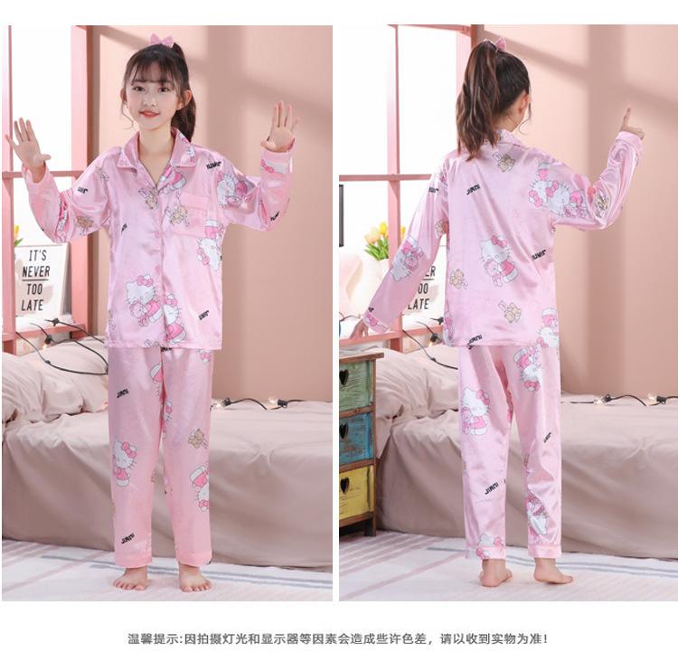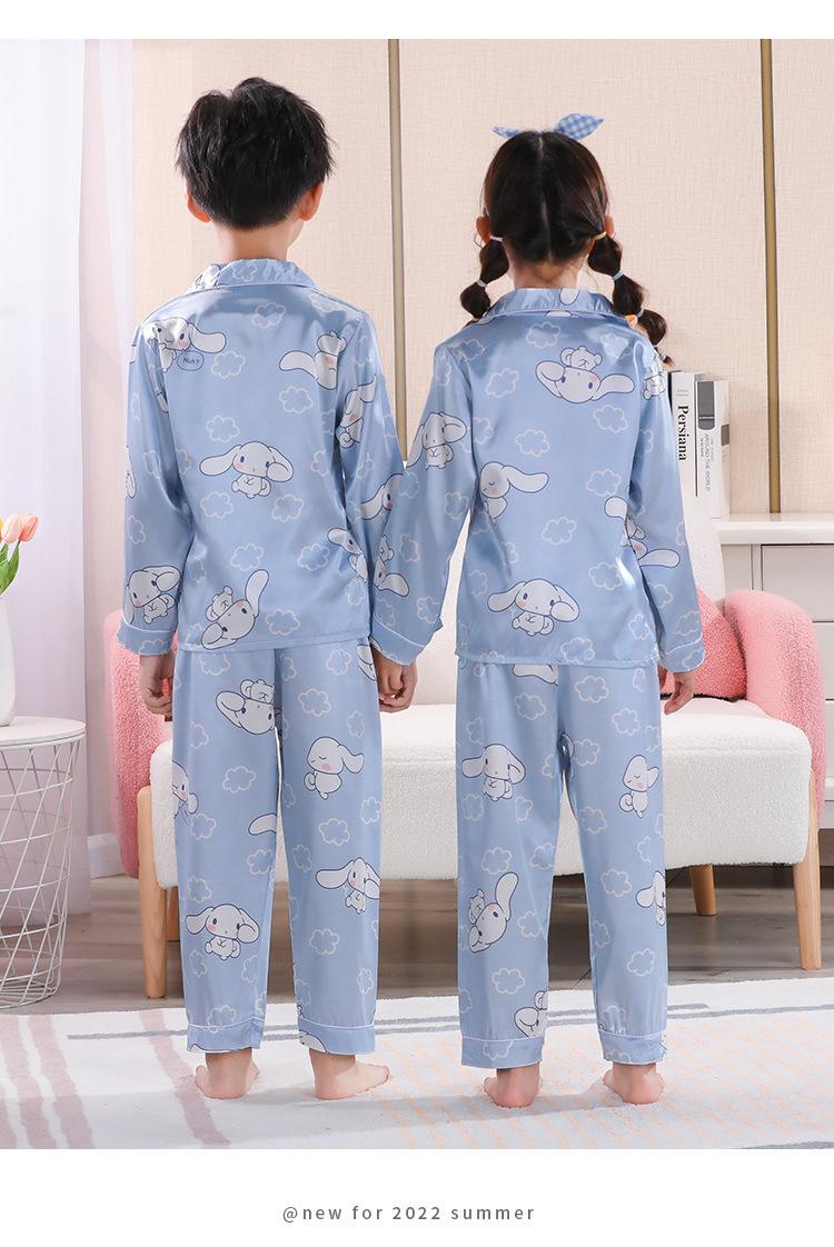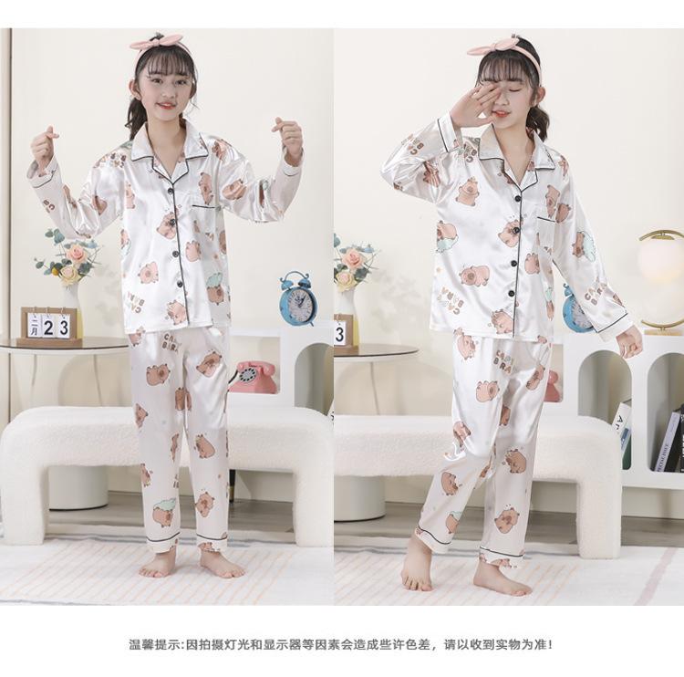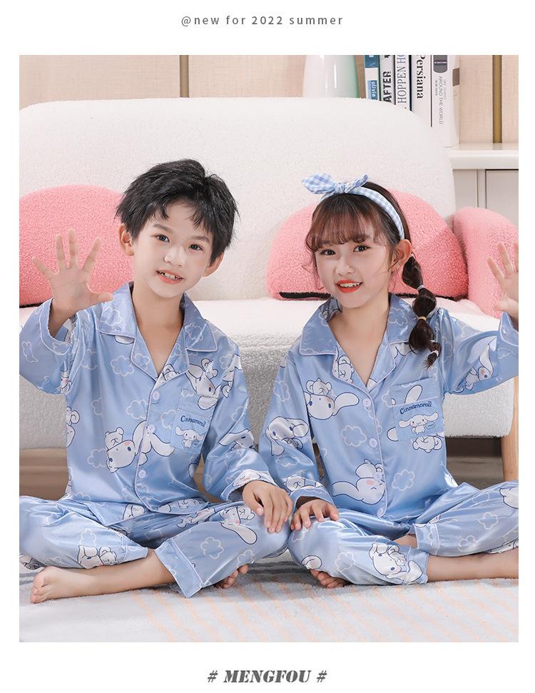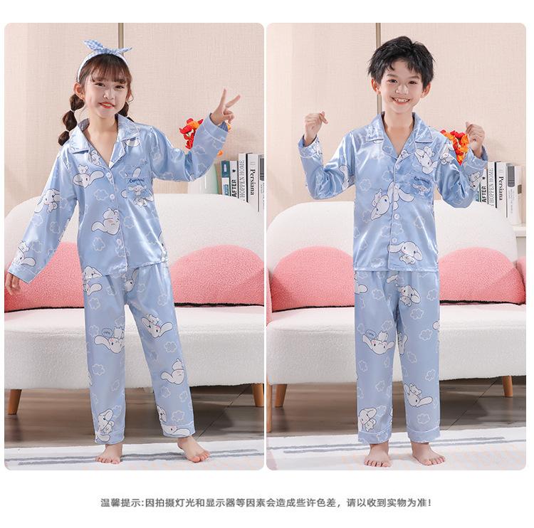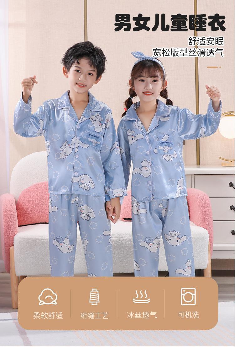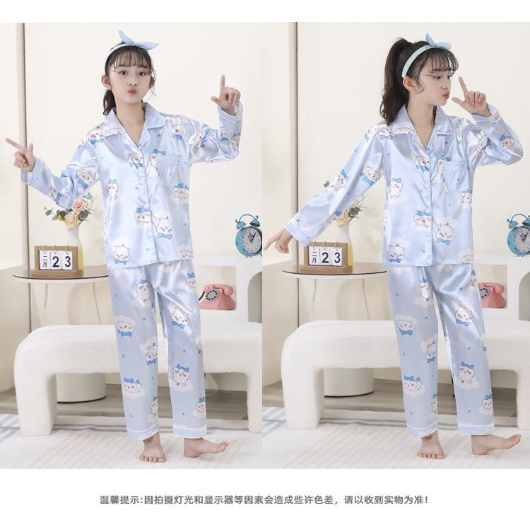 Pijamas de seda helada de manga larga para niños y niñas de verano, cárdigan bonito con dibujos animados, ropa fina para el hogar