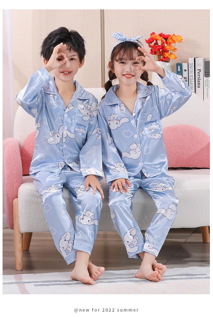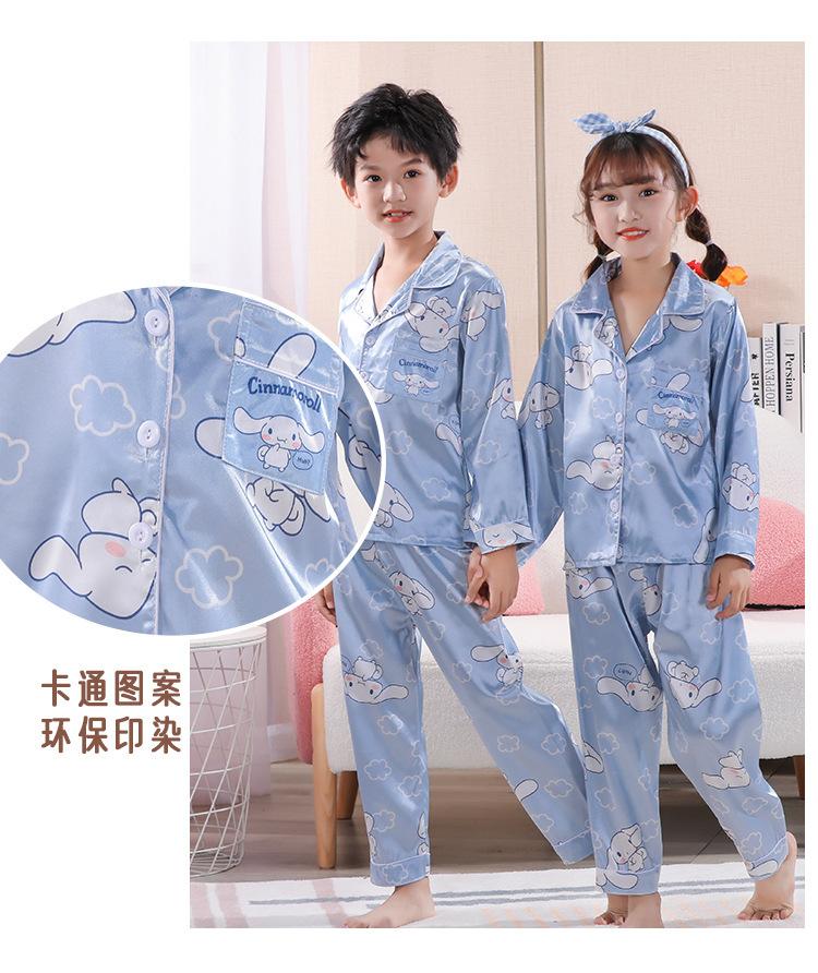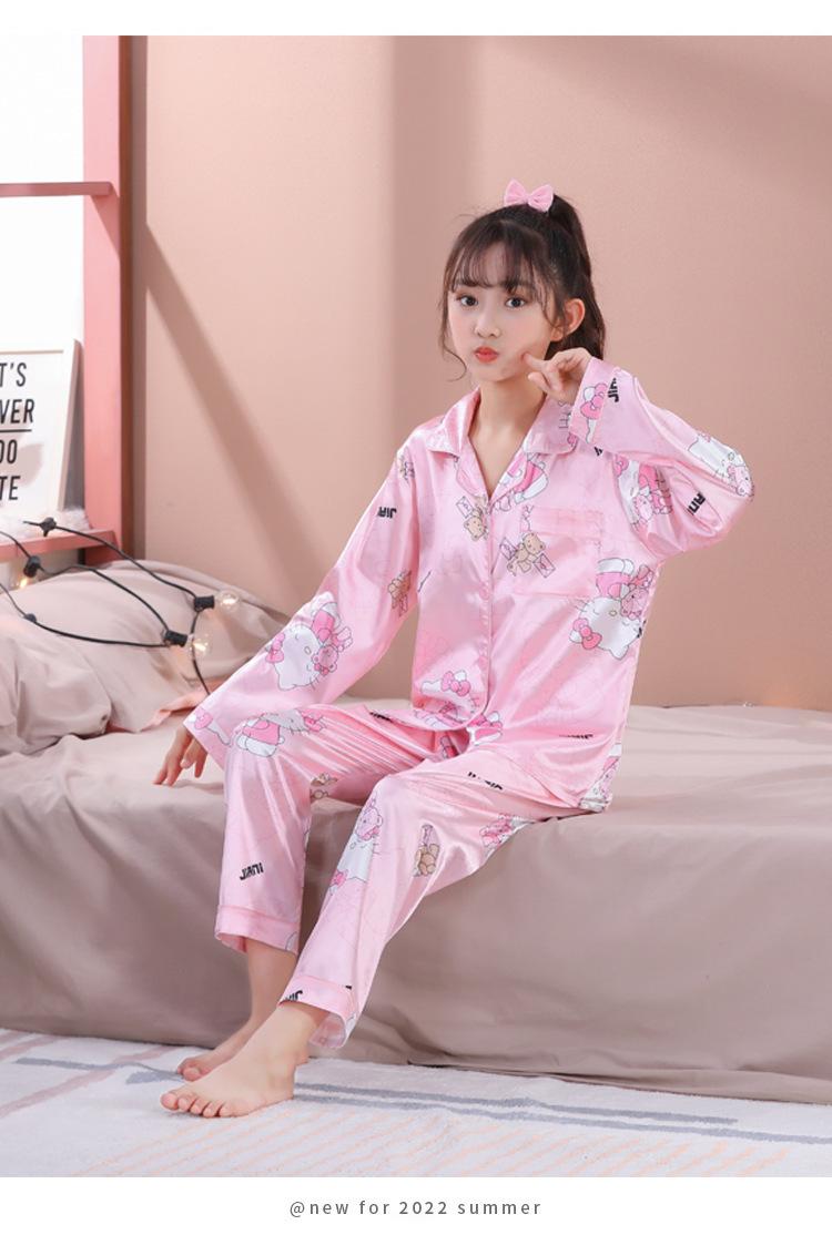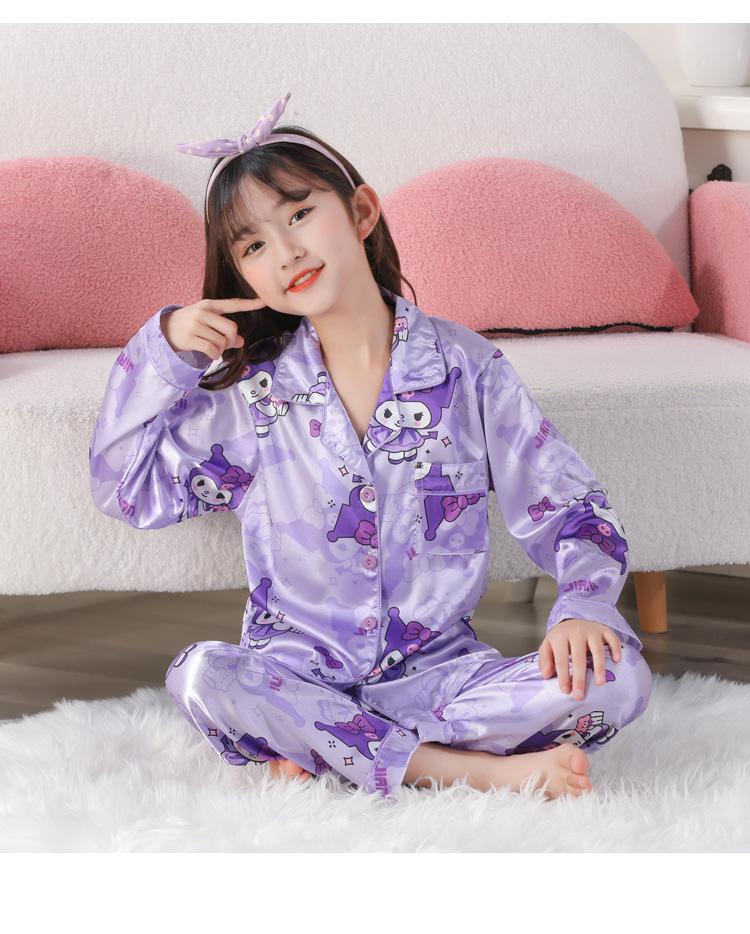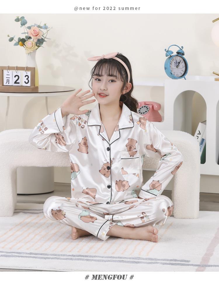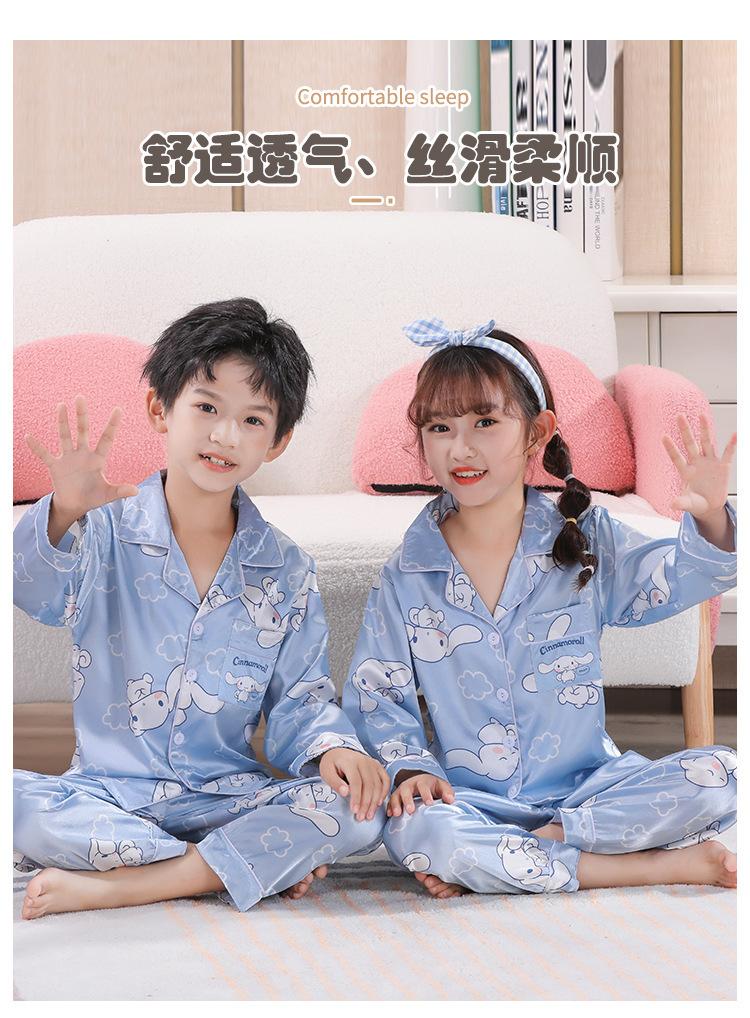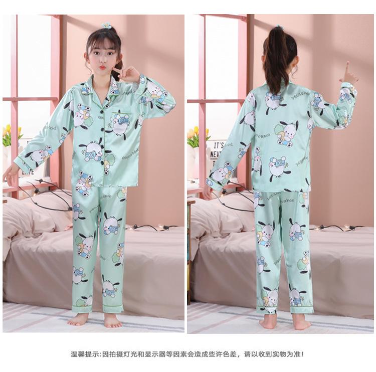 Pijamas de seda helada de manga larga para niños y niñas de verano, cárdigan bonito con dibujos animados, ropa fina para el hogar