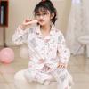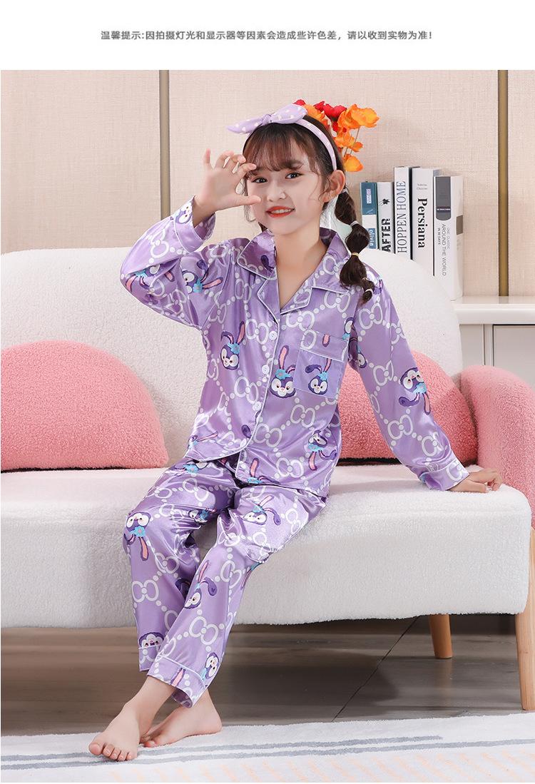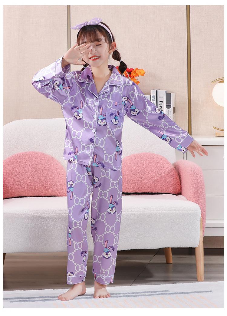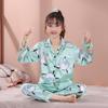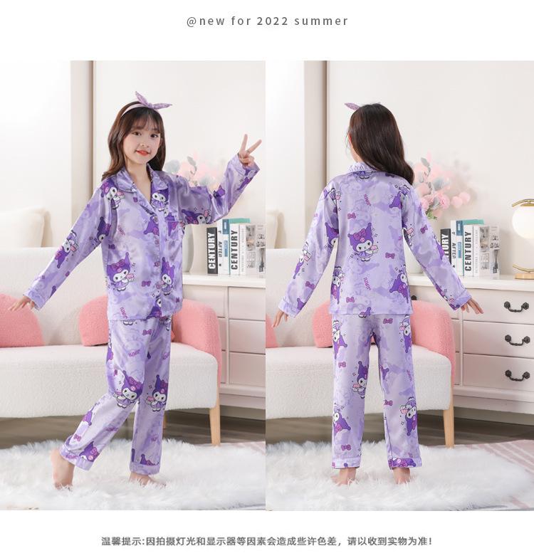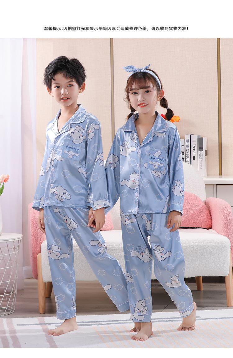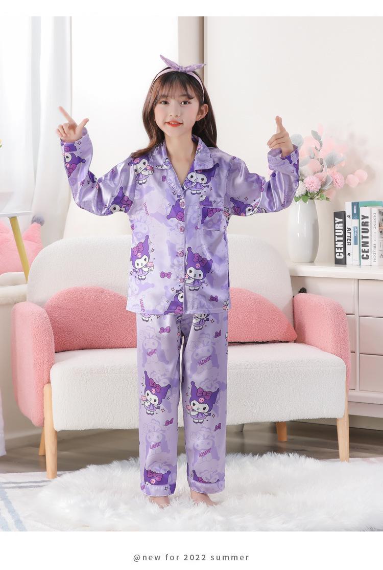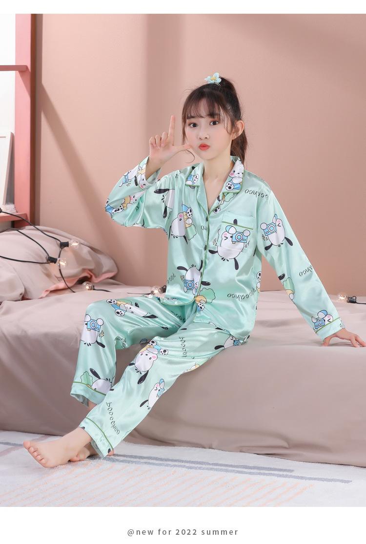 Pijamas de seda helada de manga larga para niños y niñas de verano, cárdigan bonito con dibujos animados, ropa fina para el hogar
