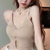 Chaleco corto sin mangas de punto con cuello en V para mujer, camisa de red roja con tirantes pequeños, nuevo estilo de verano, ropa interior y exterior, top de moda