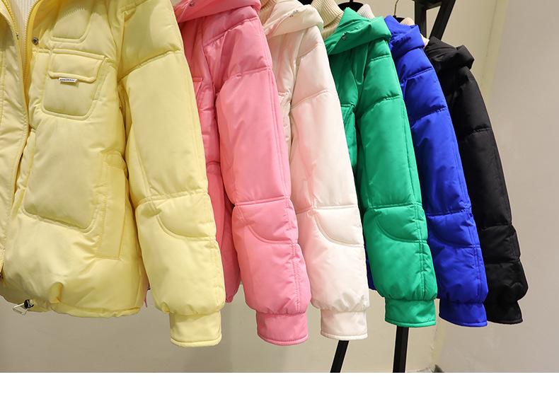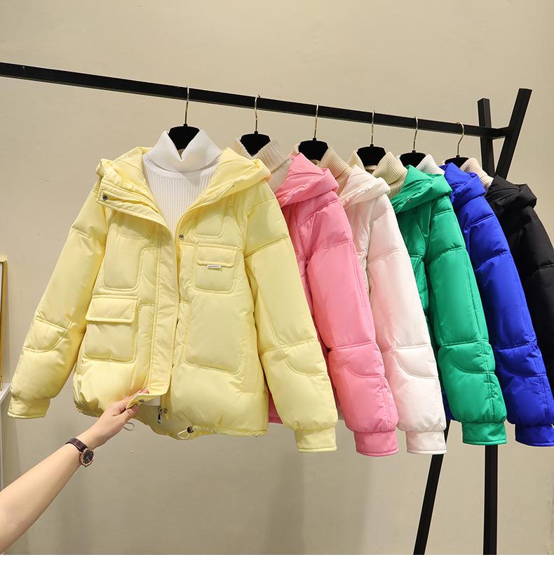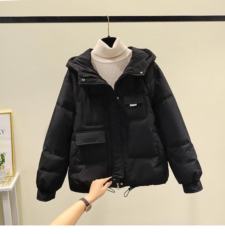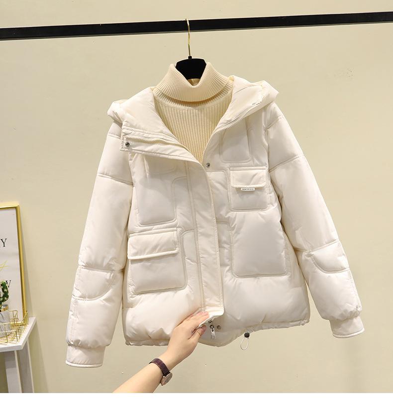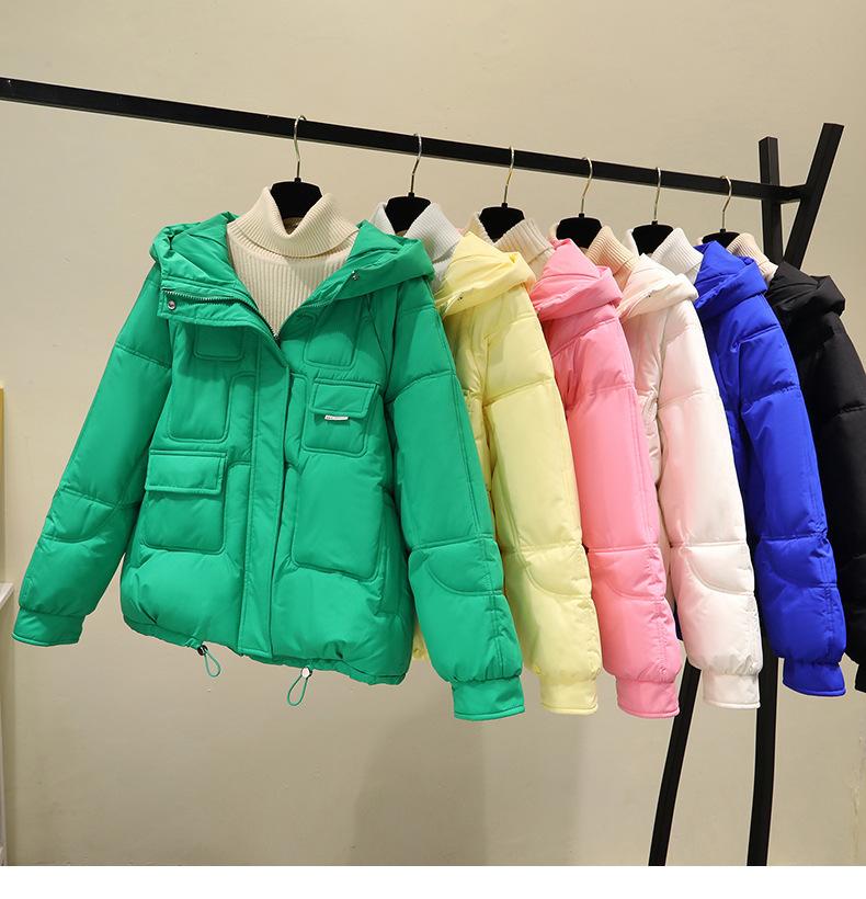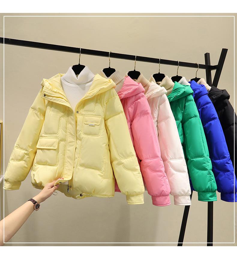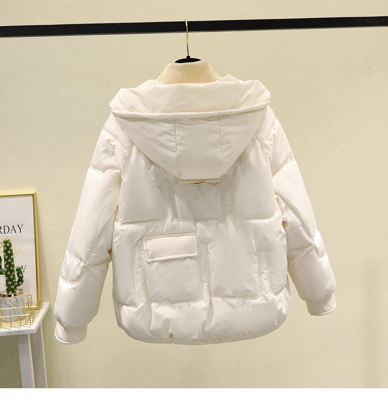 2024 Chaqueta de Algodón Acolchada con Capucha para Mujer Nueva Corta Invierno Estilo Coreano Talla Grande Gruesa Bolsillo con Solapa Múltiple Pantalones Chaqueta de Algodón Moderna