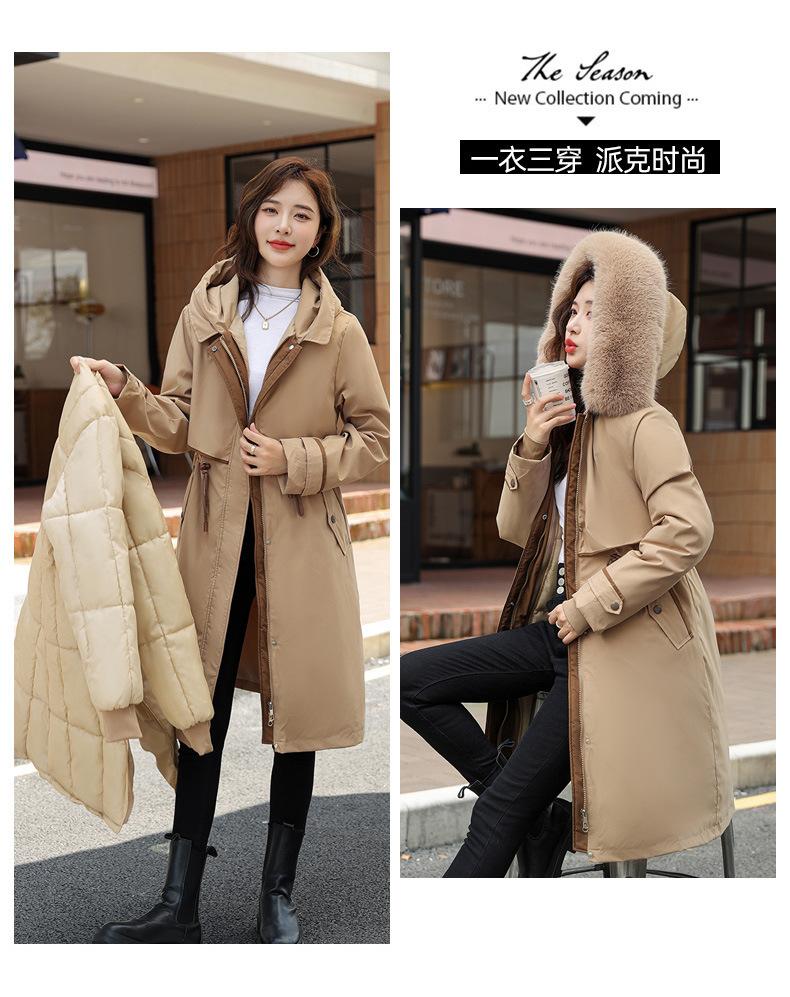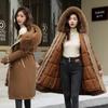 Chaqueta acolchada de algodón para mujer, parka larga hasta la rodilla, ropa con forro removible, 2023 nuevo invierno, talla grande, abrigo de plumón