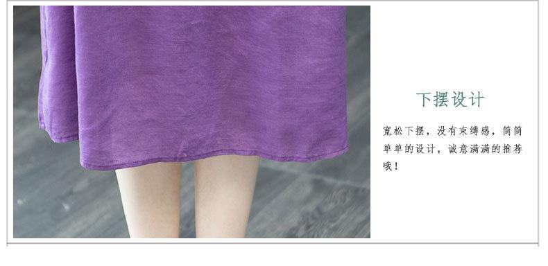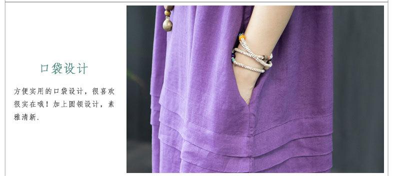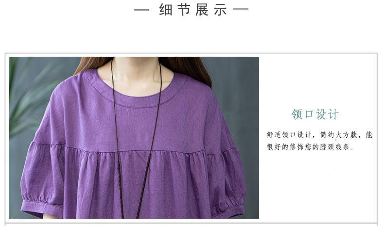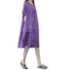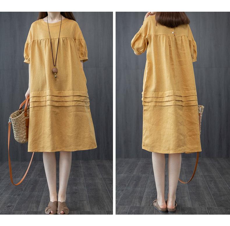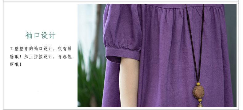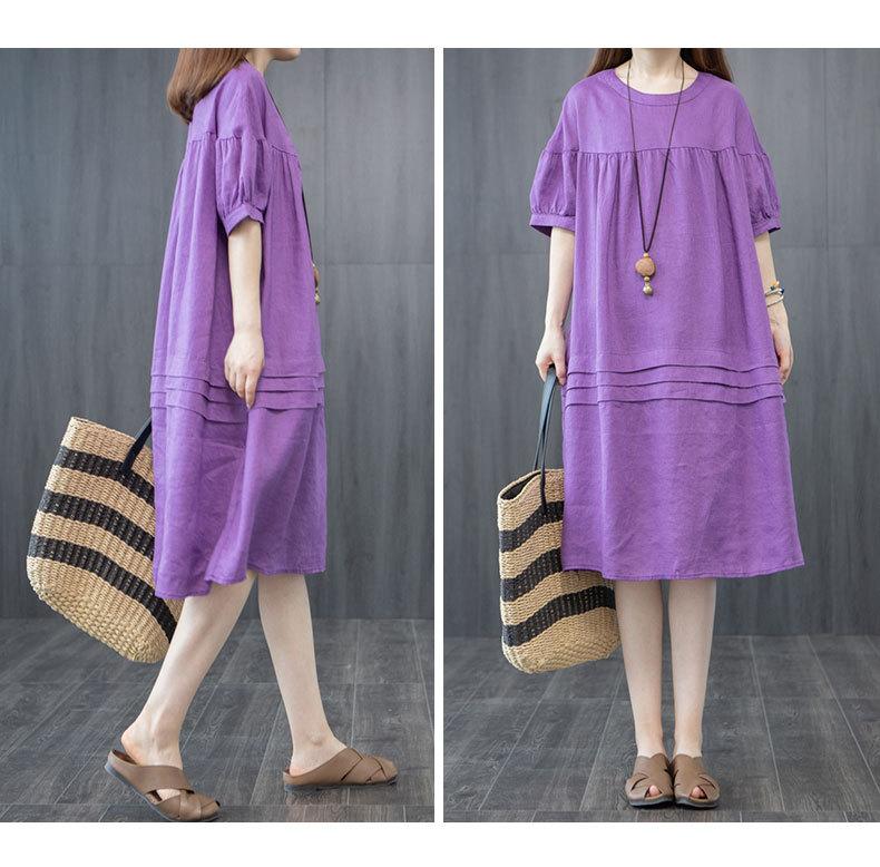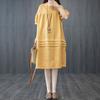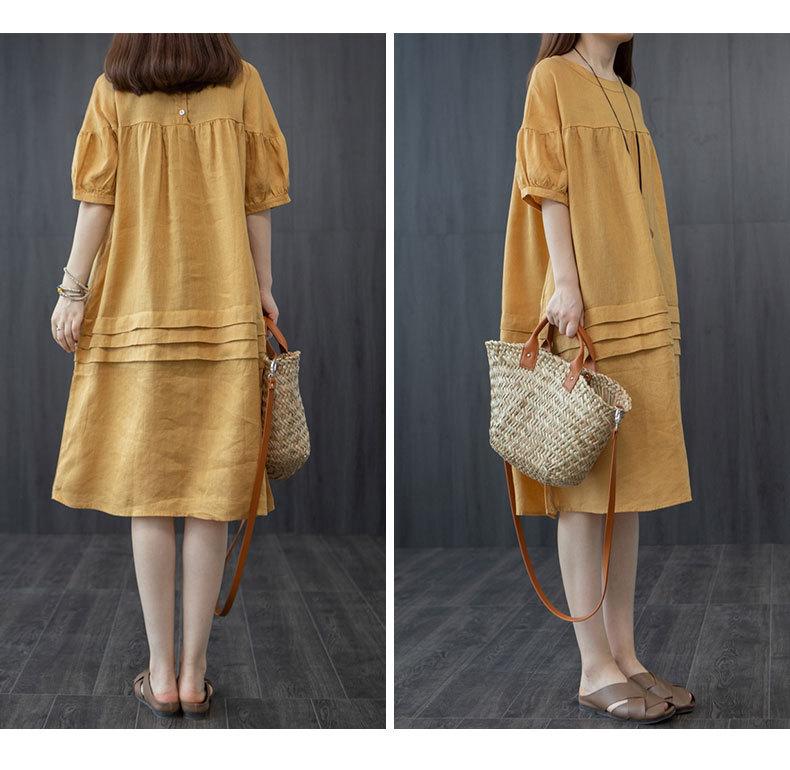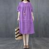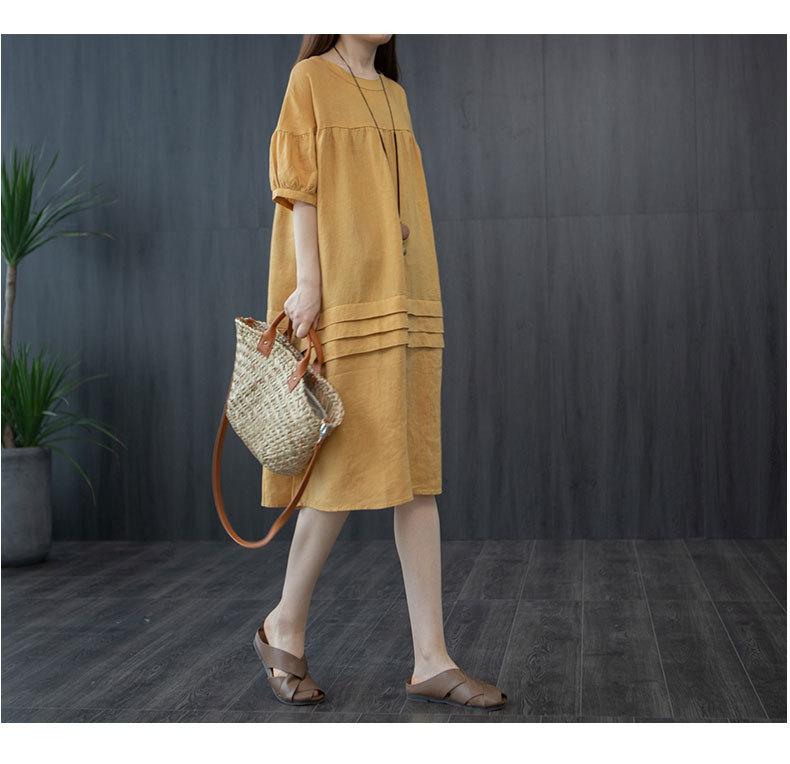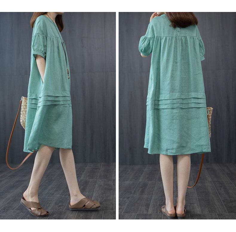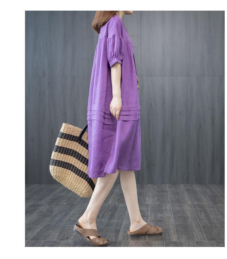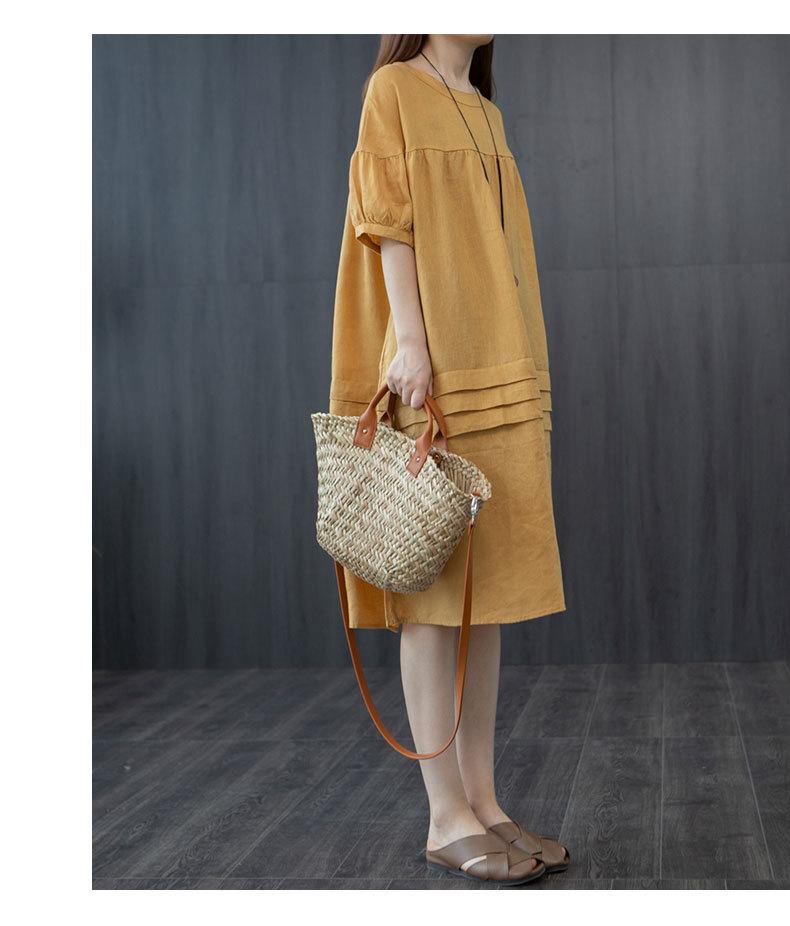 Vestido de verano 2024 nuevo con costuras sueltas literarias de color sólido con cuello redondo y manga corta para mujer, talla 229