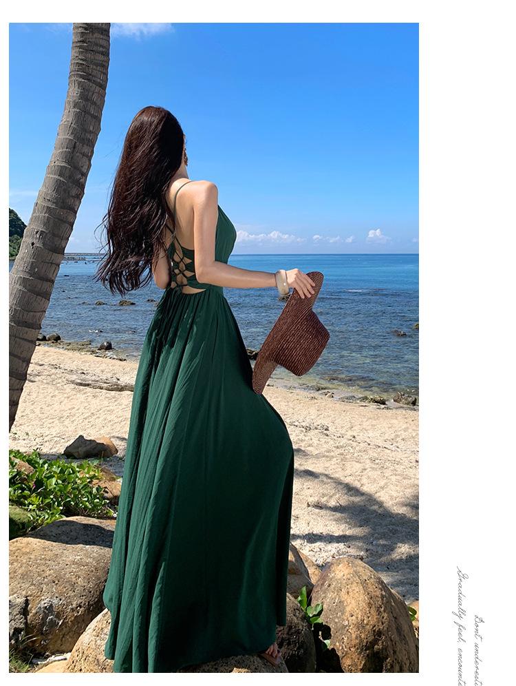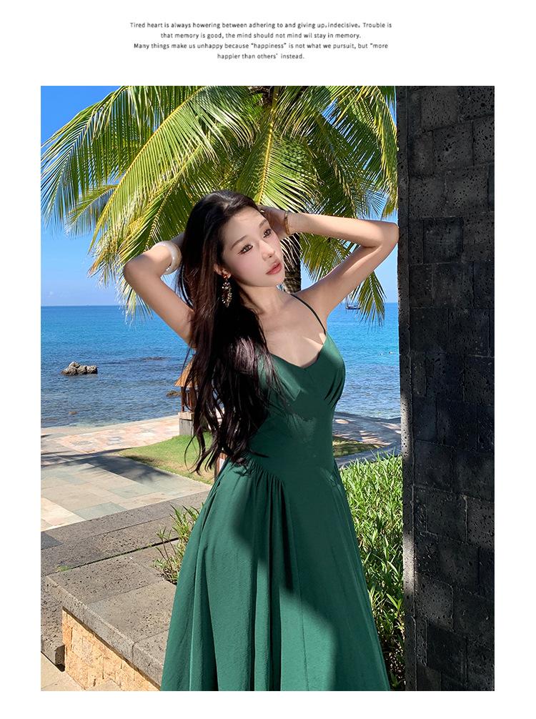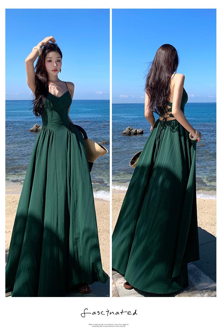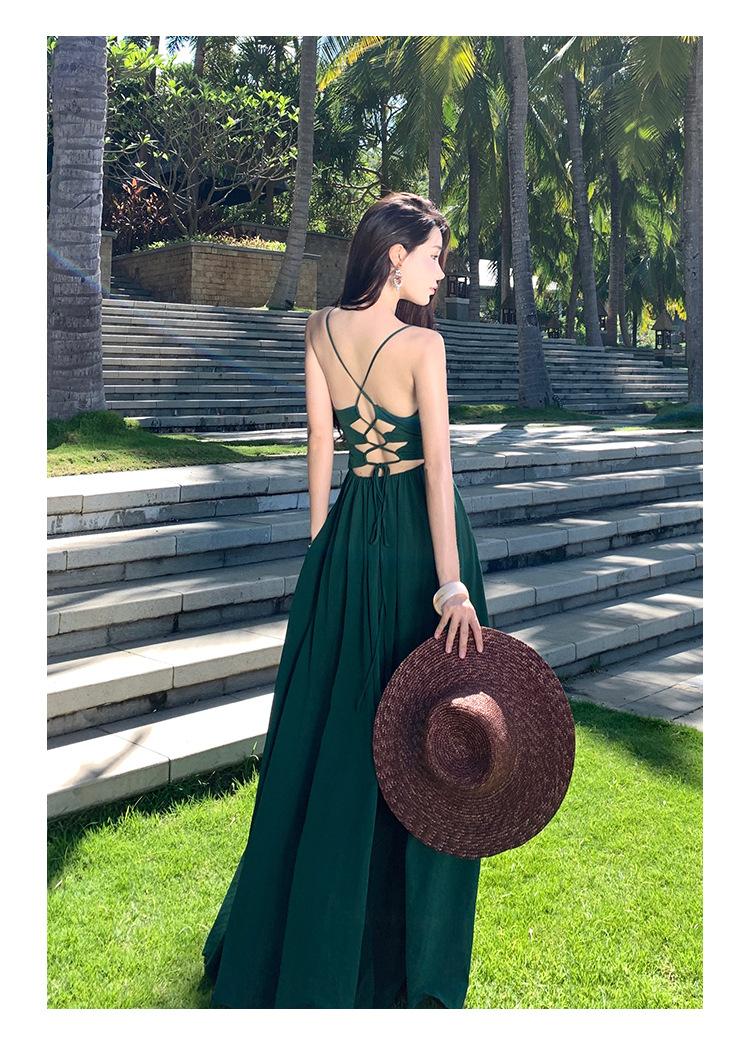 En stock Vintage Pure Desire Sexy Collar Sling Vestido Mujer Estilo festivo Sin espalda Adelgazante Elegante Cintura Ajustada Falda Grande