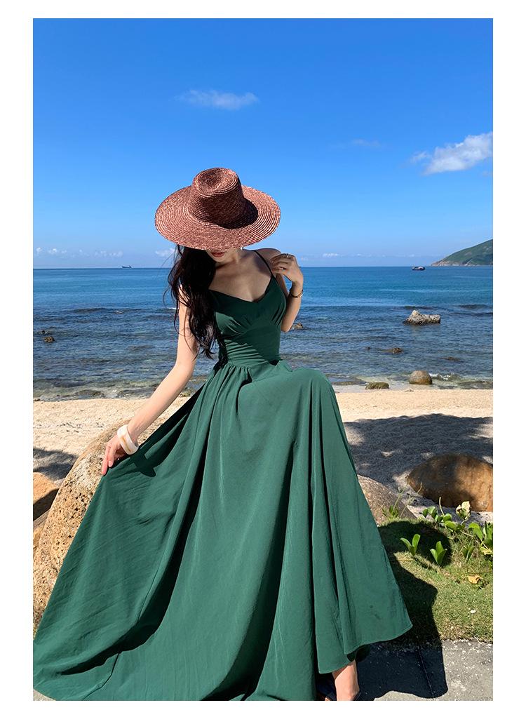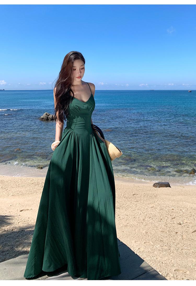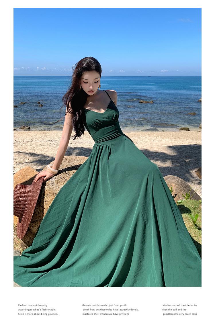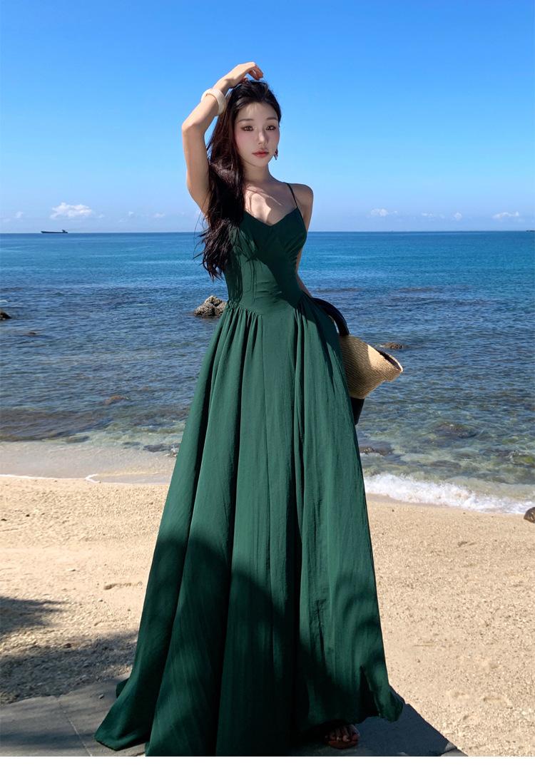 En stock Vintage Pure Desire Sexy Collar Sling Vestido Mujer Estilo festivo Sin espalda Adelgazante Elegante Cintura Ajustada Falda Grande