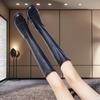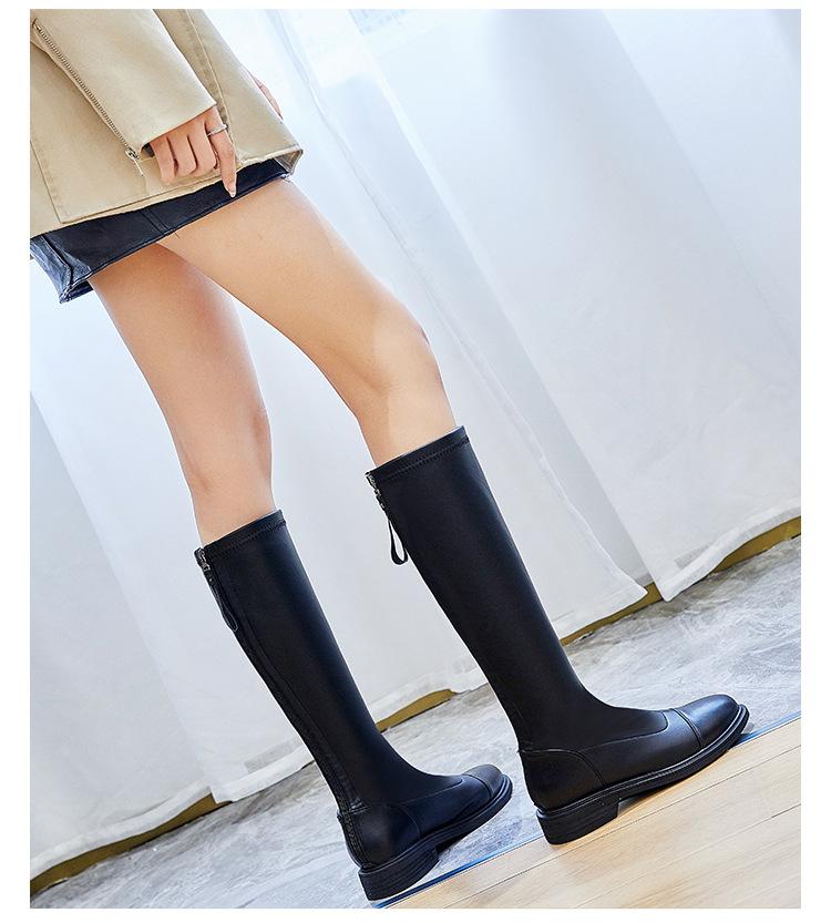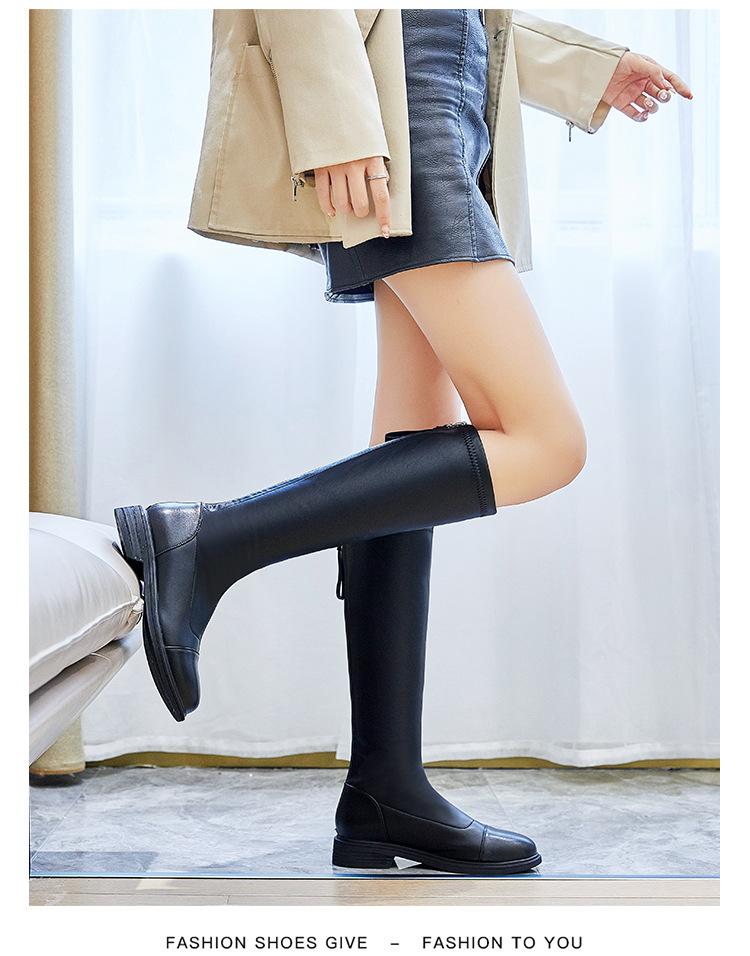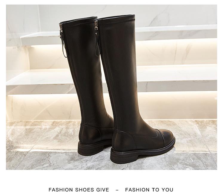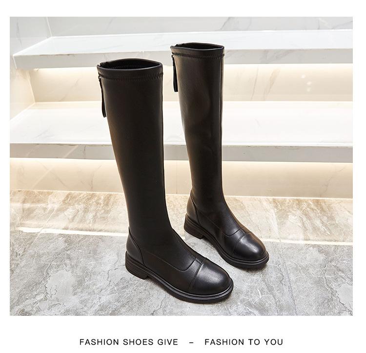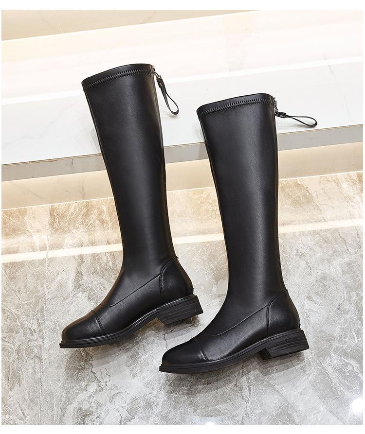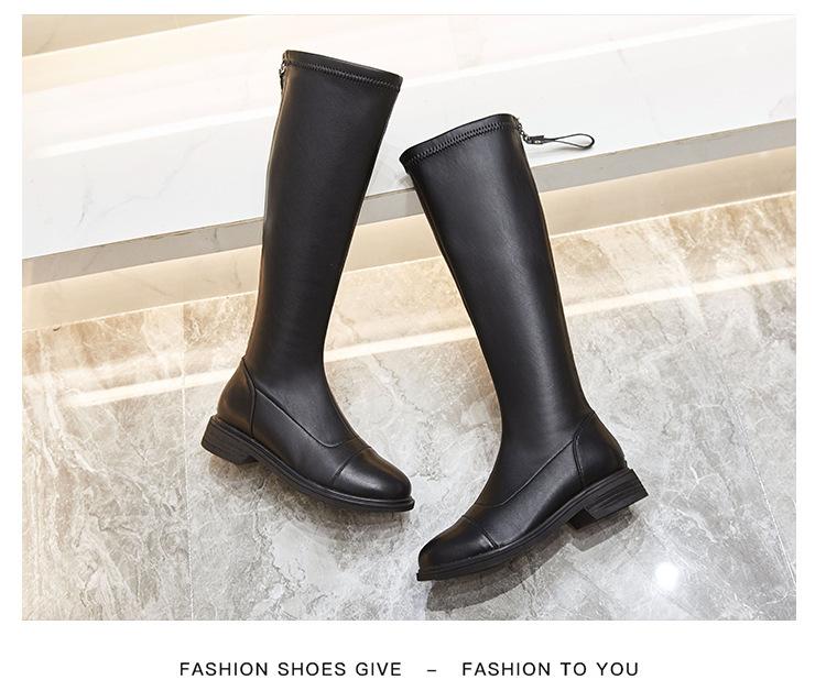 Botas altas de otoño e invierno para mujer, de suela plana, adelgazantes, con tacón grueso hasta la rodilla, elásticas, de tacón bajo, de lana británica, botas de caballero al por mayor
