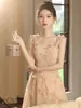 Vestido de noche dorado claro de lujo de alta gama, vestido de mañana 2025, nuevo, de alta gama, con sensación de banquete, nicho, vestido de noche con tirantes para cumpleaños.