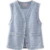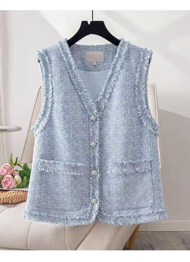 Chaleco Estilo Tweed 2025 Primavera Nuevo Moda Femenina Cuello en V Elegante Sin Mangas Pechera Sencilla