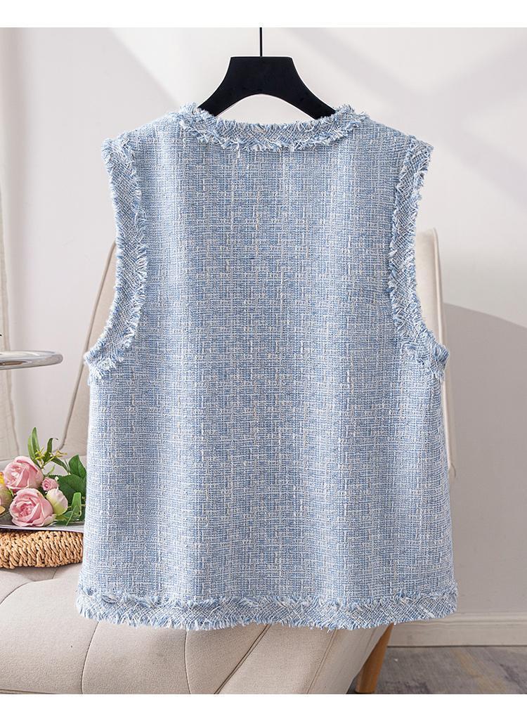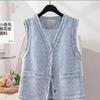 Chaleco estilo Chanel, primavera 2024, nueva moda para mujer, escote en V, temperamento, sin mangas, de un solo pecho.