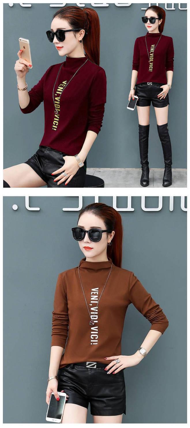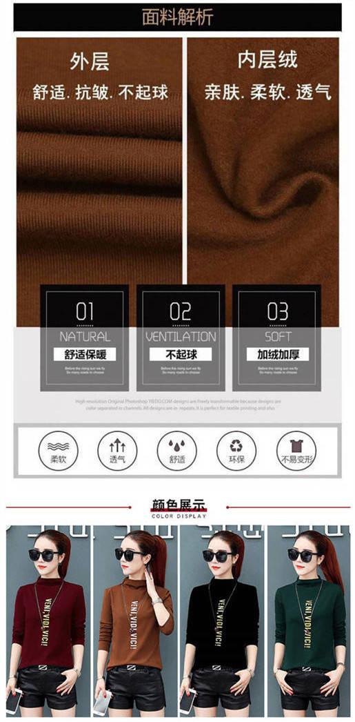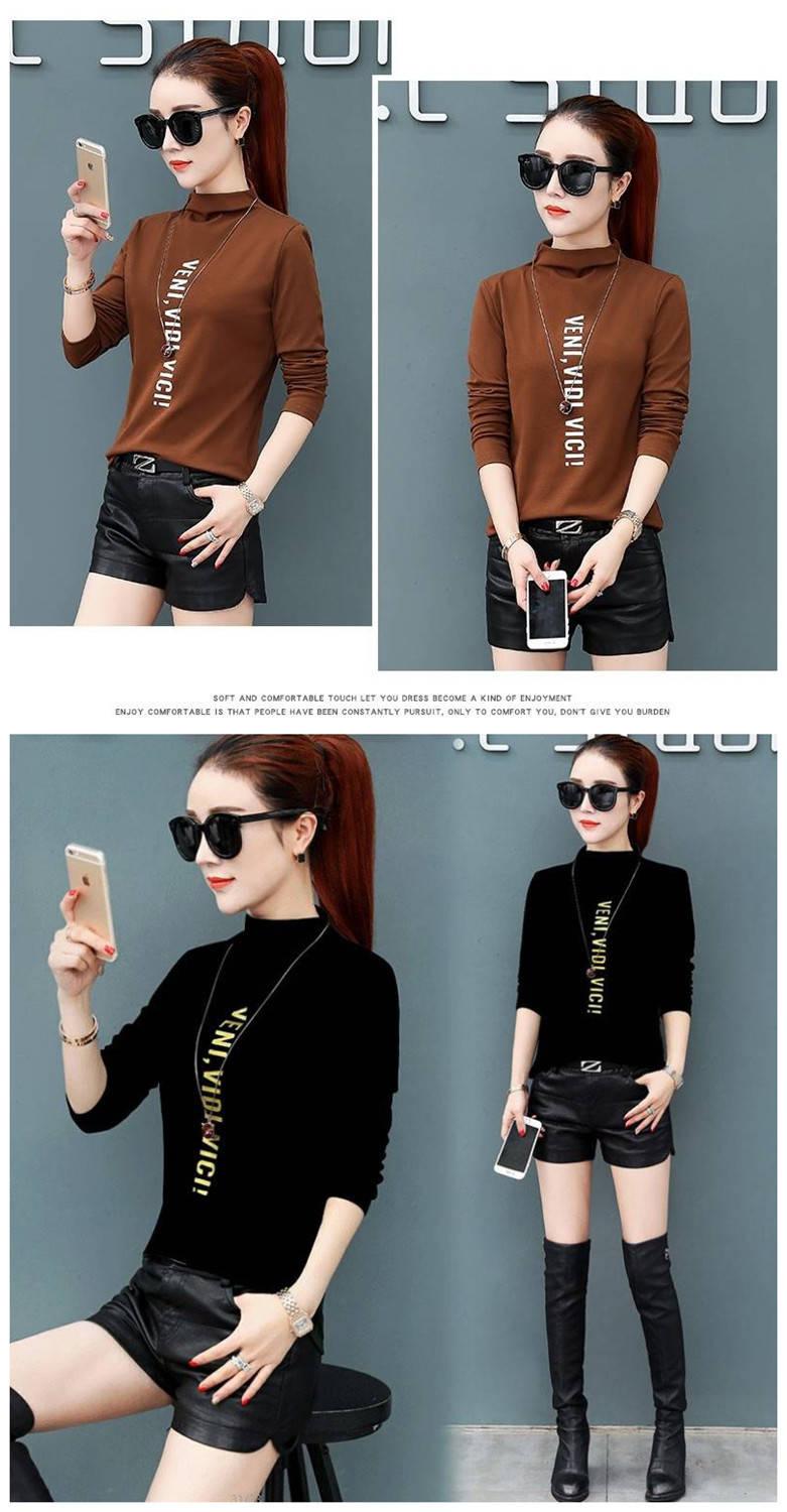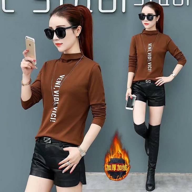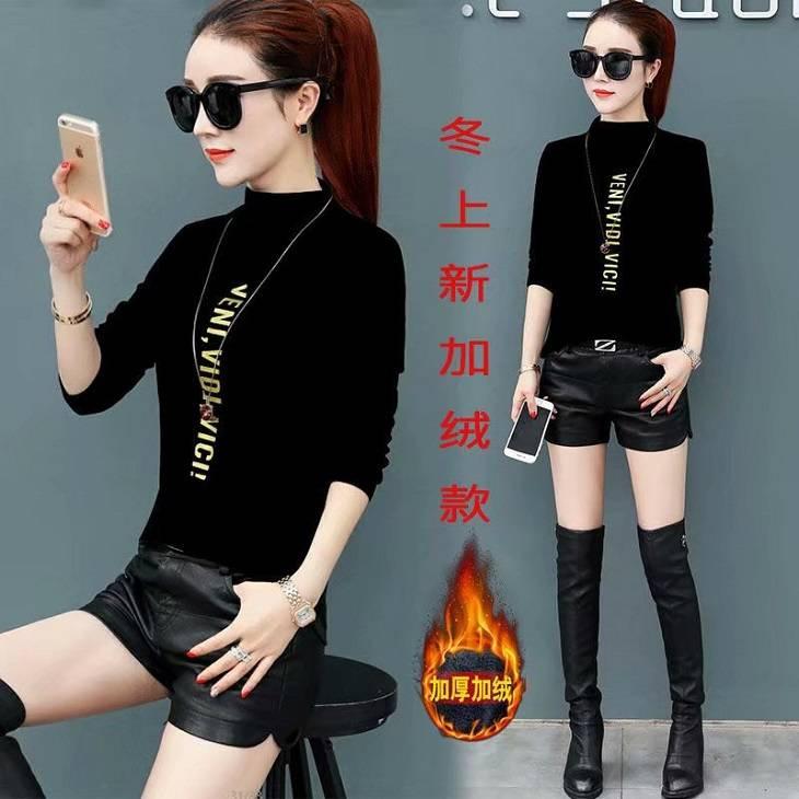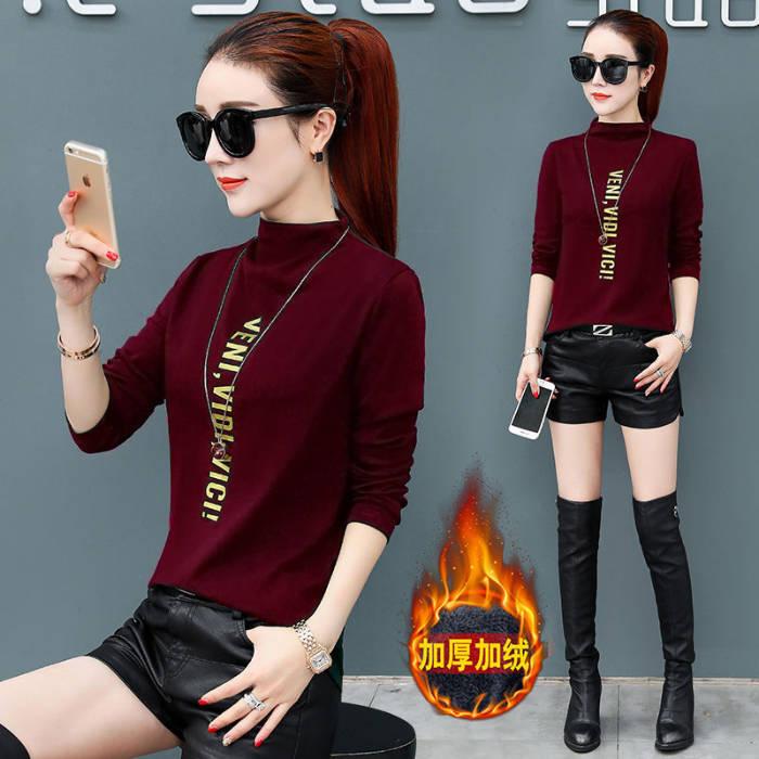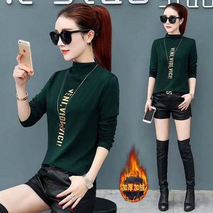 [Forro polar engrosado] Camisa de cuello alto de media manga para mujer, camiseta de otoño e invierno, nueva camiseta ajustada de una pieza, entrega de comercio exterior
