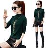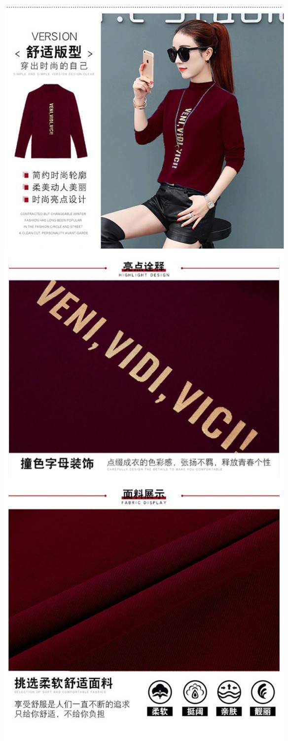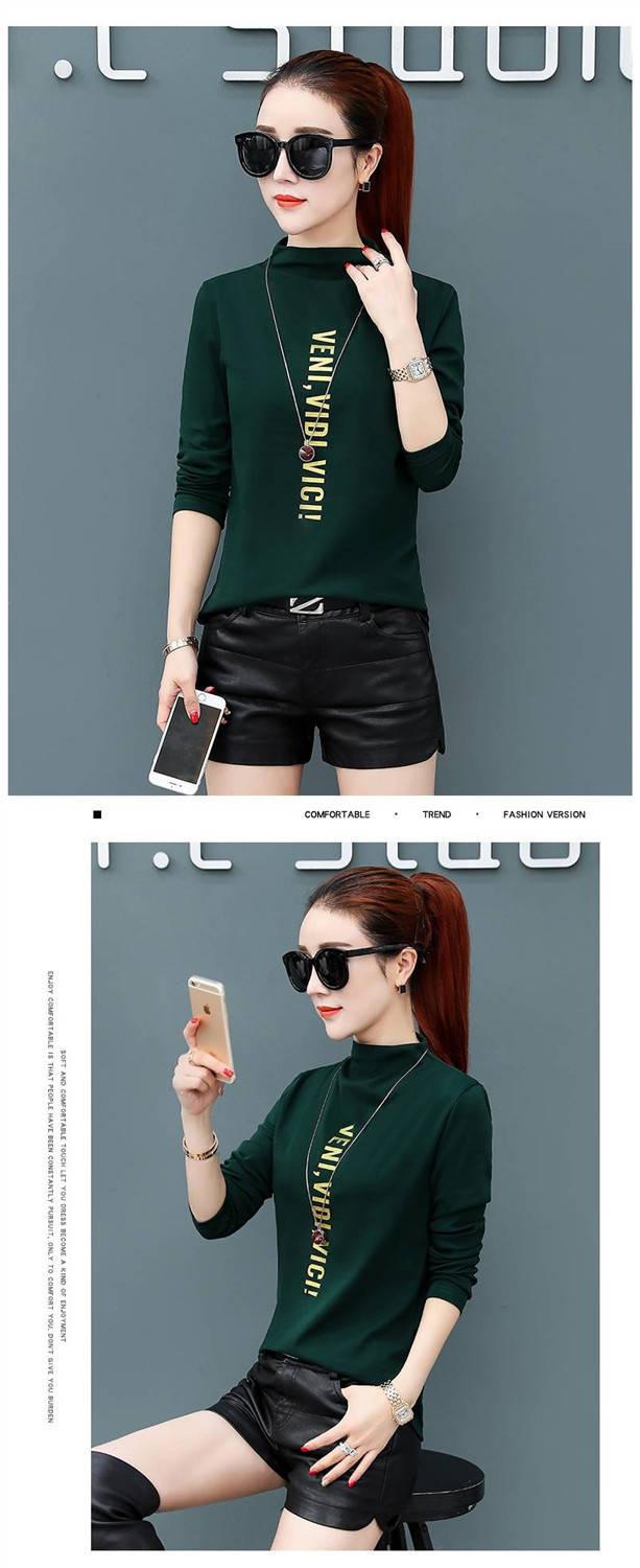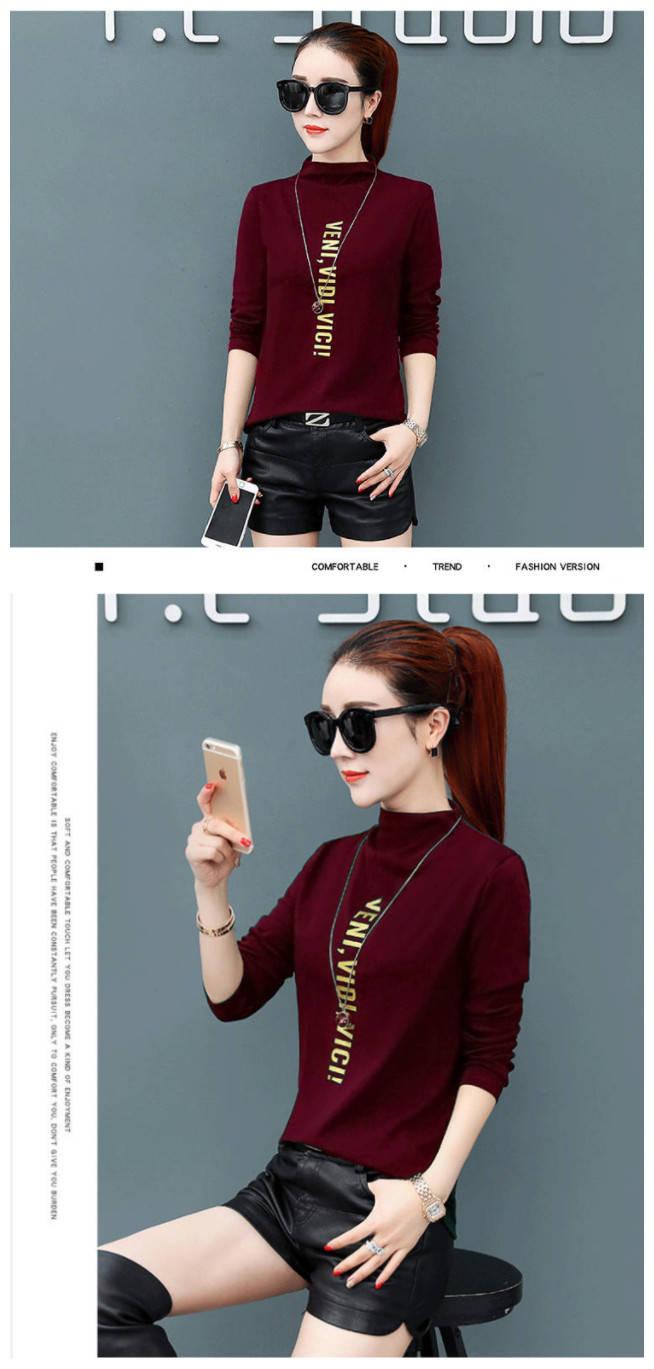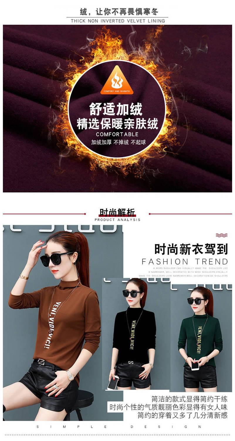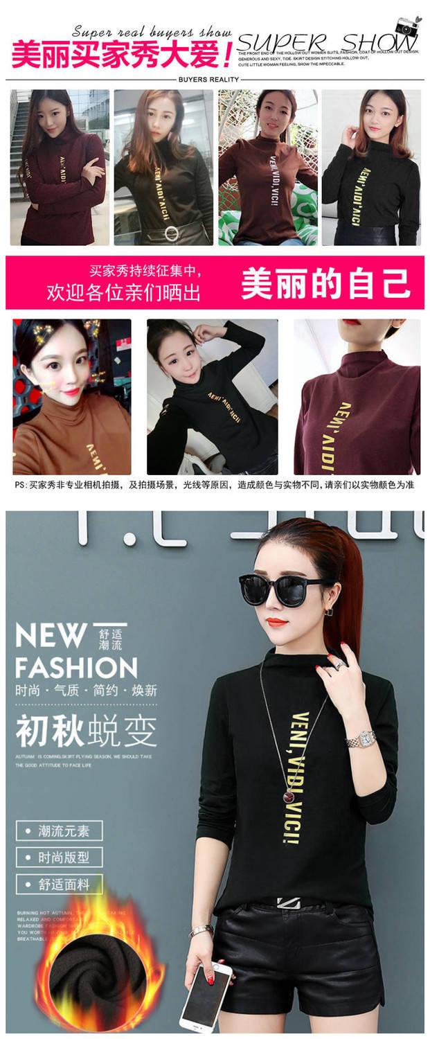 [Forro polar engrosado] Camisa de cuello alto de media manga para mujer, camiseta de otoño e invierno, nueva camiseta ajustada de una pieza, entrega de comercio exterior