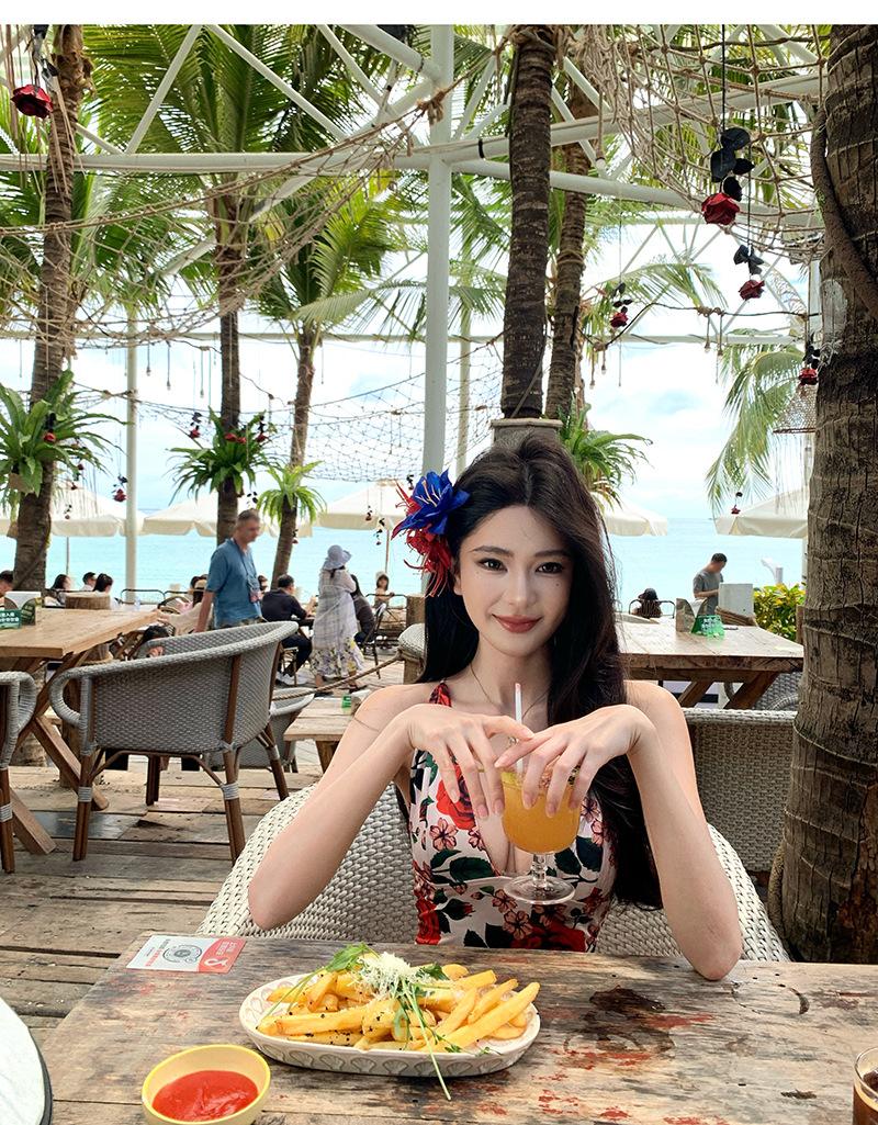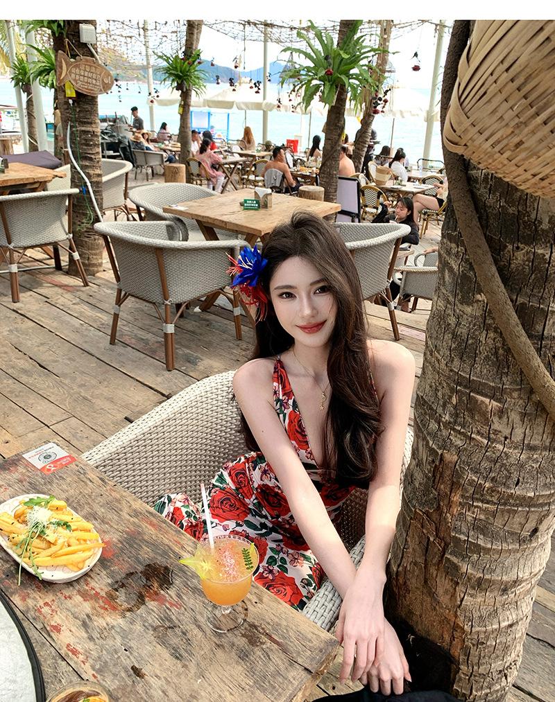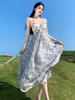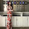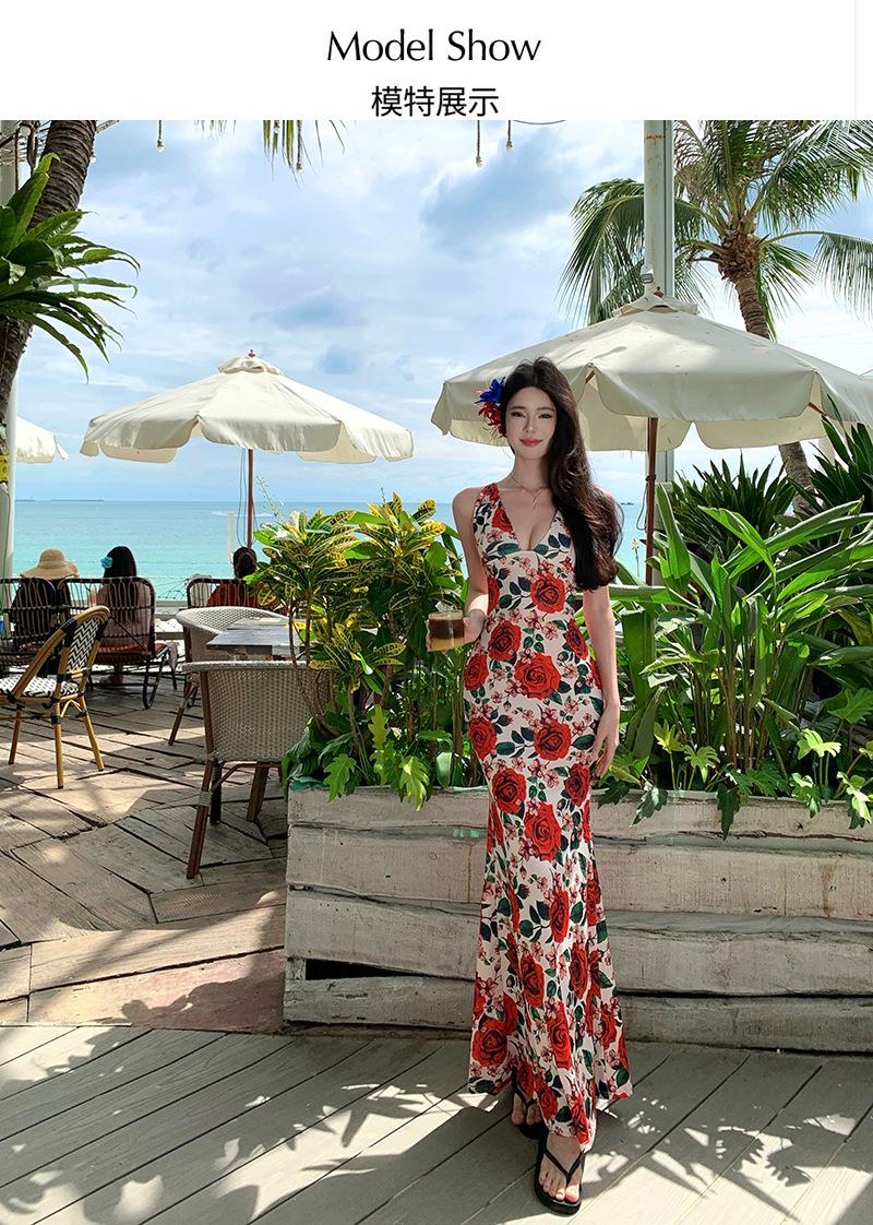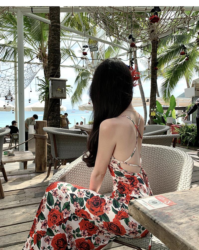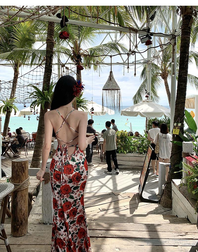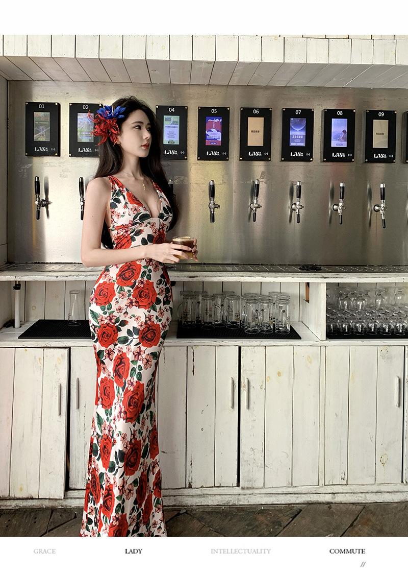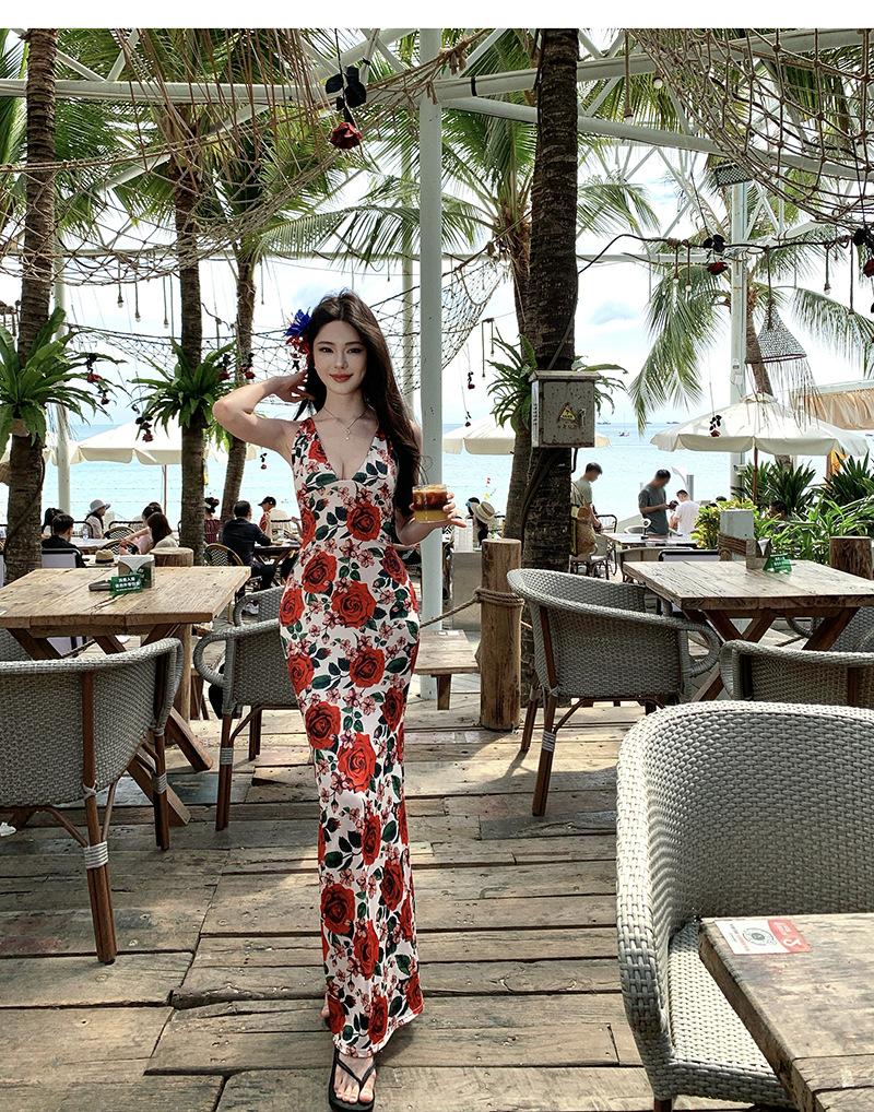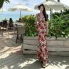 Vestido de verano para mujer, estilo francés, con estampado de puro deseo, cuello sin espalda, falda larga sexy y elegante para vacaciones en la playa.