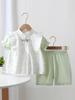 Verano 2025 nuevo bebé niña de 0-2 años traje sin huesos con hebilla estilo chino pantalones de entrepierna desmontable