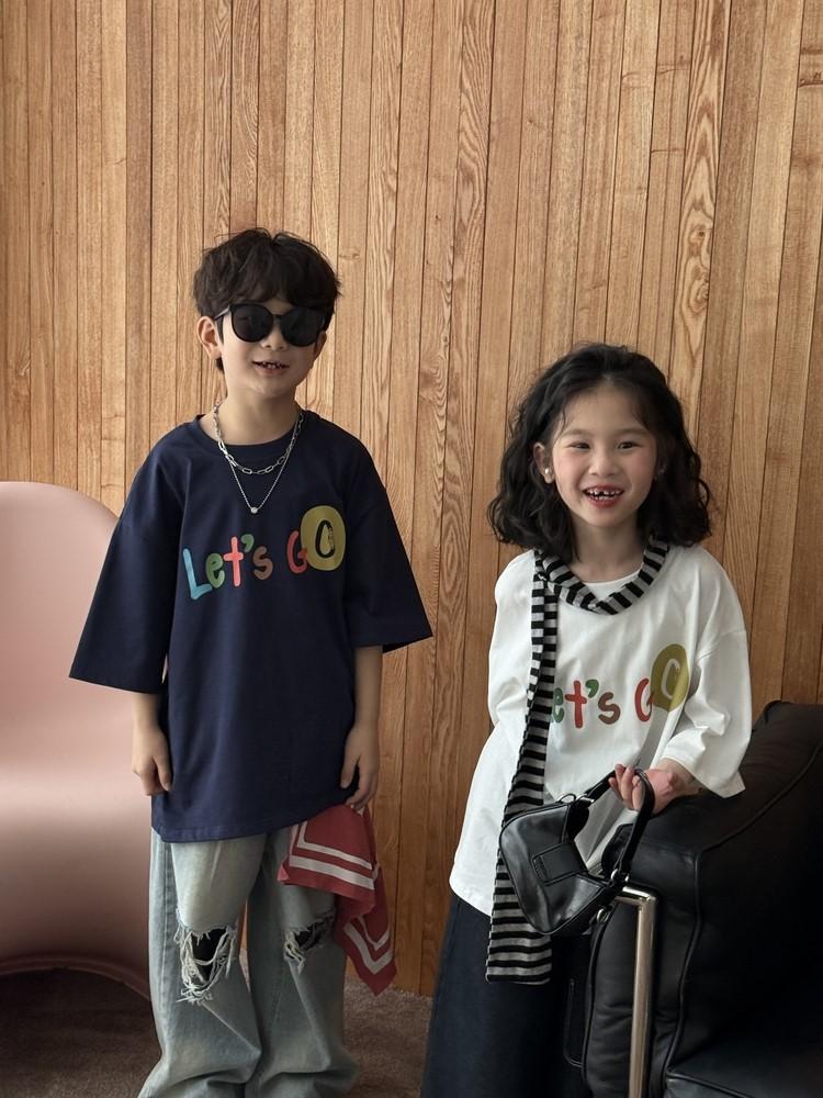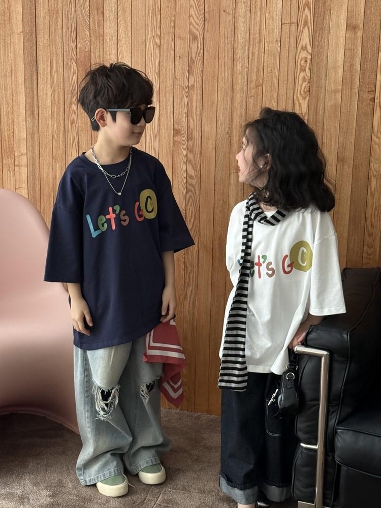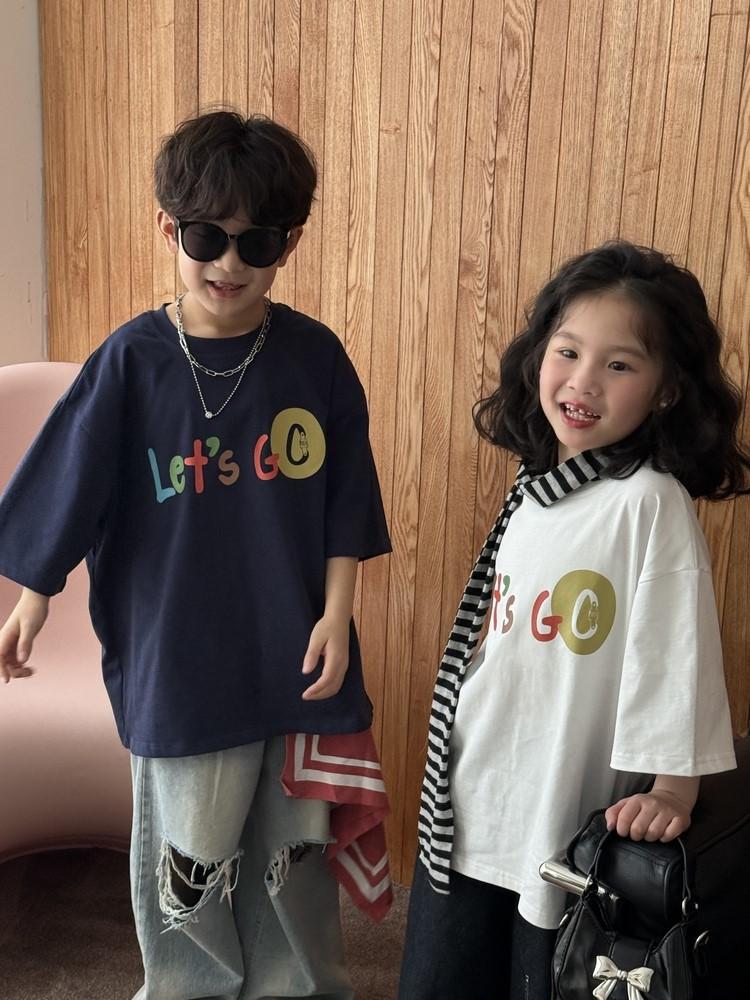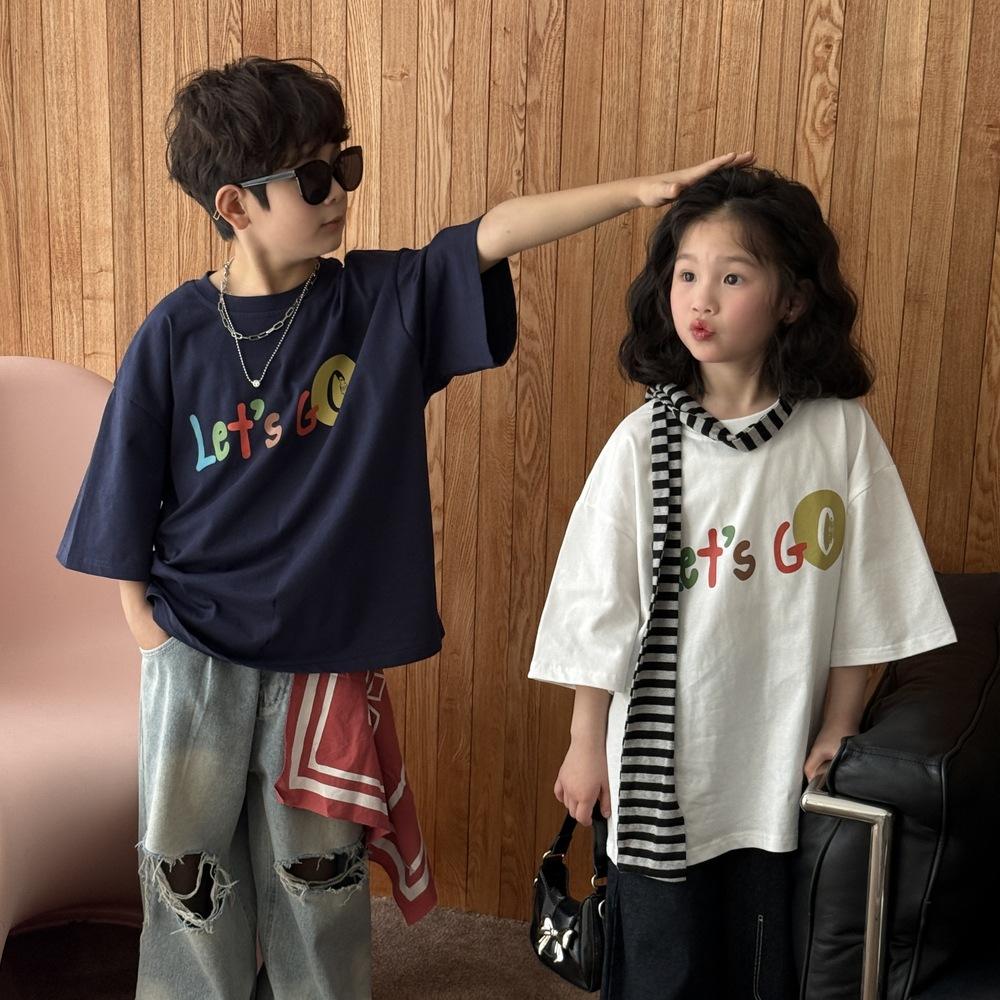 Camiseta para niños, primavera 2025, para niños y niñas, estilo coreano, con estampado de letras, manga corta, cuello redondo, informal