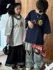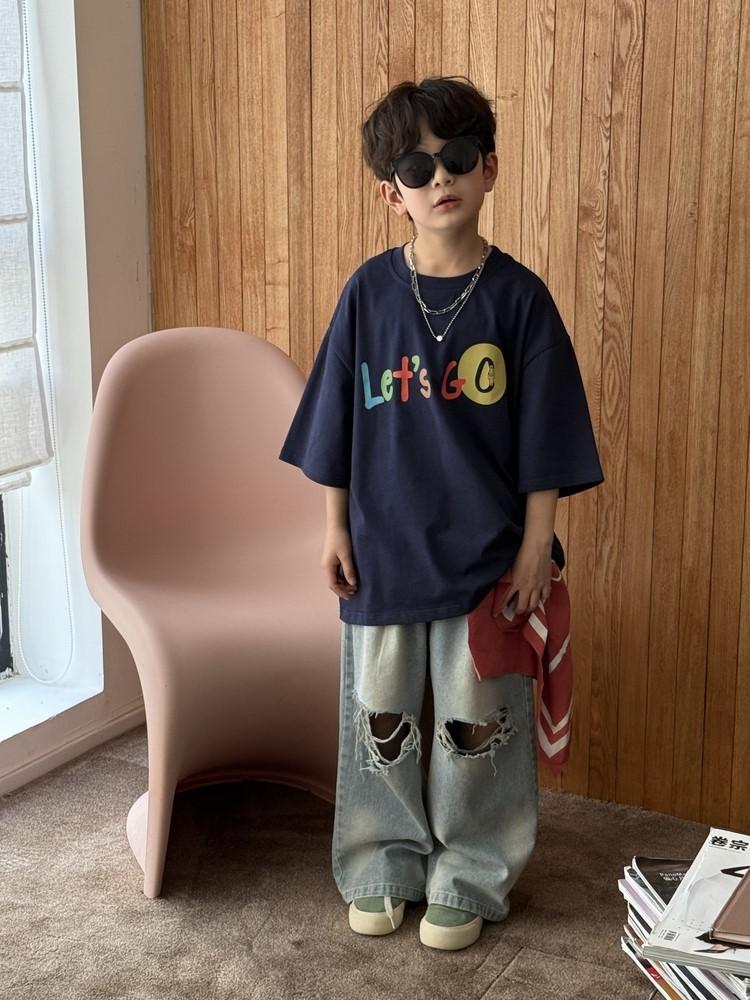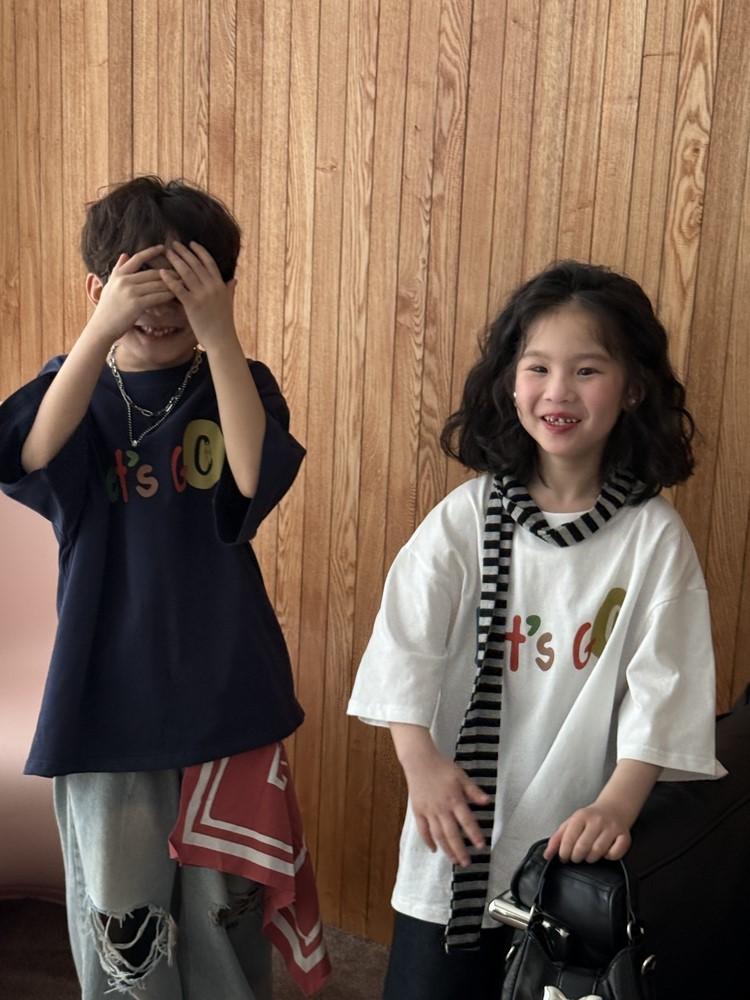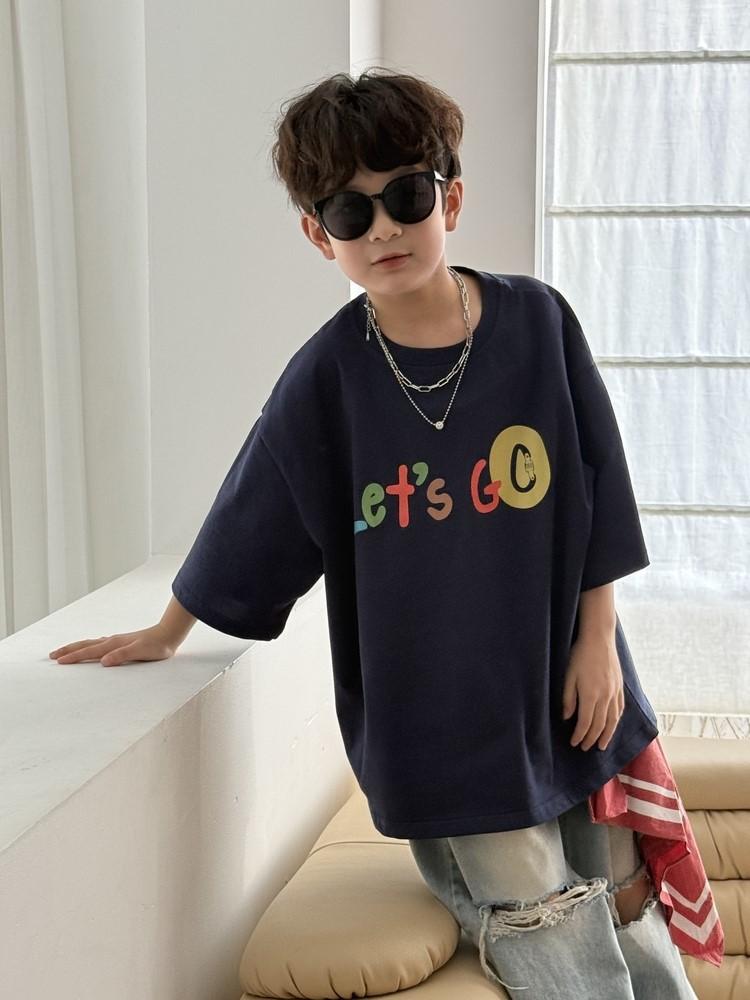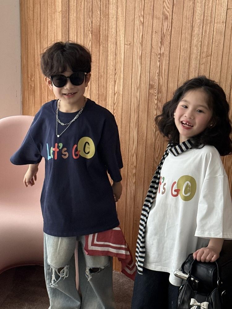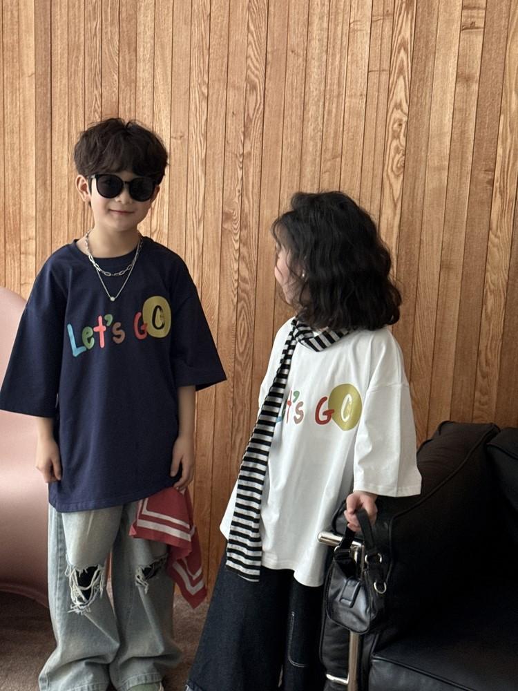 Camiseta para niños, primavera 2025, para niños y niñas, estilo coreano, con estampado de letras, manga corta, cuello redondo, informal
