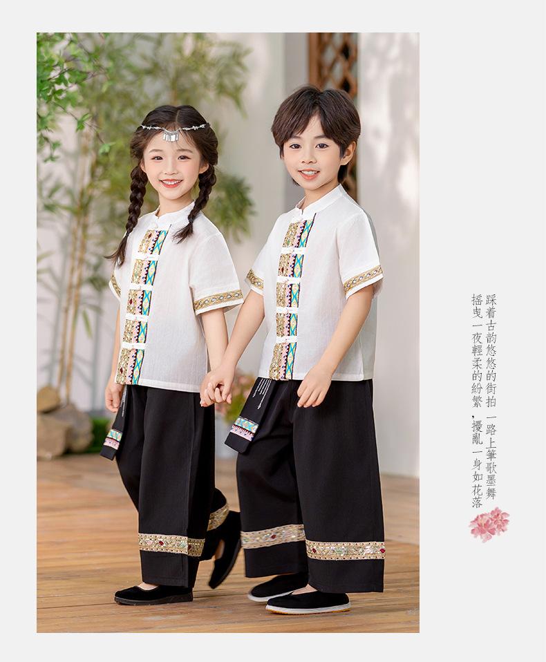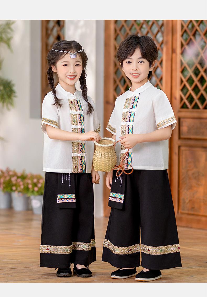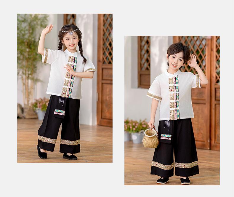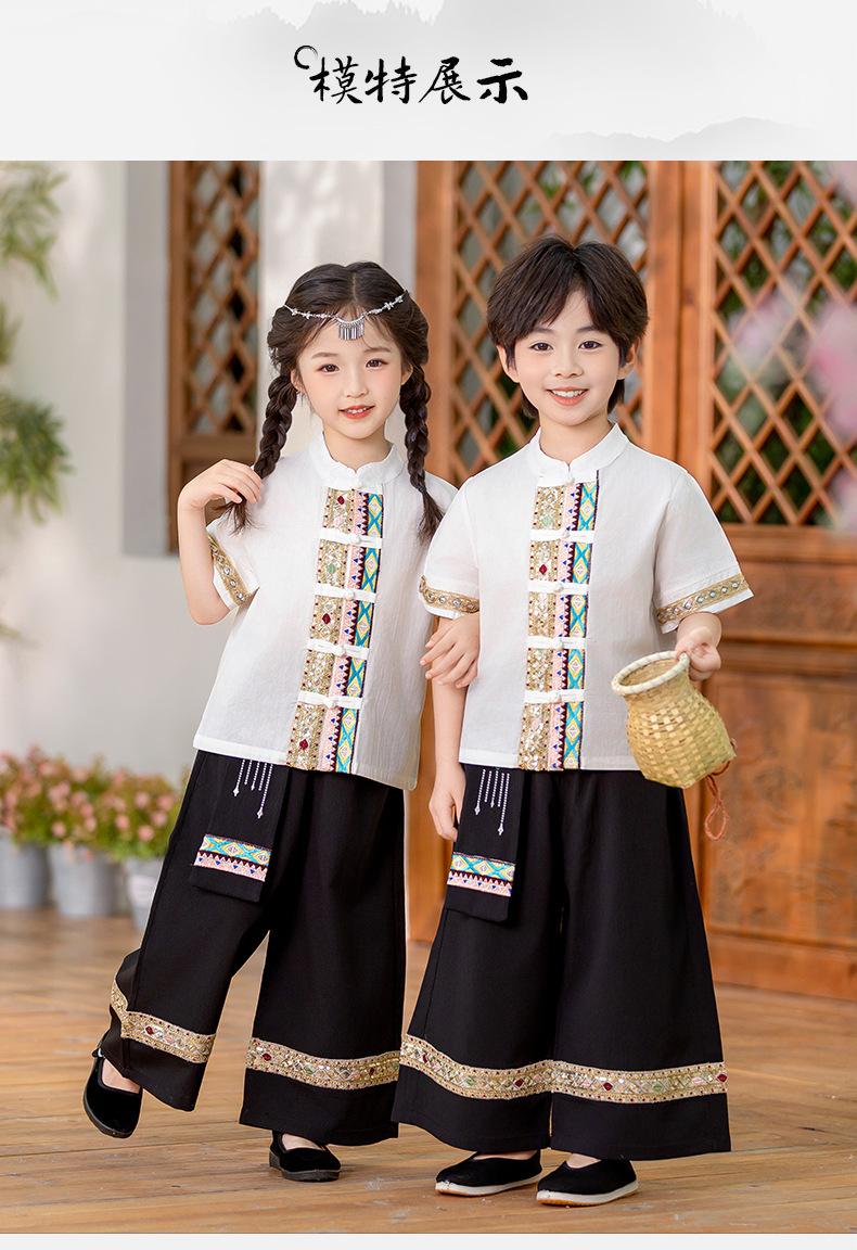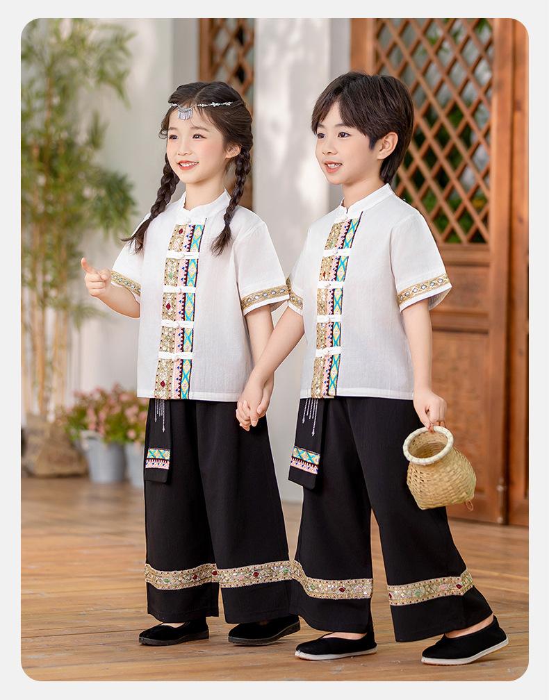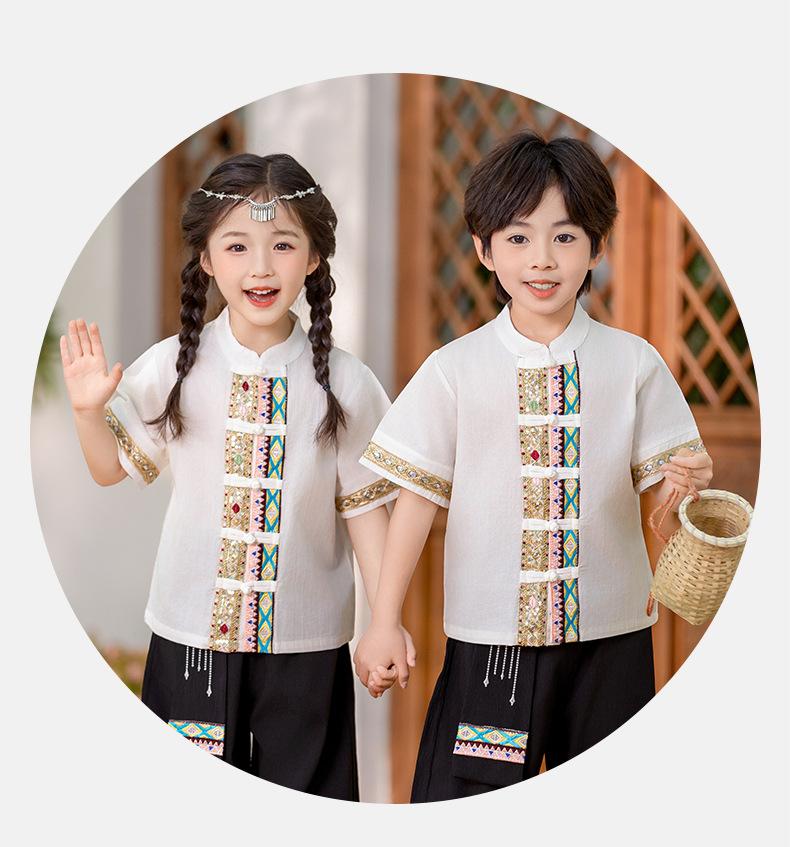 Traje Guangxi Zhuang para hombre y mujer ropa infantil Trajes étnicos del 3 de marzo Traje Tang chino nuevo de manga corta para niños traje de dos piezas