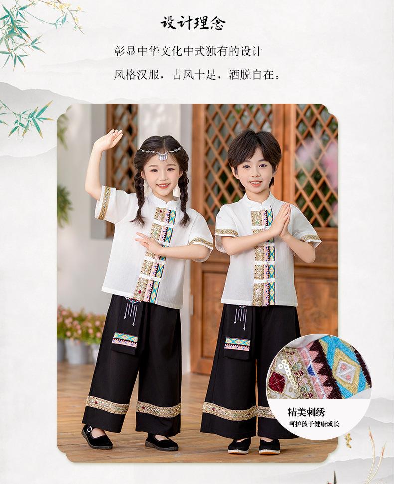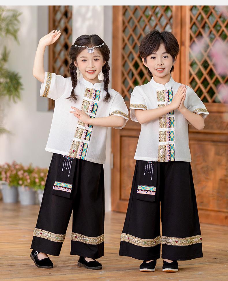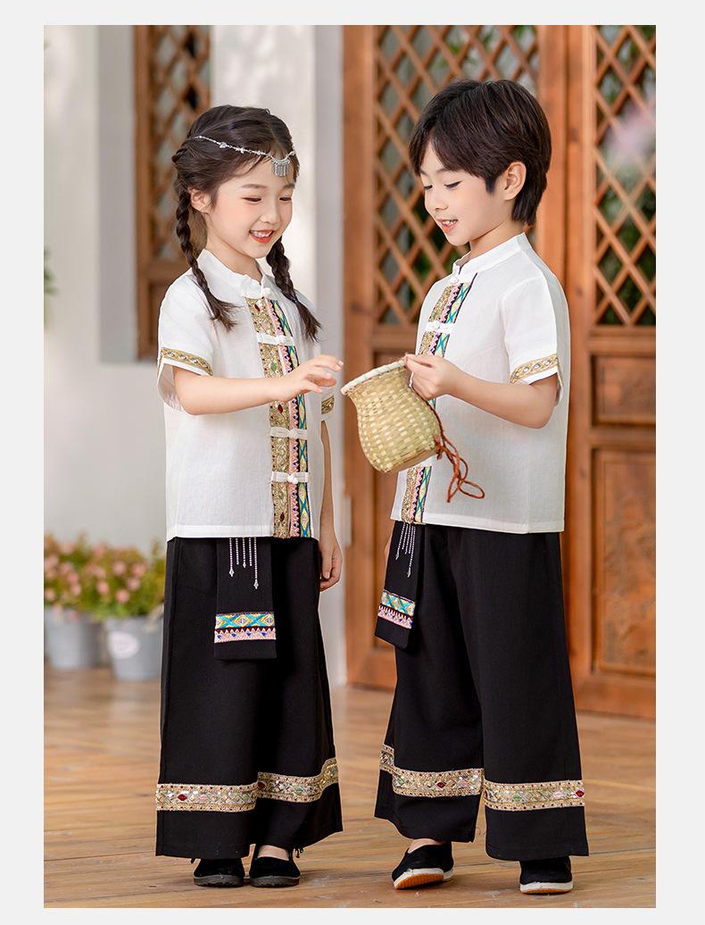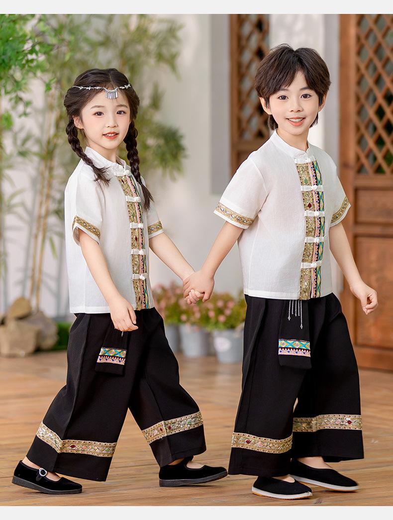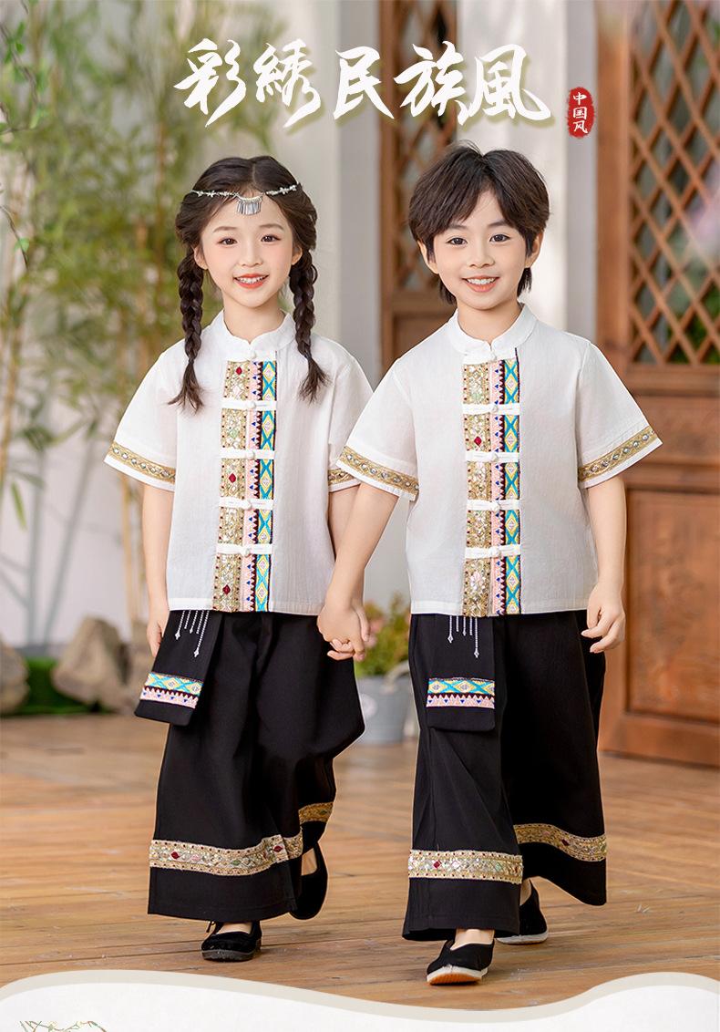 Traje Guangxi Zhuang para hombre y mujer ropa infantil Trajes étnicos del 3 de marzo Traje Tang chino nuevo de manga corta para niños traje de dos piezas