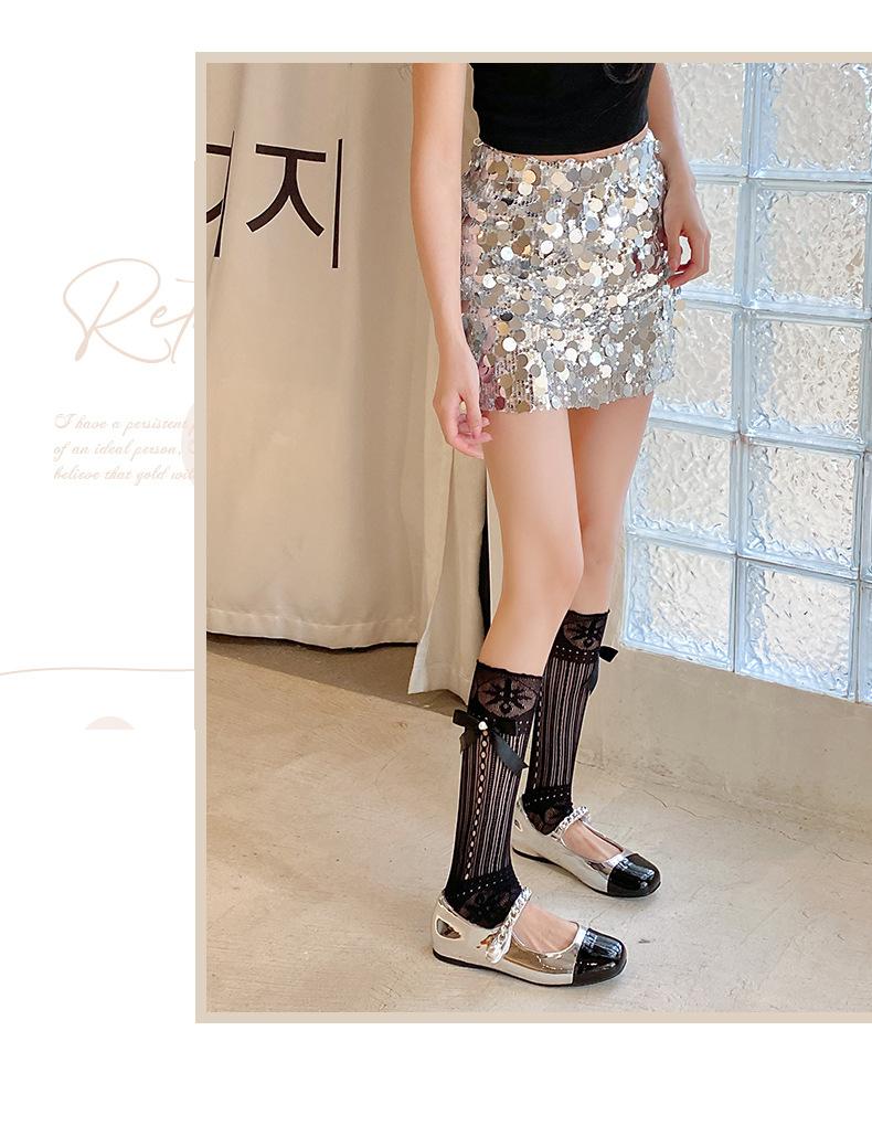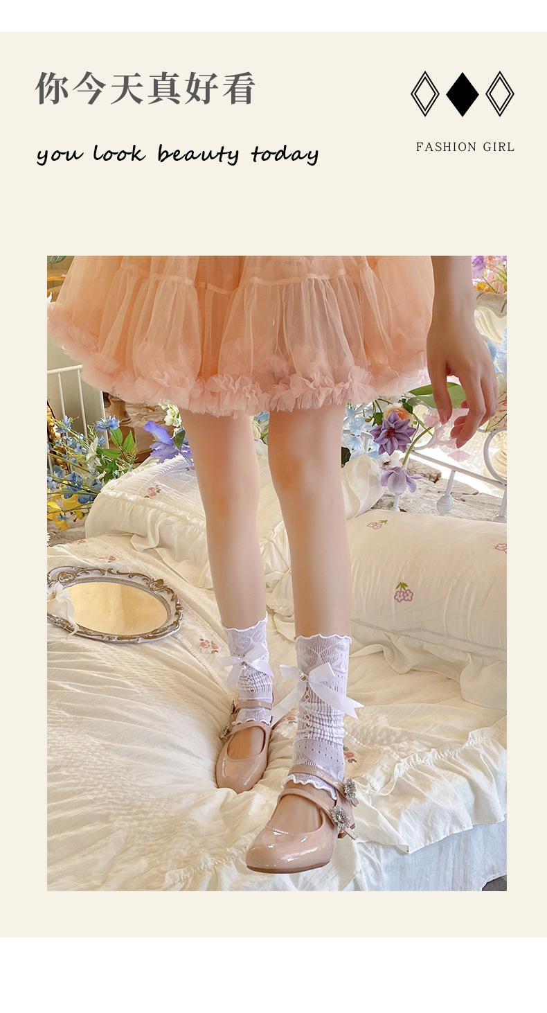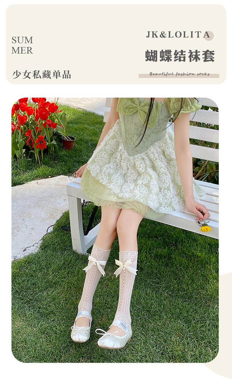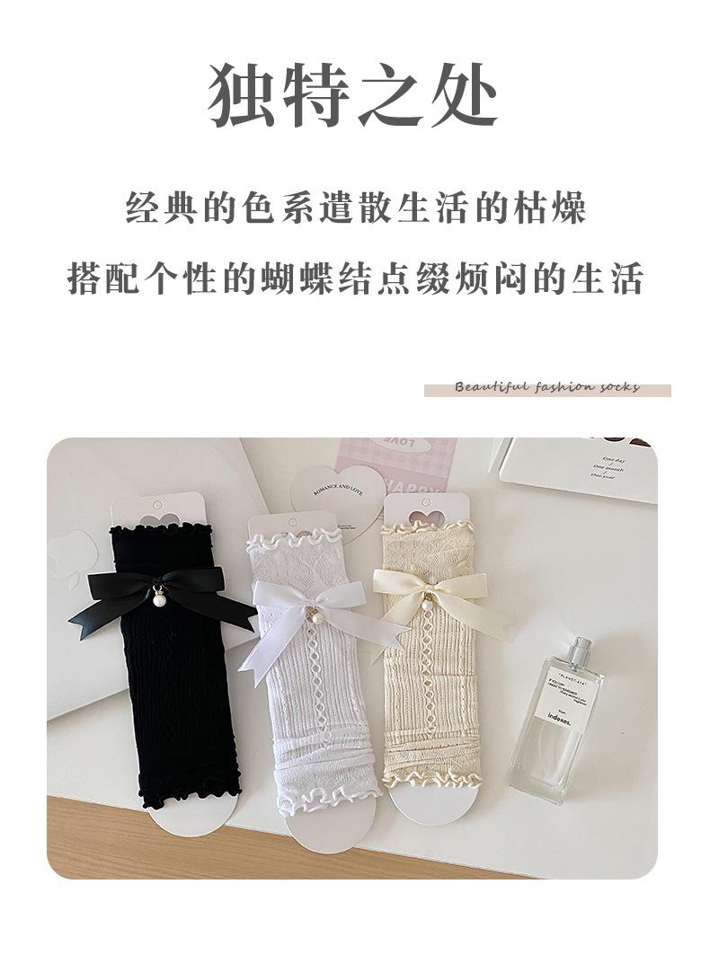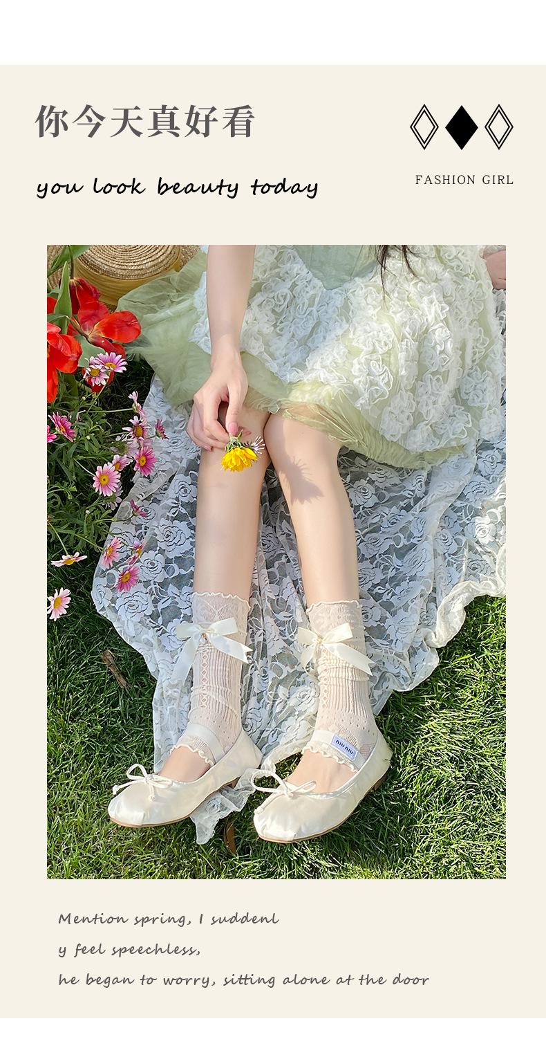 Calcetines de Encaje con Lazo Lolita Delgados Japoneses Huecos Blancos Dulces de Montón Perla Ballet Manga de Mano Manga