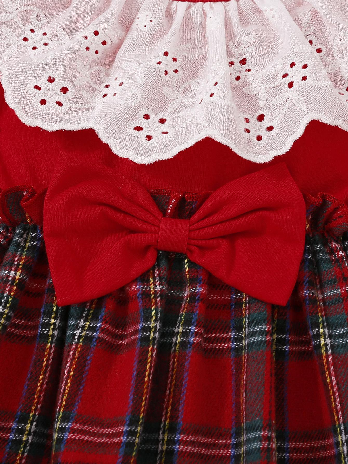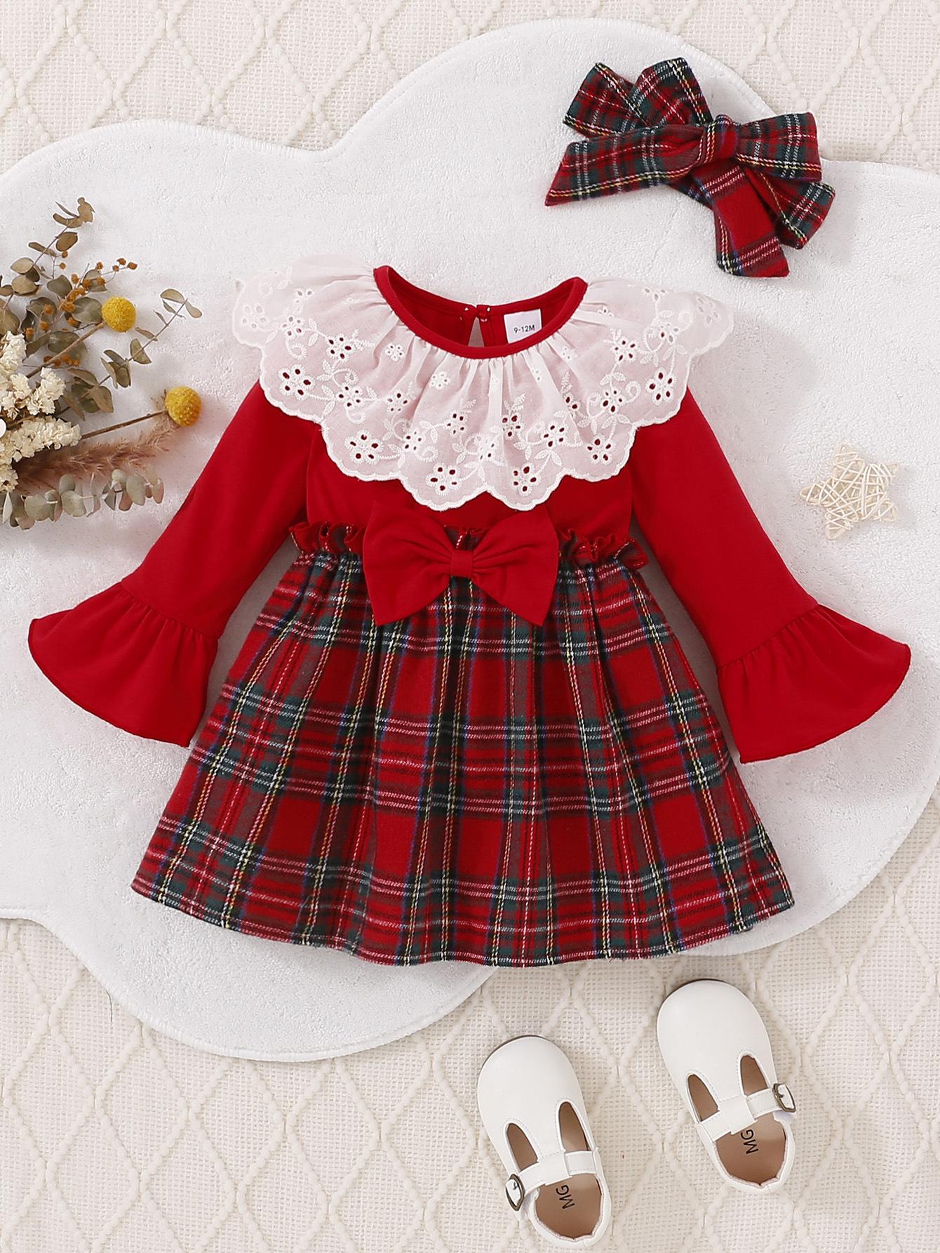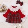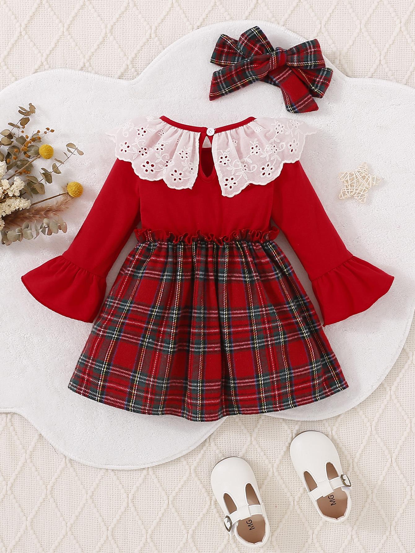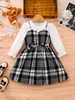 Ropa infantil de primavera y otoño. Vestido con lazo a cuadros para niñas. Bufanda de colores a juego.