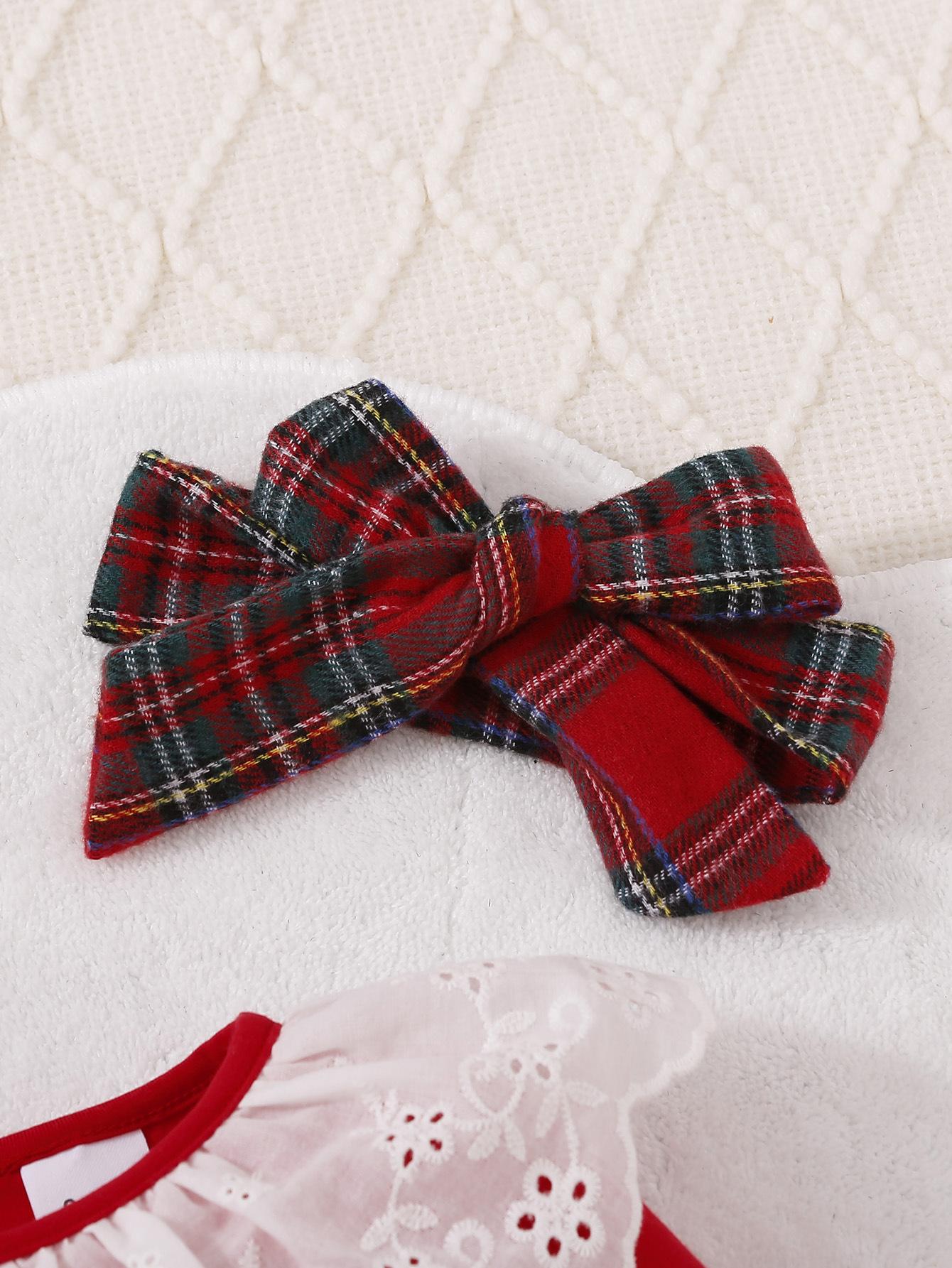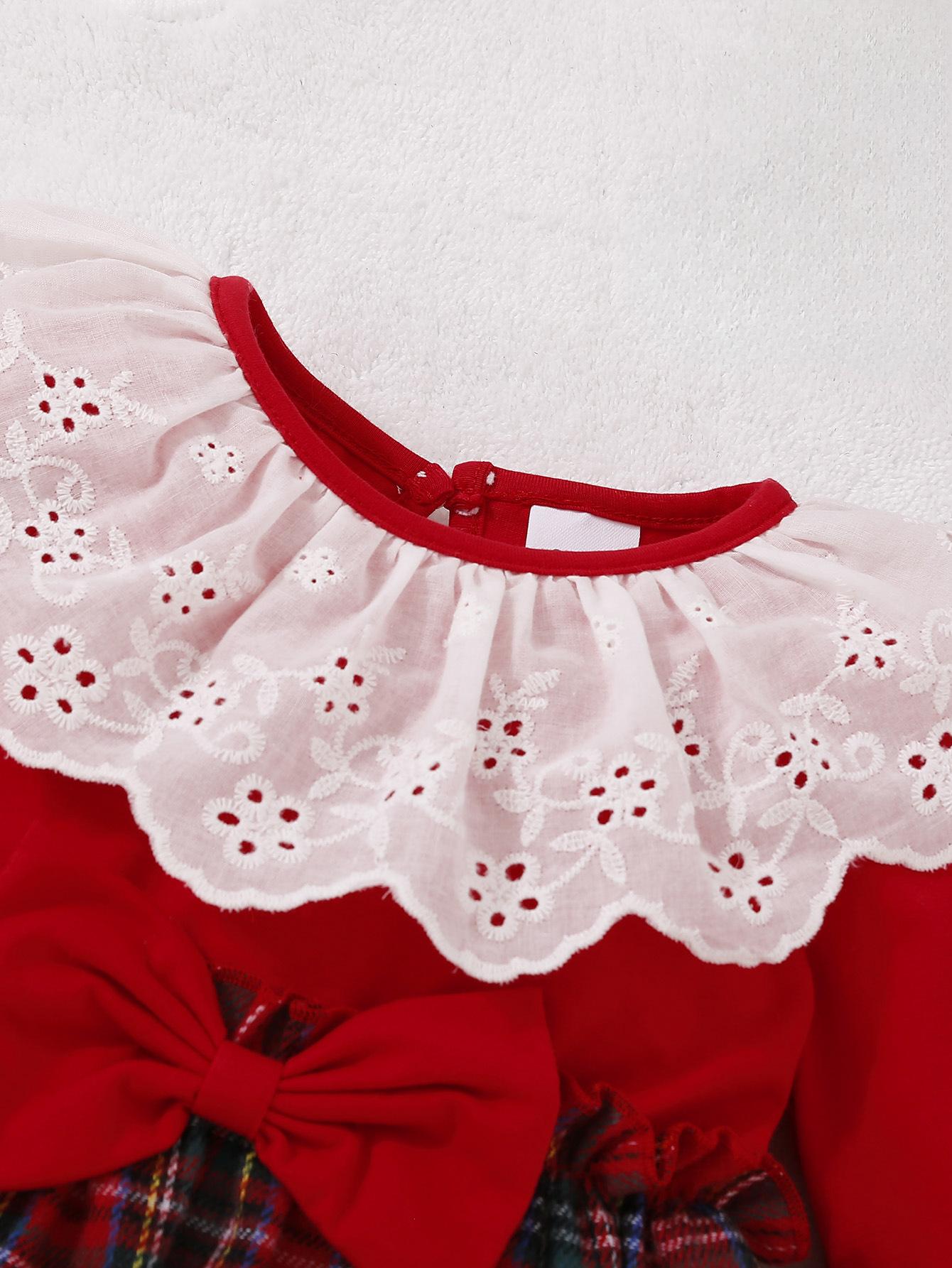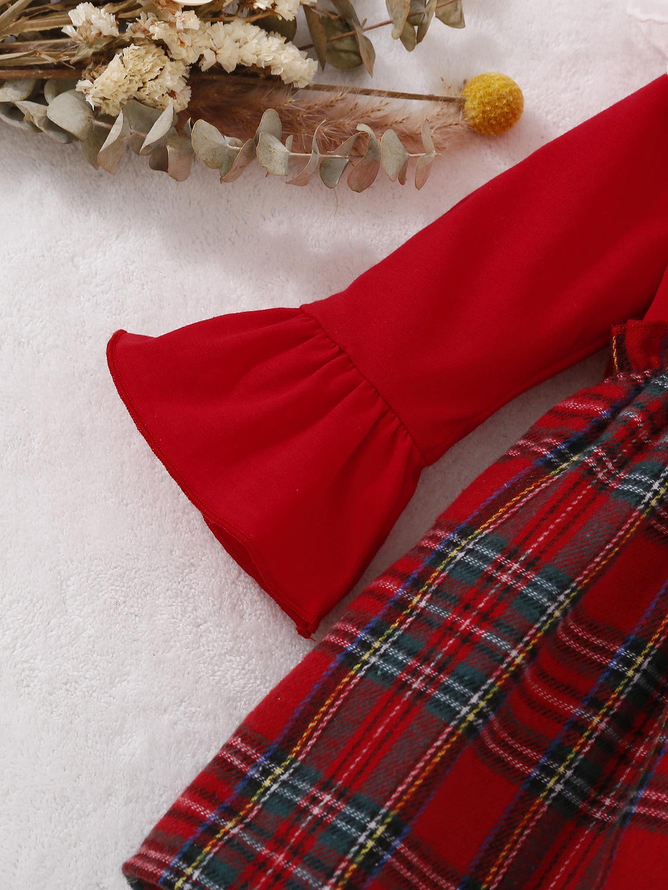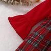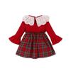 Ropa infantil de primavera y otoño. Vestido con lazo a cuadros para niñas. Bufanda de colores a juego.