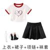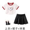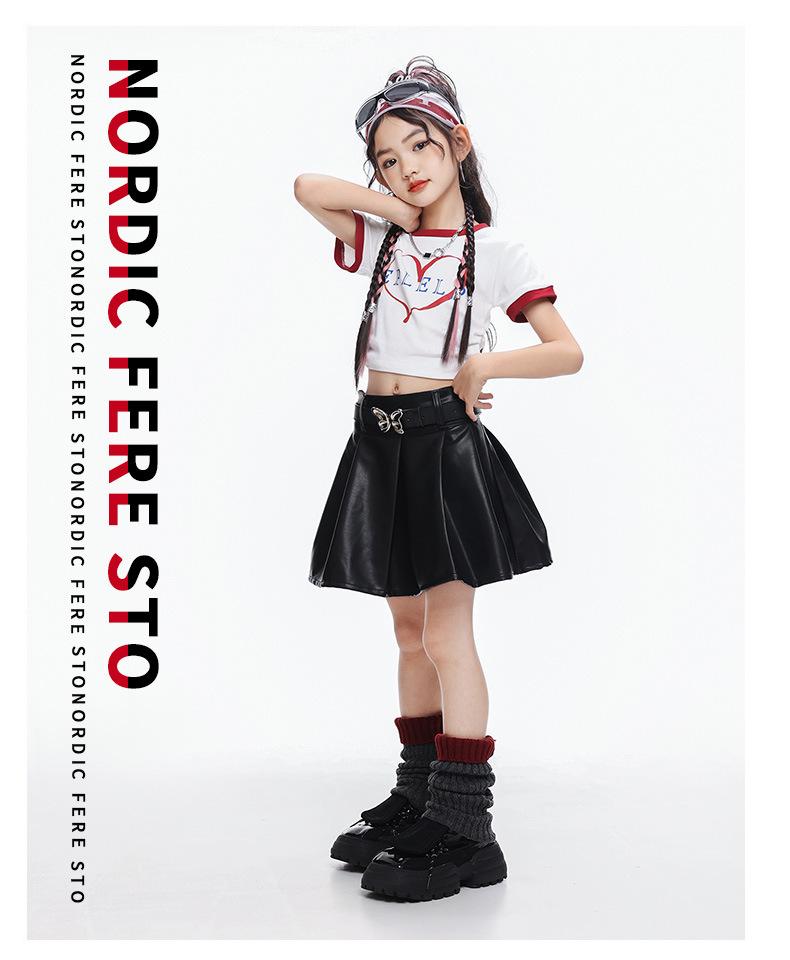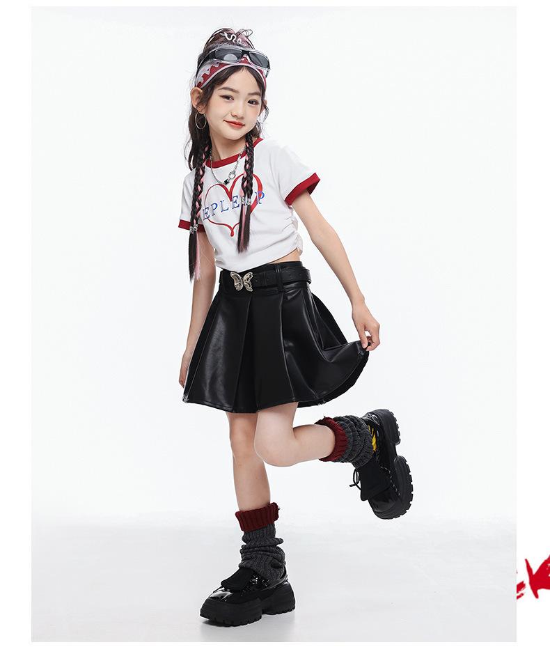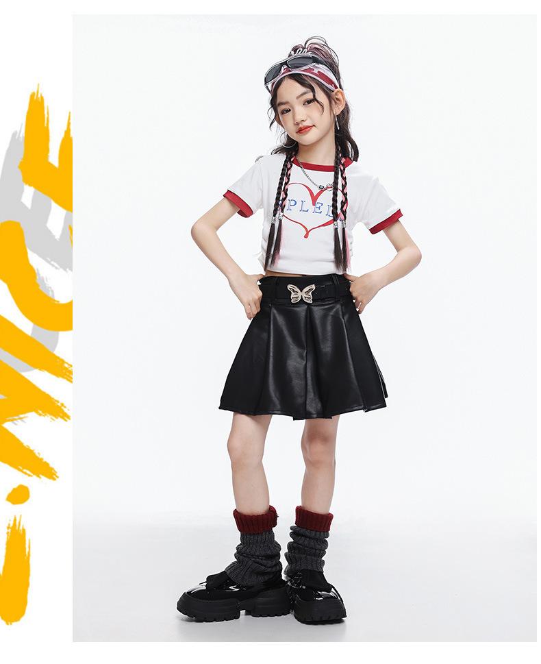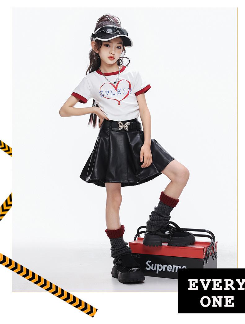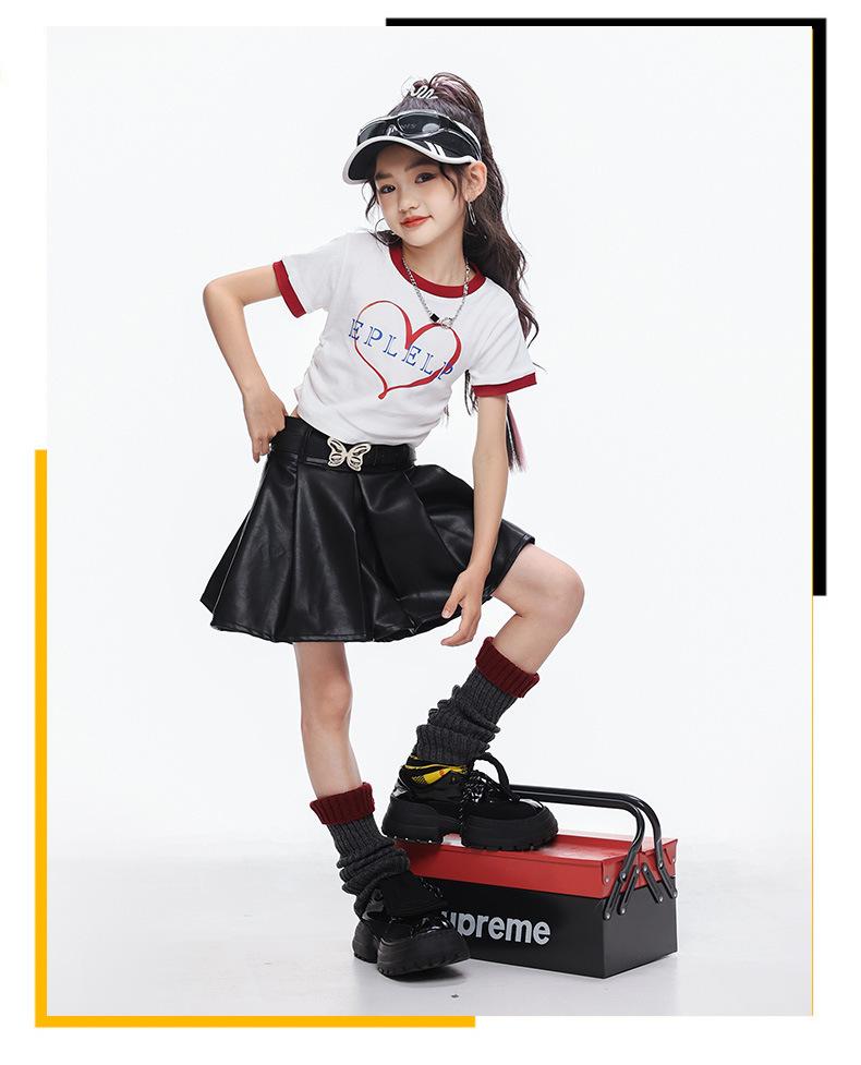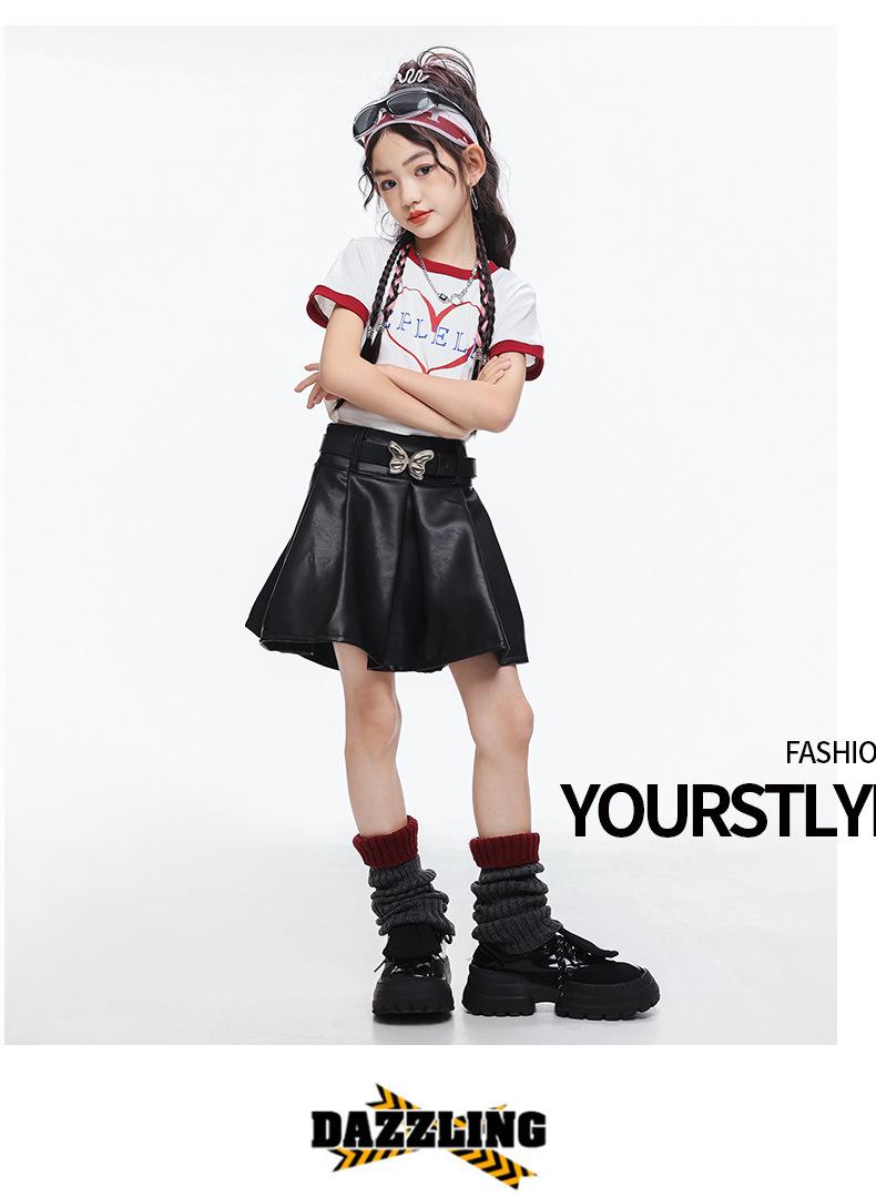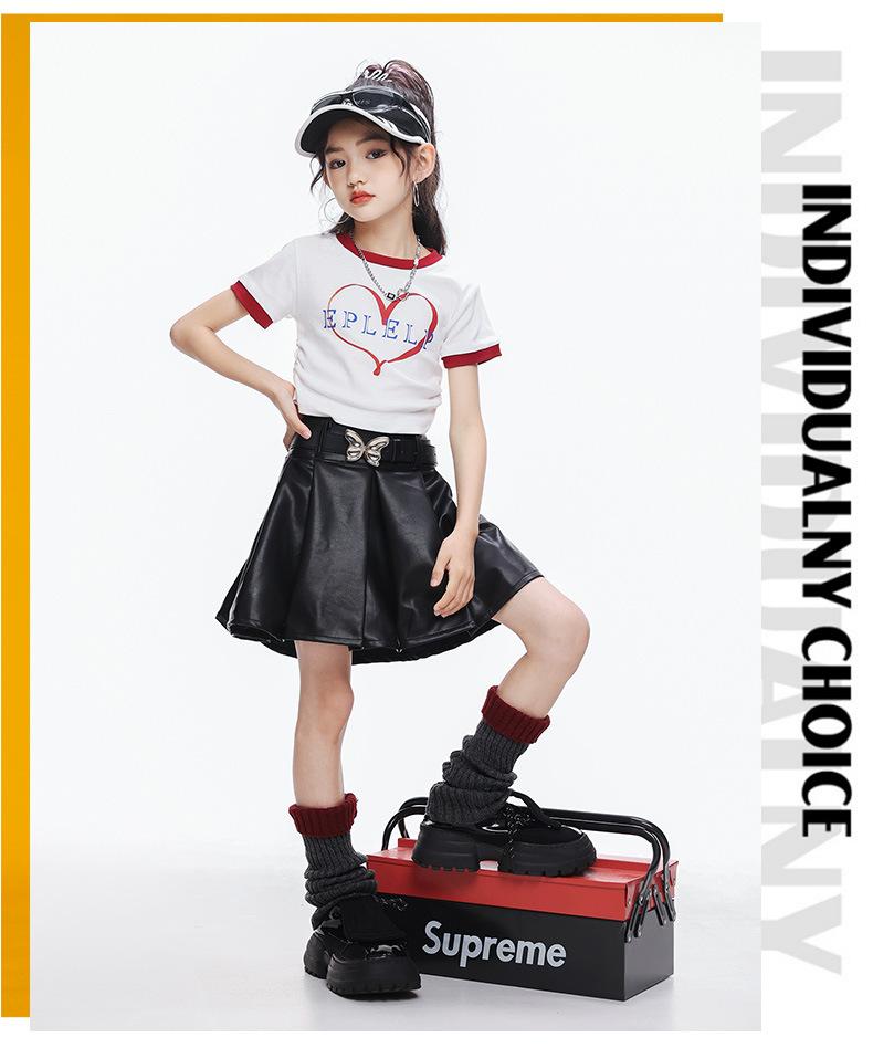 159 white EP short sleeve 266 black leather skirt wine red gray socks