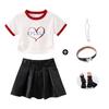 159 white EP short sleeve 266 black leather skirt black butterfly belt necklace wine red gray socks