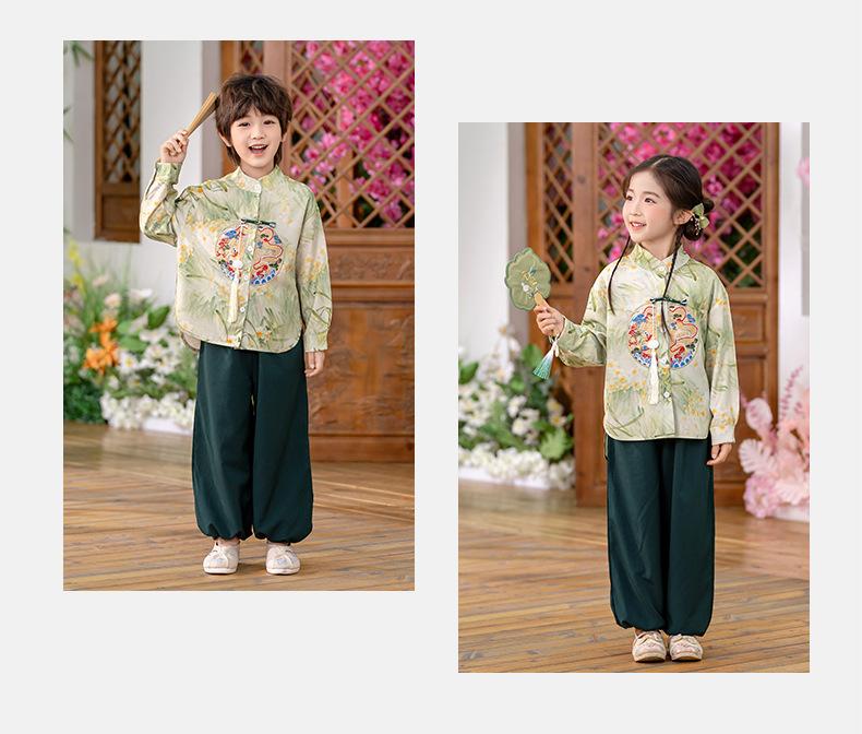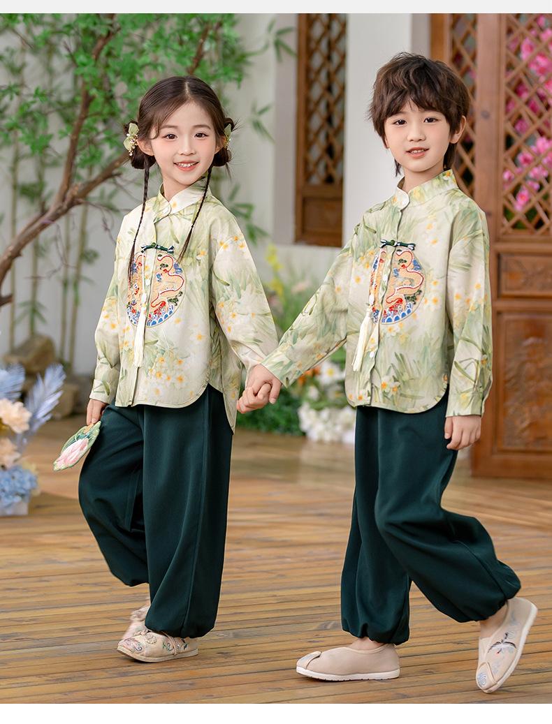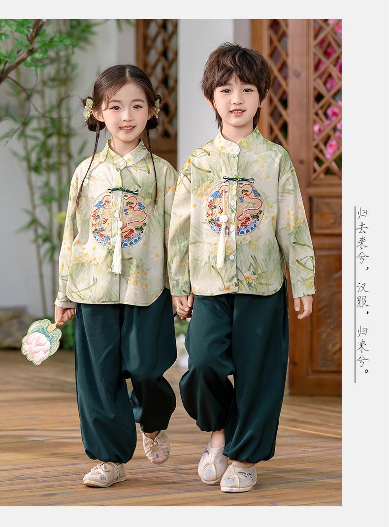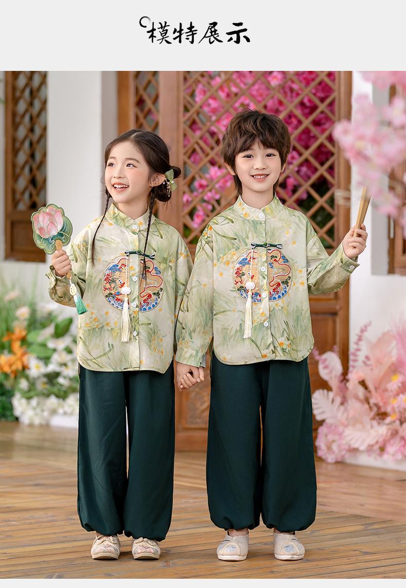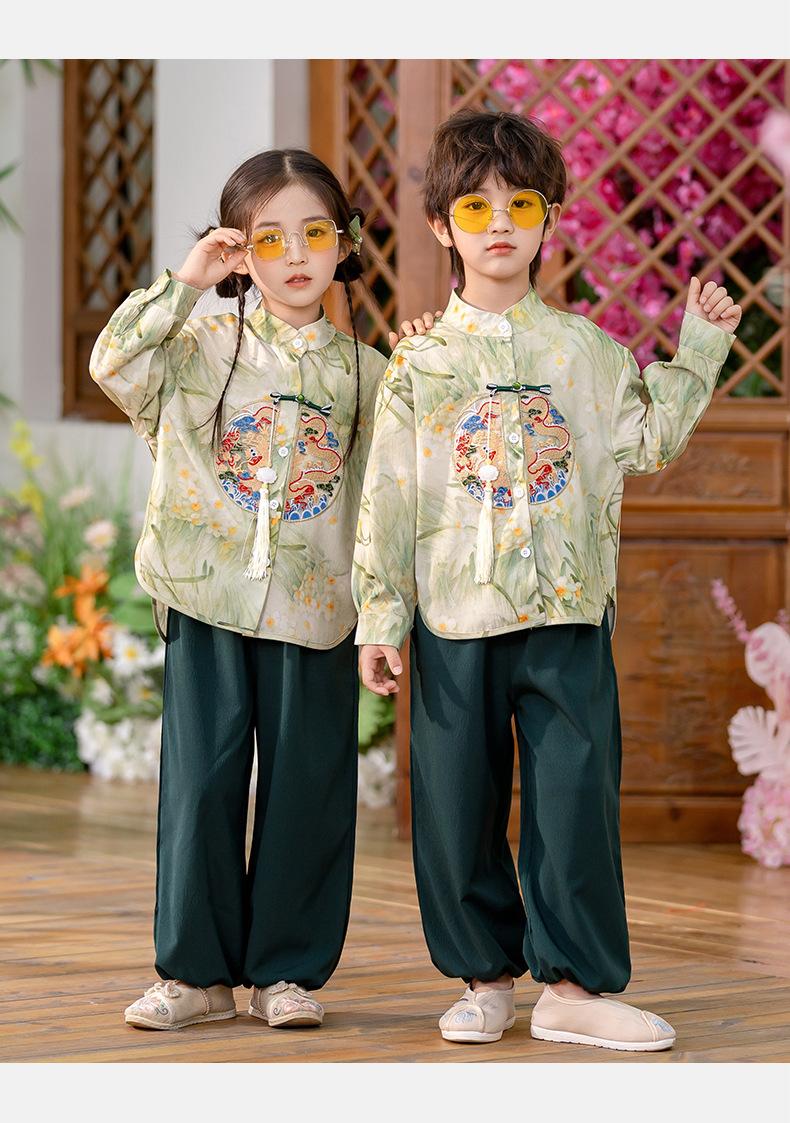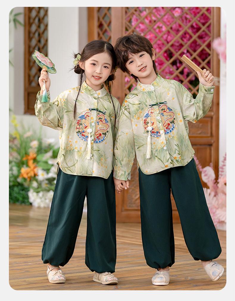 Nuevo jardín de infancia de estilo chino para niños y niñas. Coro de recitación de poesía de primavera y otoño. Traje Tang de estilo chino. Ropa de actuación para niños.