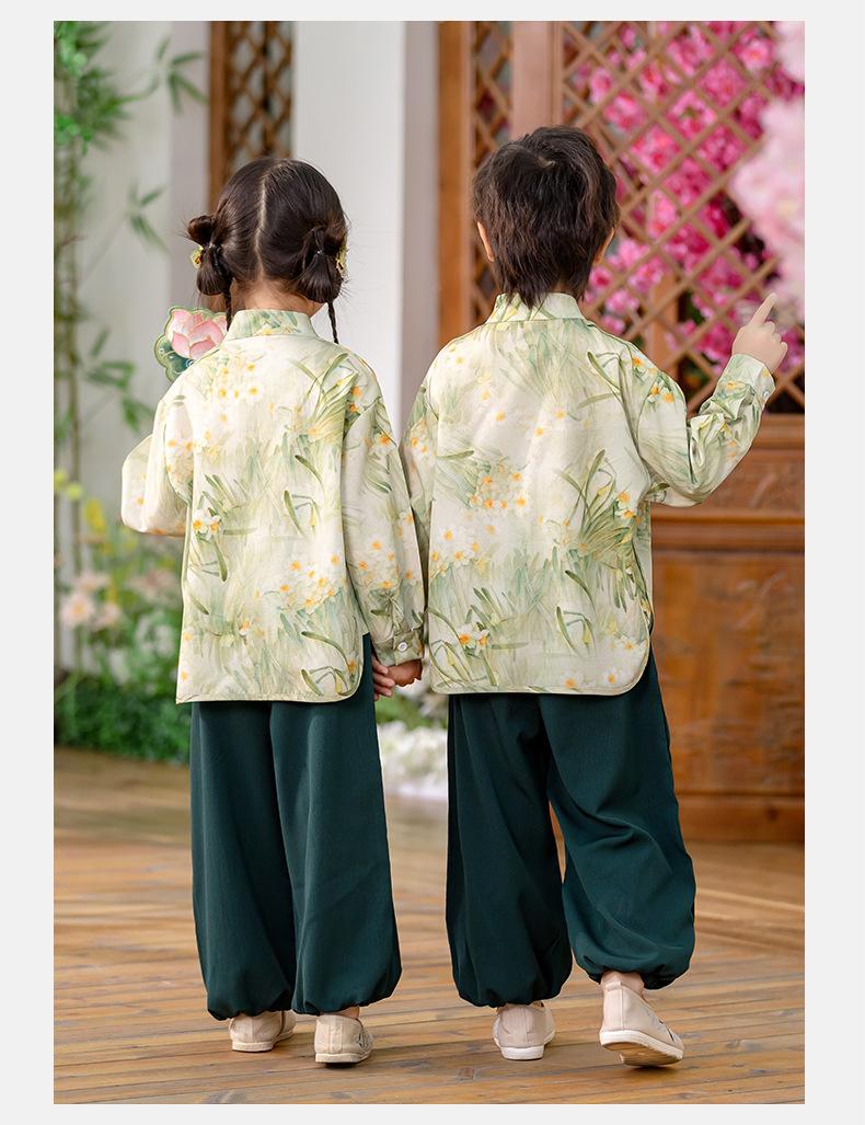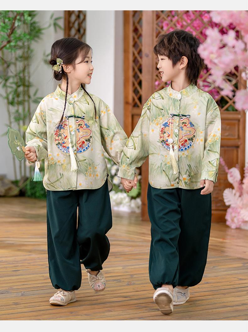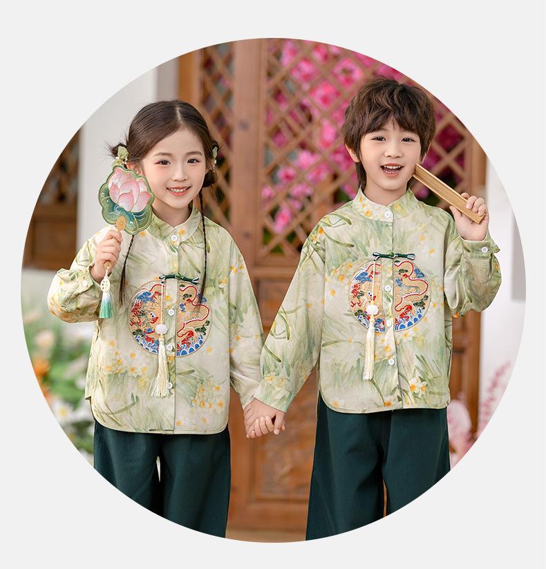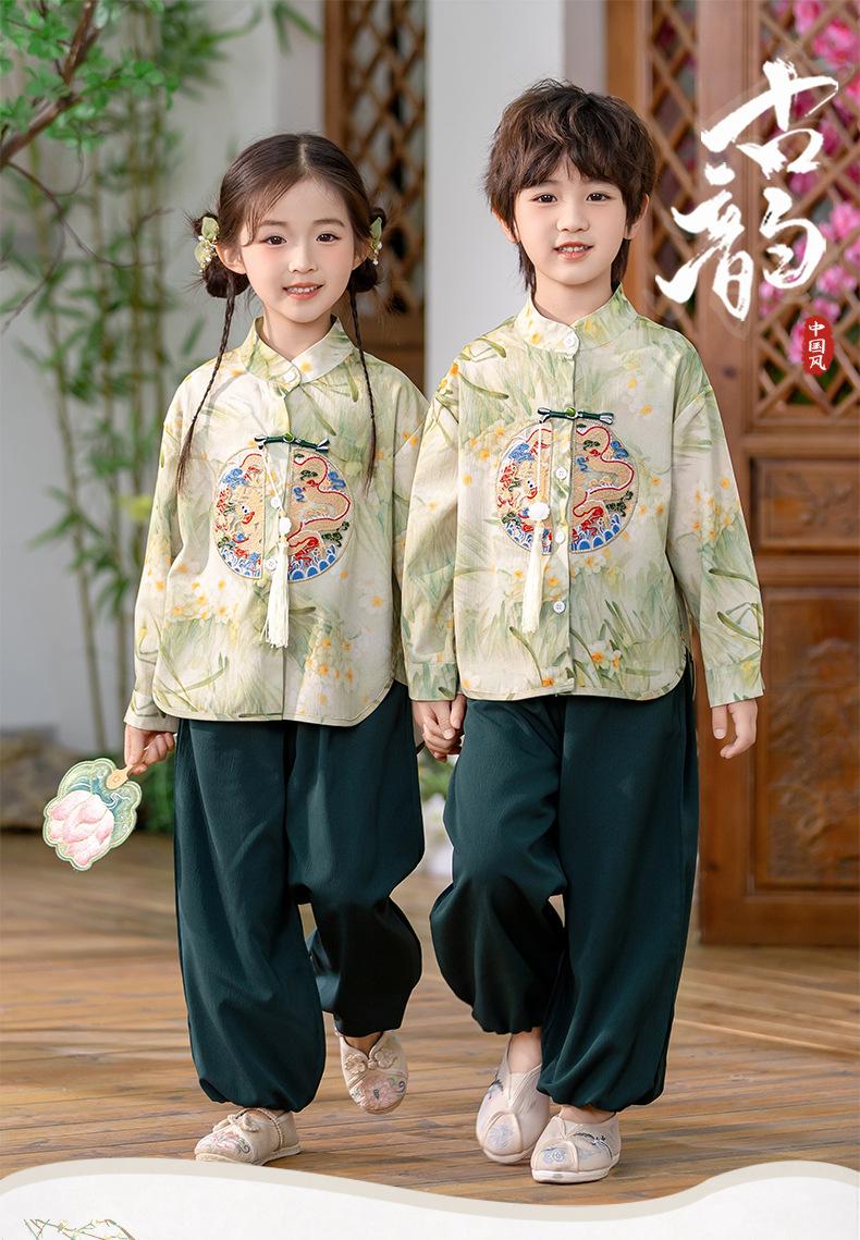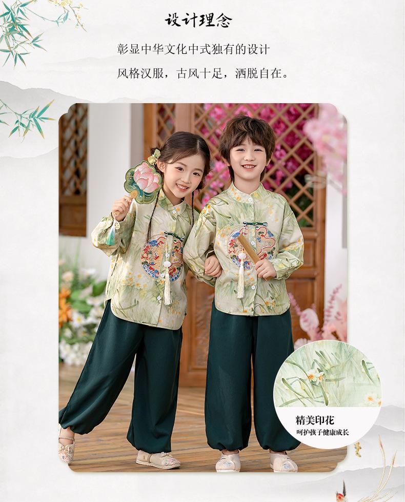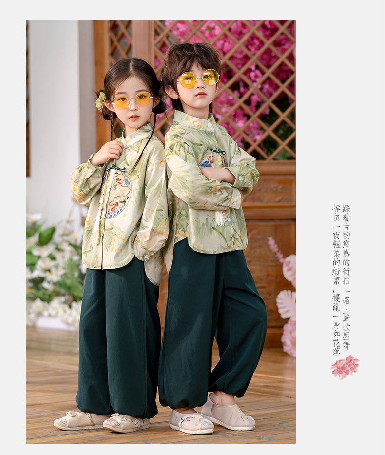 Nuevo jardín de infancia de estilo chino para niños y niñas. Coro de recitación de poesía de primavera y otoño. Traje Tang de estilo chino. Ropa de actuación para niños.