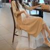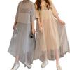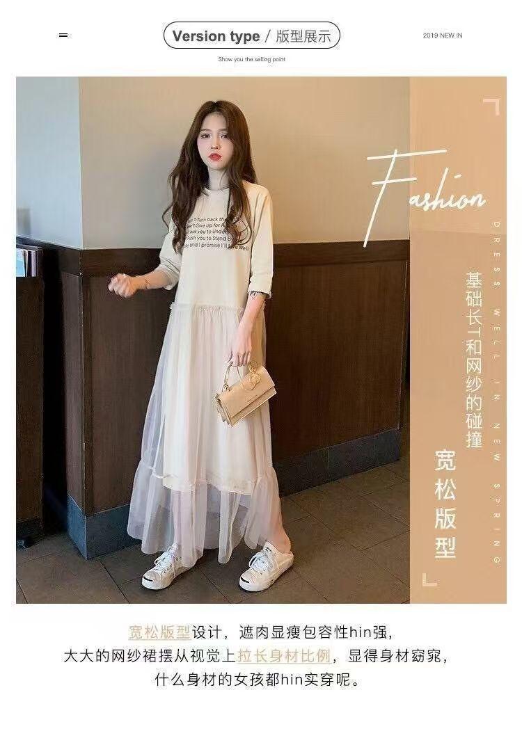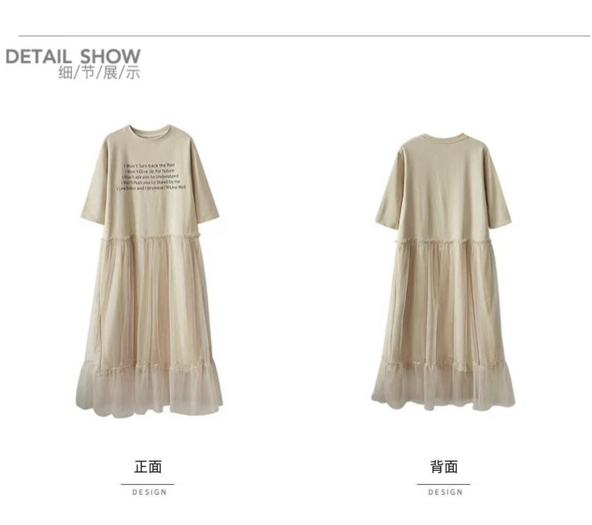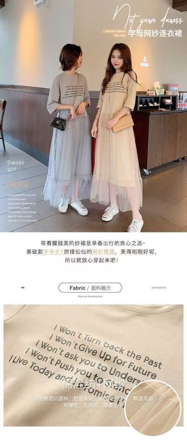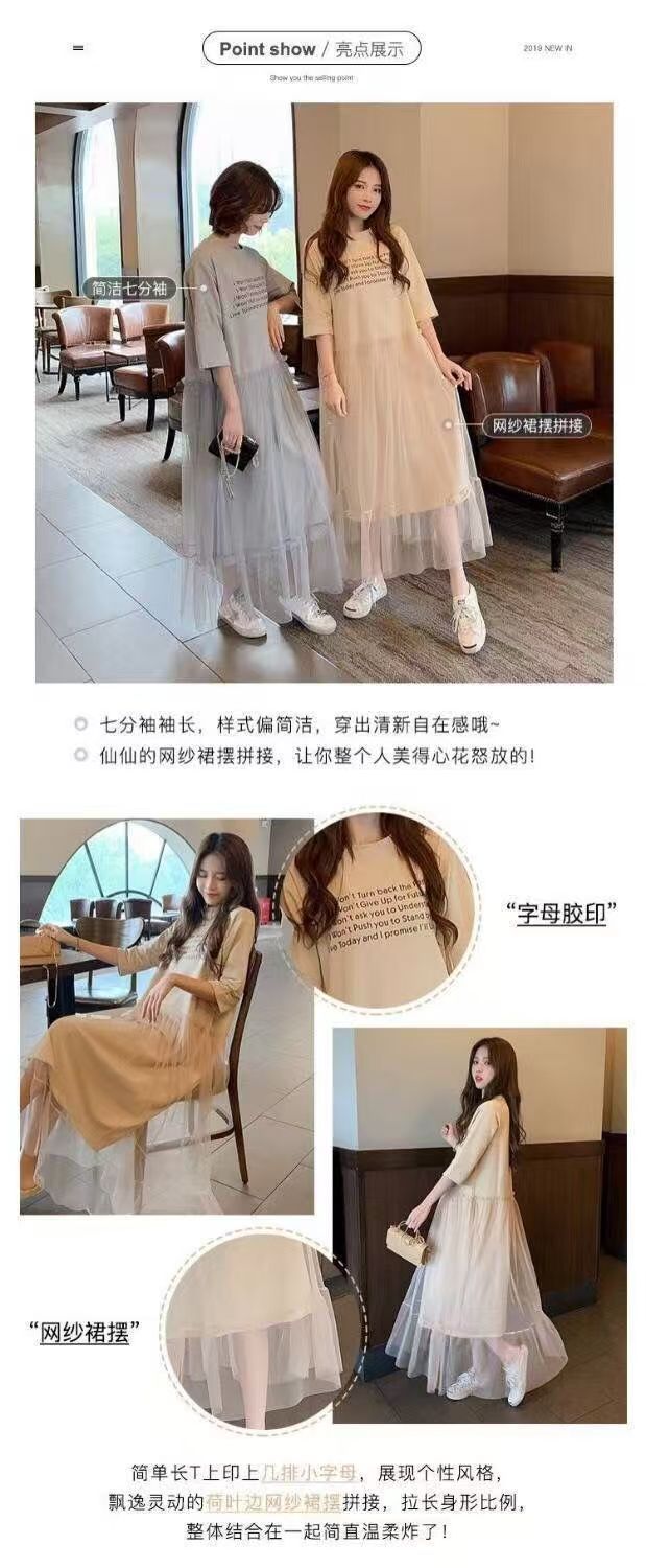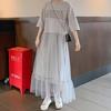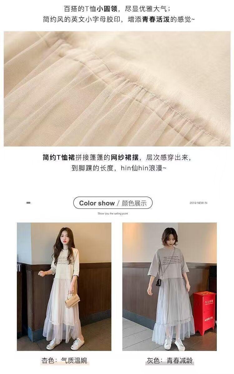 Cuhk niños verano nuevo femenino estilo coreano dulce cuello redondo estampado costuras de malla vestido largo para niña falso de dos piezas