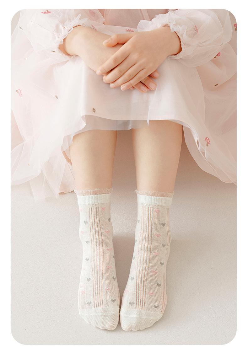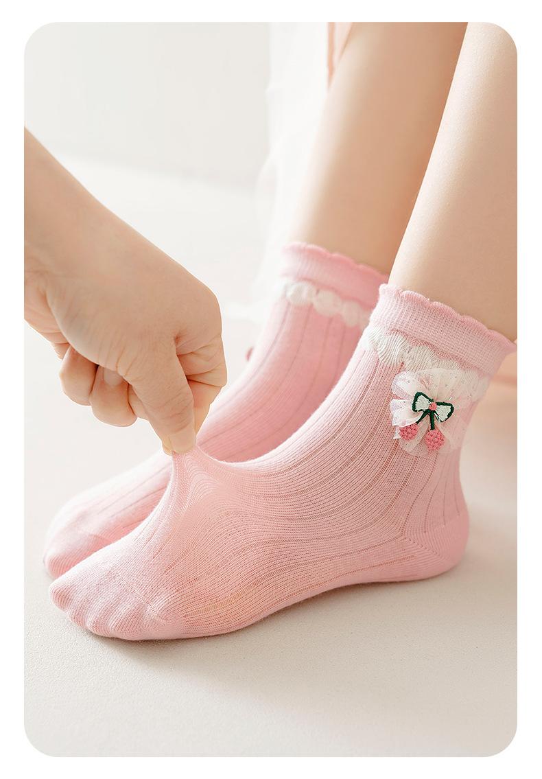 Calcetines para niños, primavera y verano, de malla fina, transpirables, con lazo, de princesa, con encaje suelto