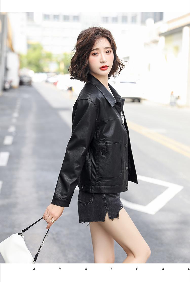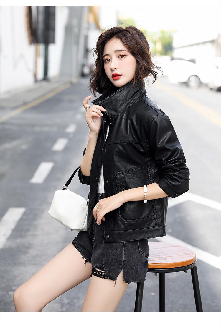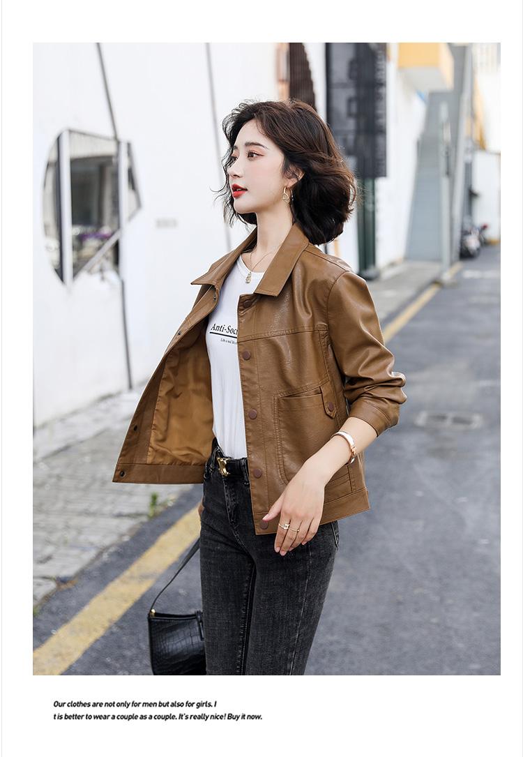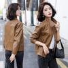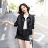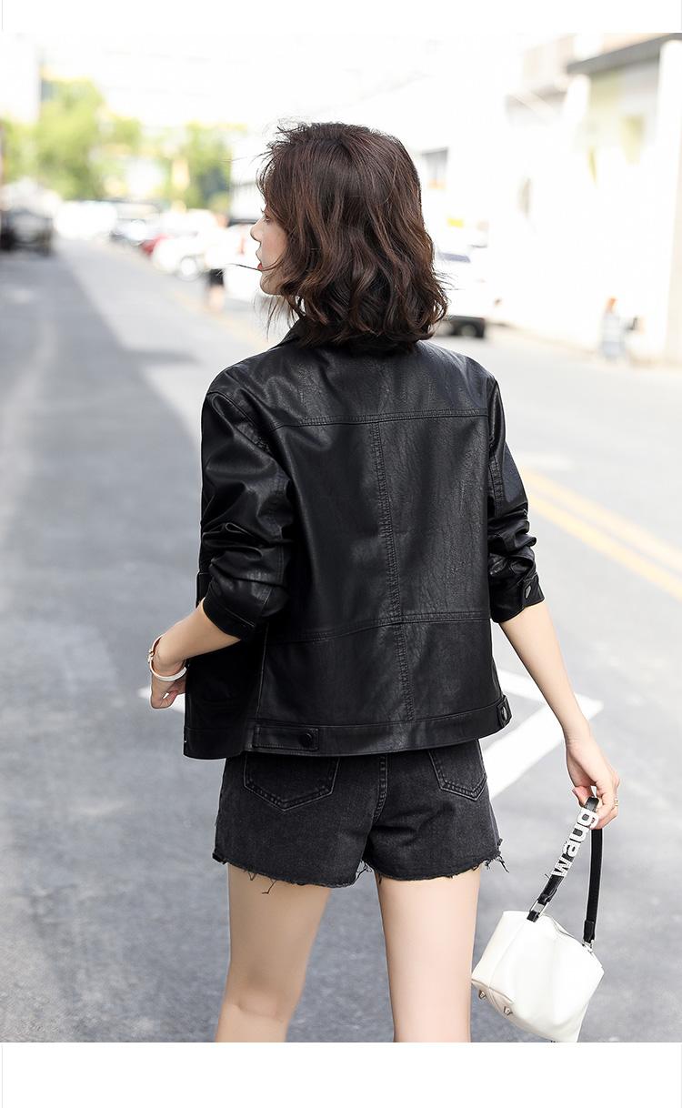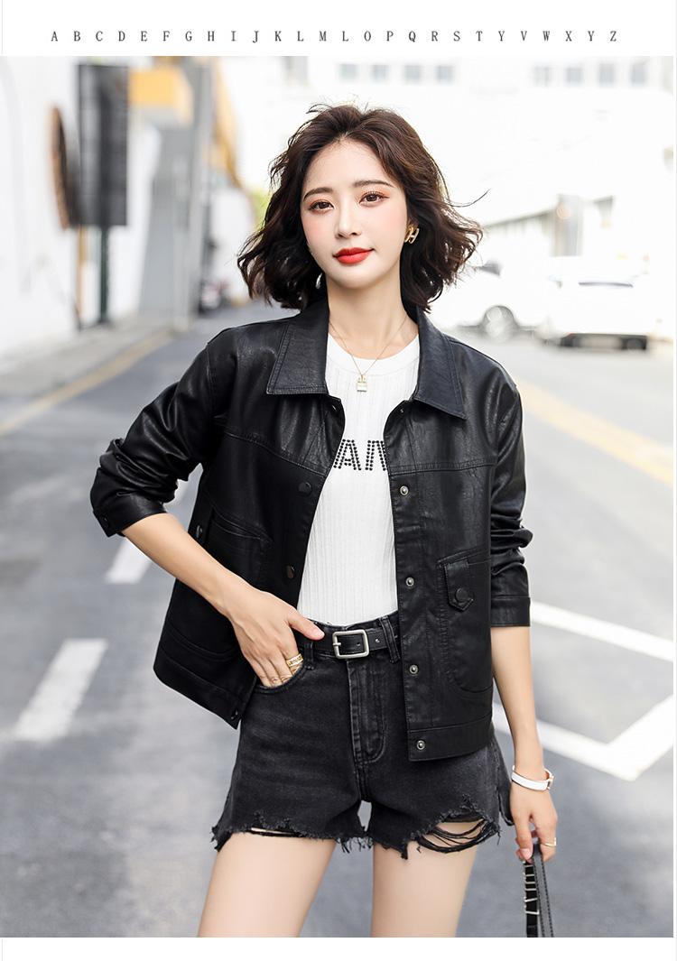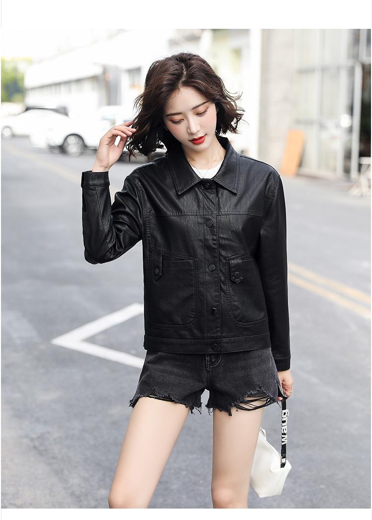 Abrigo de piel de oveja estilo coreano de moda primavera otoño e invierno para mujer, nuevo abrigo de cuero lavado adelgazante corto de cuero de motocicleta 2025