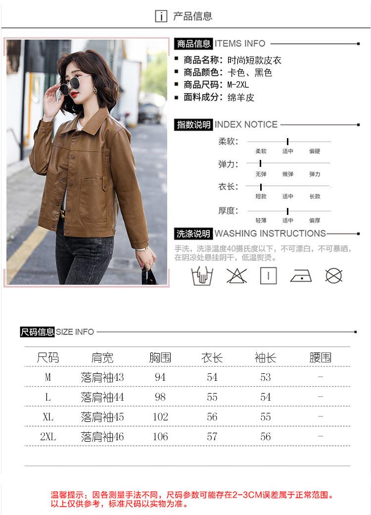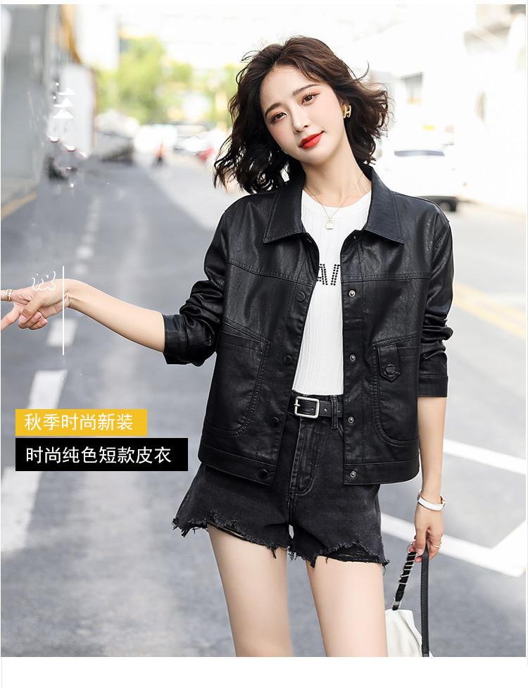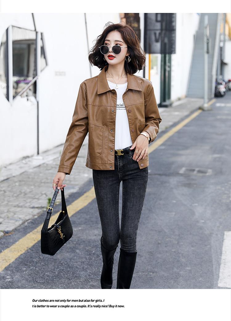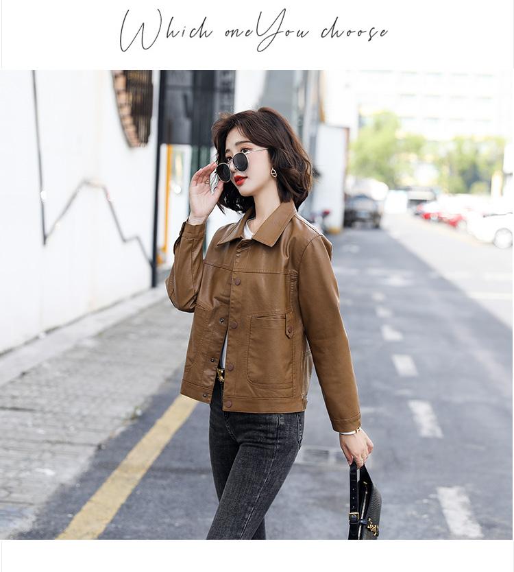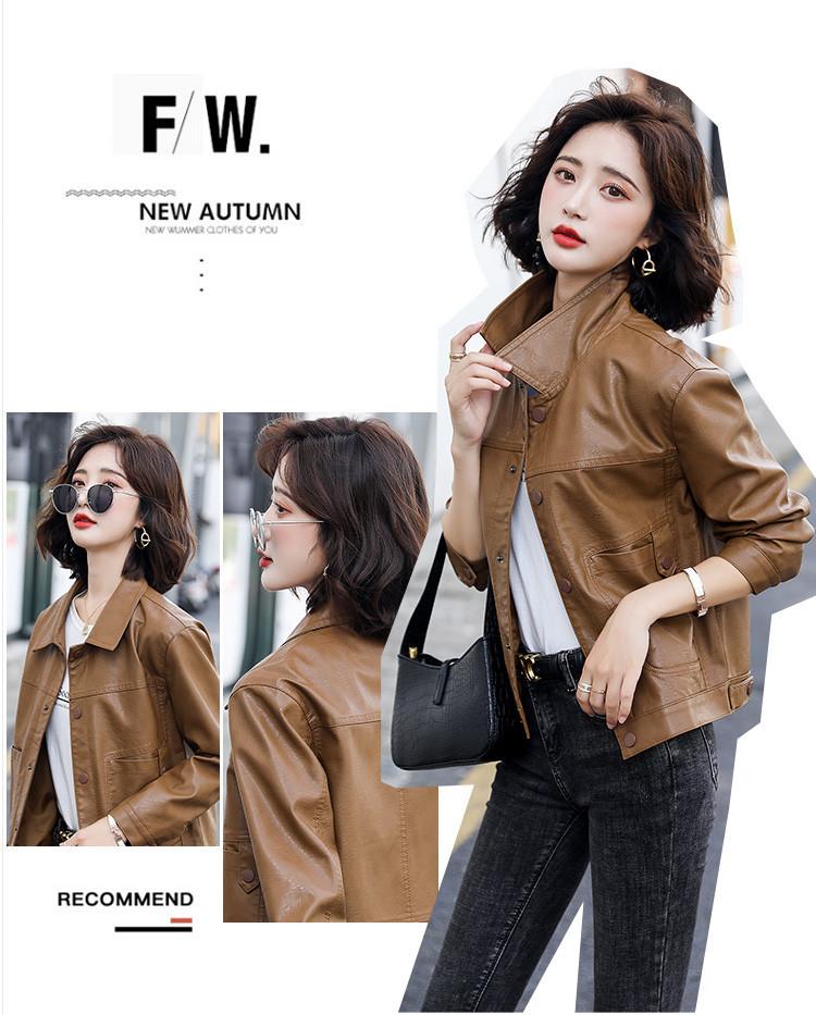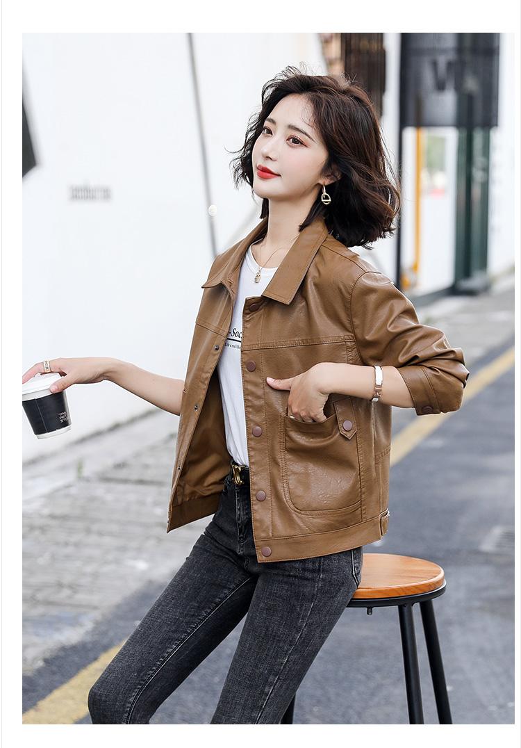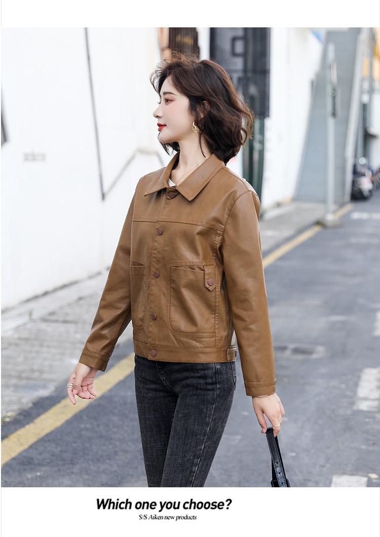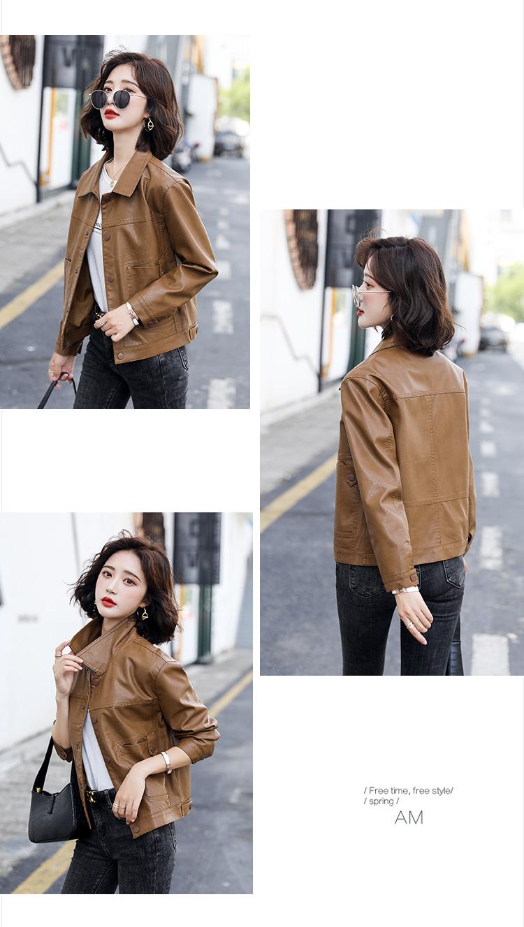 Abrigo de piel de oveja estilo coreano de moda primavera otoño e invierno para mujer, nuevo abrigo de cuero lavado adelgazante corto de cuero de motocicleta 2025