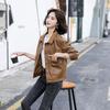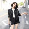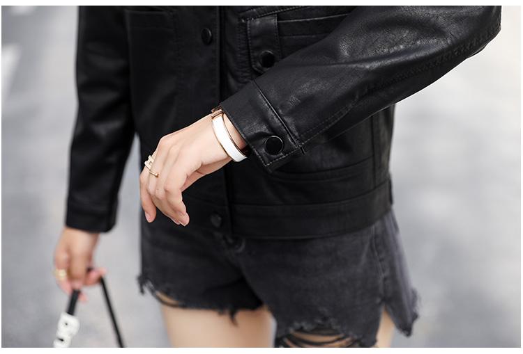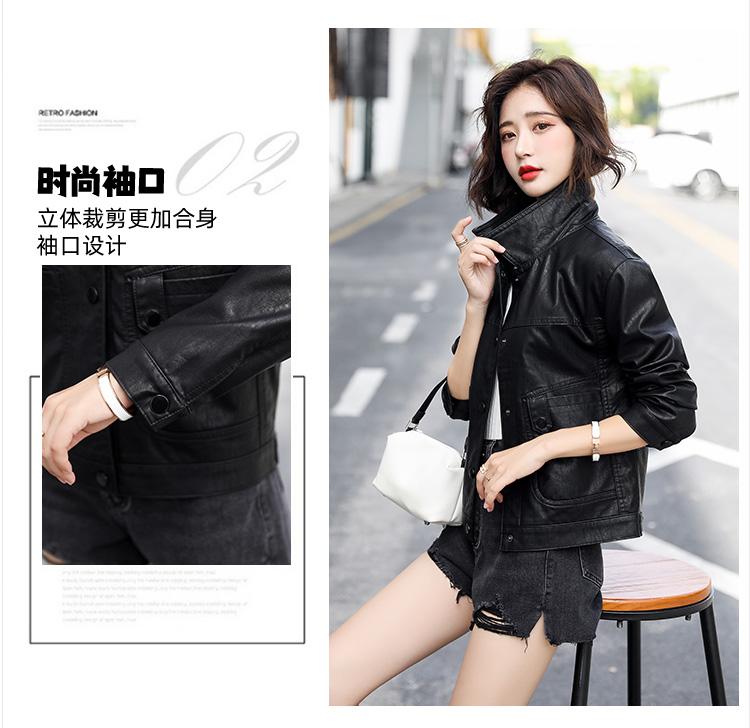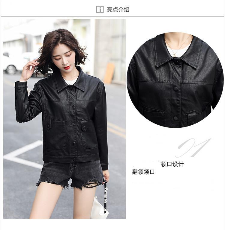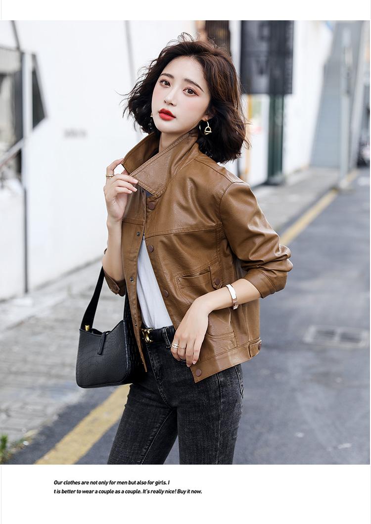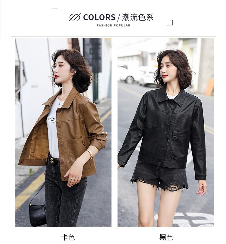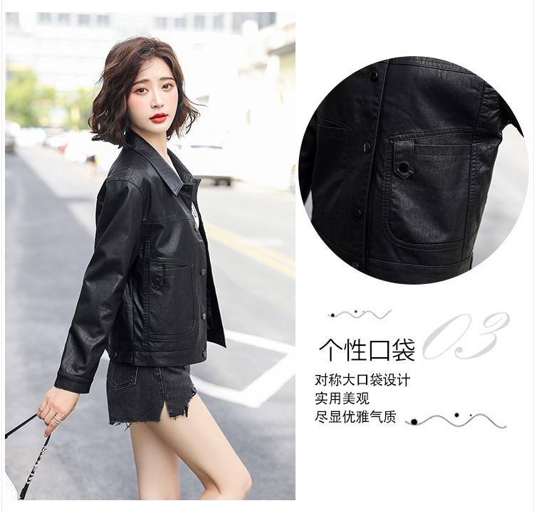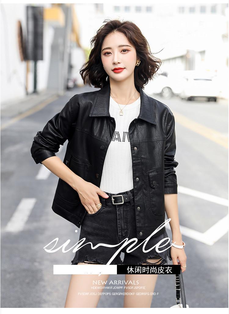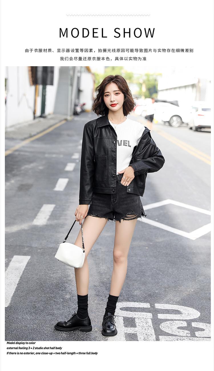 Abrigo de piel de oveja estilo coreano de moda primavera otoño e invierno para mujer, nuevo abrigo de cuero lavado adelgazante corto de cuero de motocicleta 2025