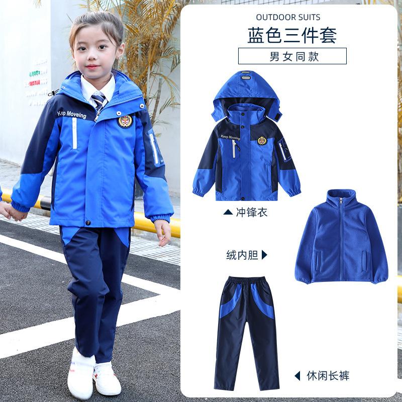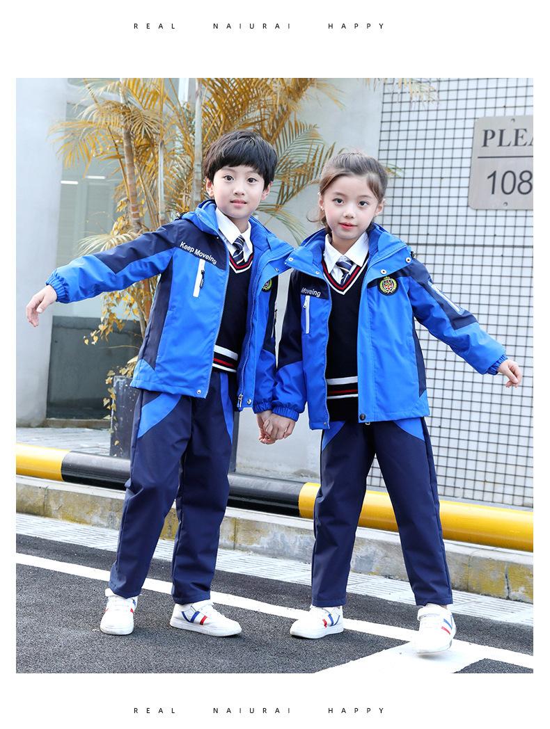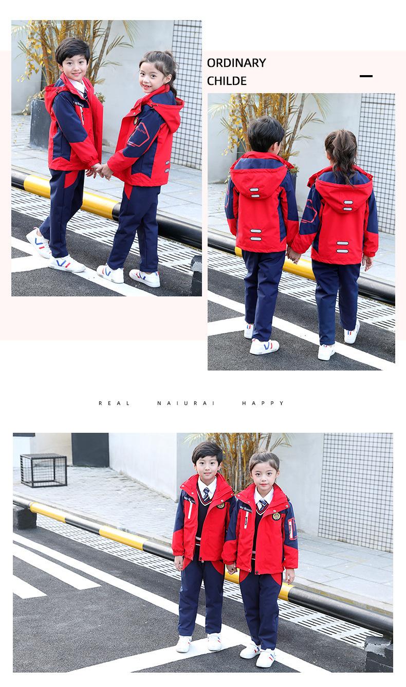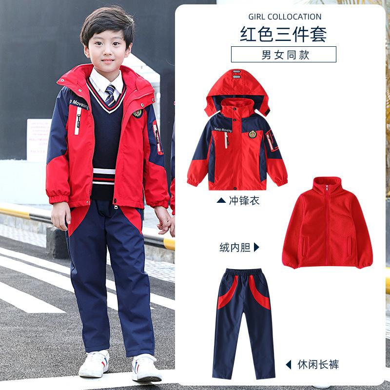 Uniforme escolar para estudiantes de primaria y secundaria 2020 Primavera y Otoño Nuevo traje de chaqueta para niños con forro polar grueso a prueba de frío para jardín de infantes